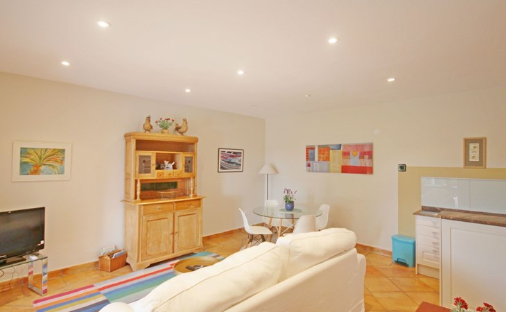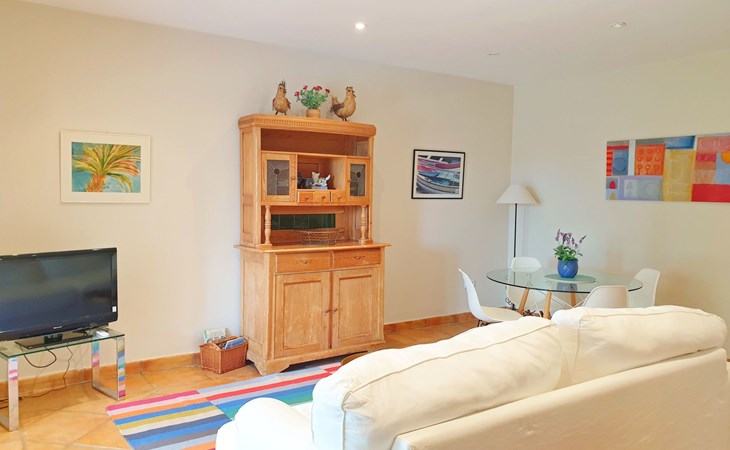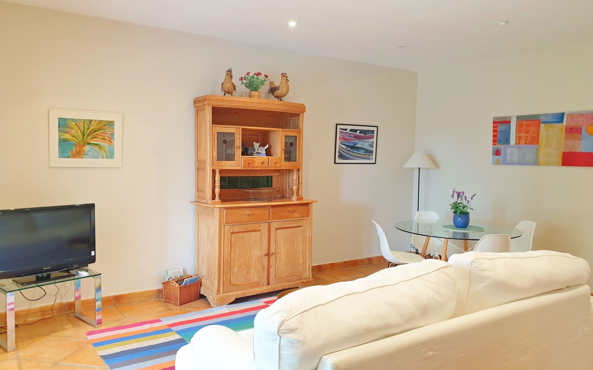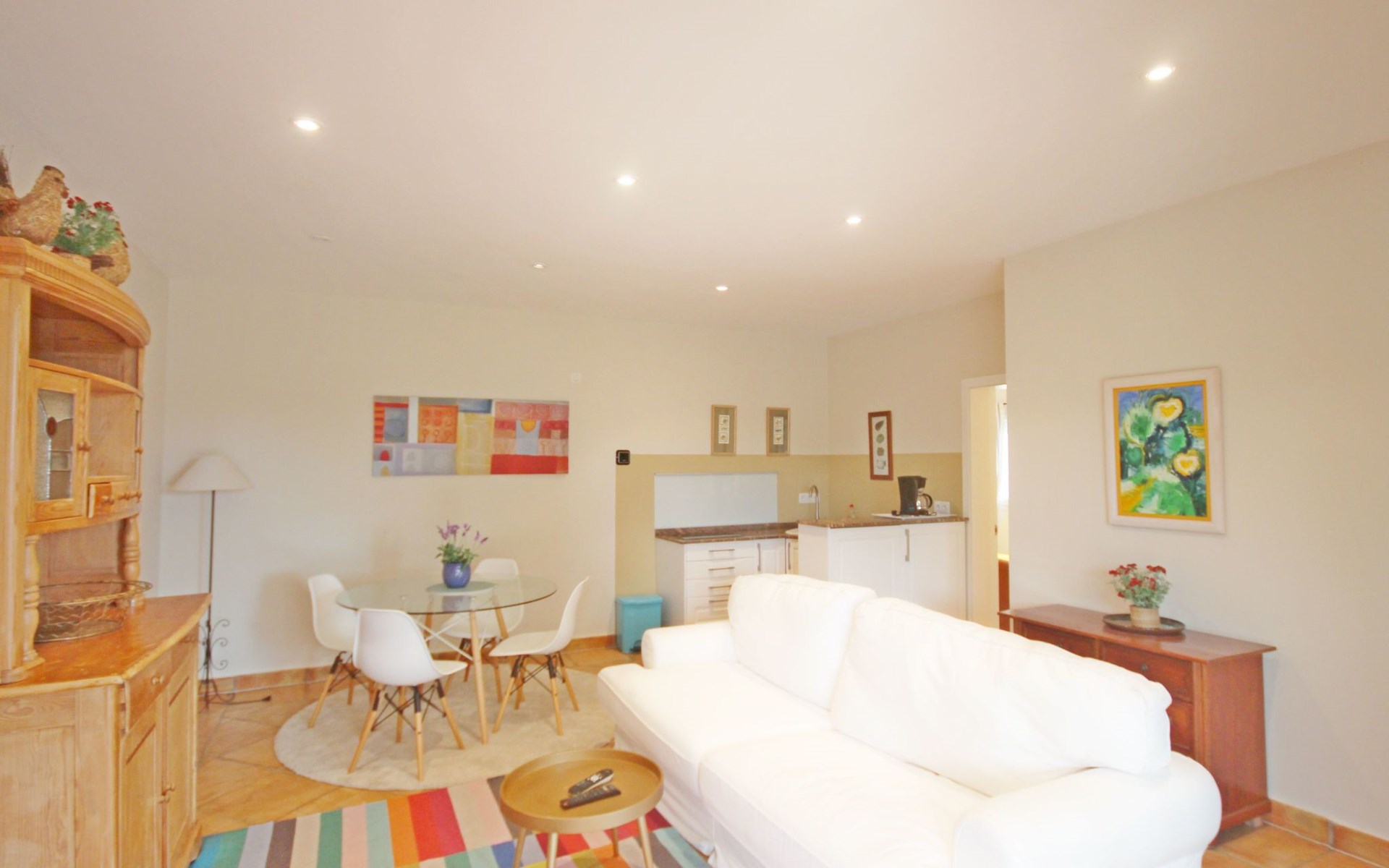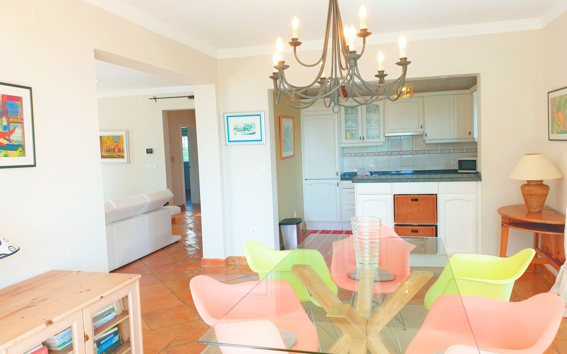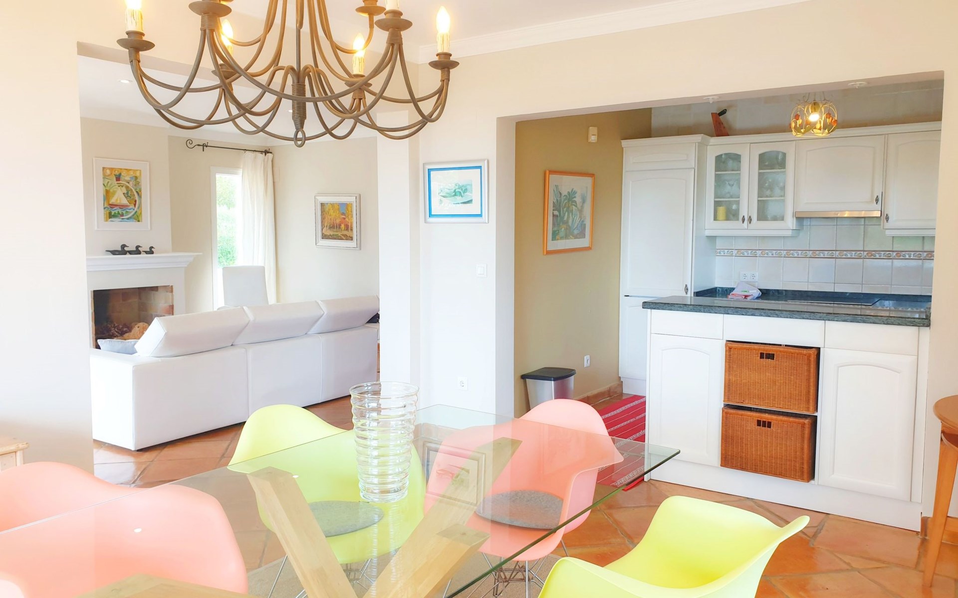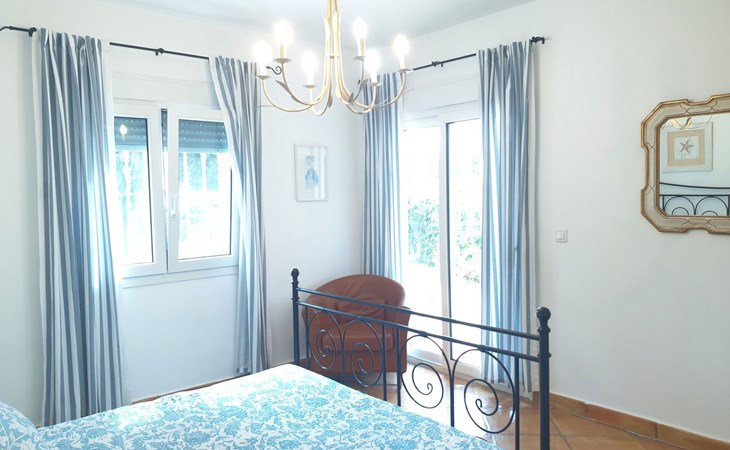 Im Inneren der Villa empfängt Sie ein großzügiger Eingangsbereich, der in ein einladendes Wohnzimmer mit einem offenen Kamin übergeht. Die moderne Küche mit Frühstückstheke und der Zugang zum Esszimmer, ausgestattet mit einer verglasten Wand in Südausrichtung, bietet einen atemberaubenden Blick über das Tal bis zum Meer. Beide Ebenen bieten komfortable Schlafmöglichkeiten, darunter ein Hauptschlafzimmer mit Klimaanlage, Ankleideraum und einem en-suite Badezimmer mit Doppelwaschbecken, sowie weitere Schlafzimmer und Badezimmer für Gäste oder Familie. Alle Schlafzimmer sind mit der Klimaanlage ausgestattet.
