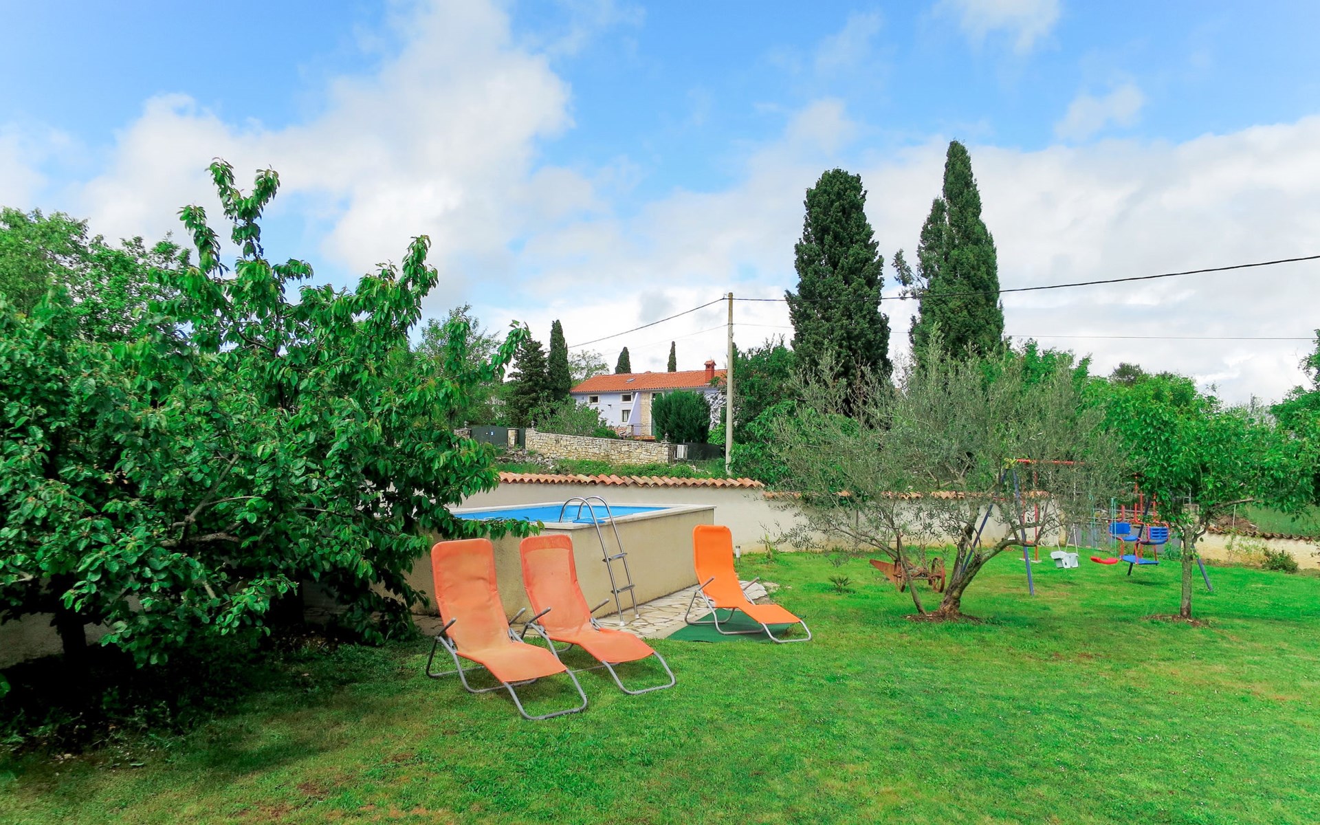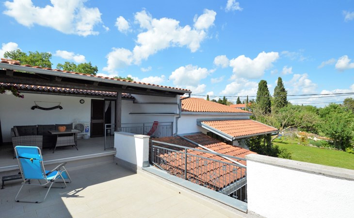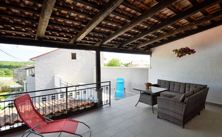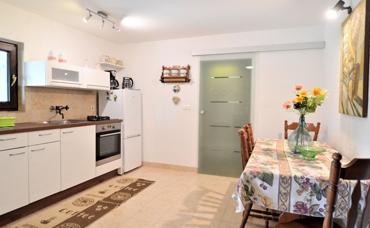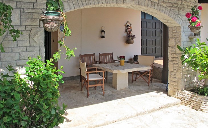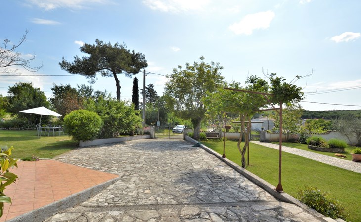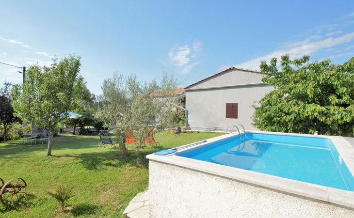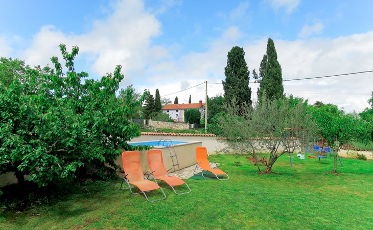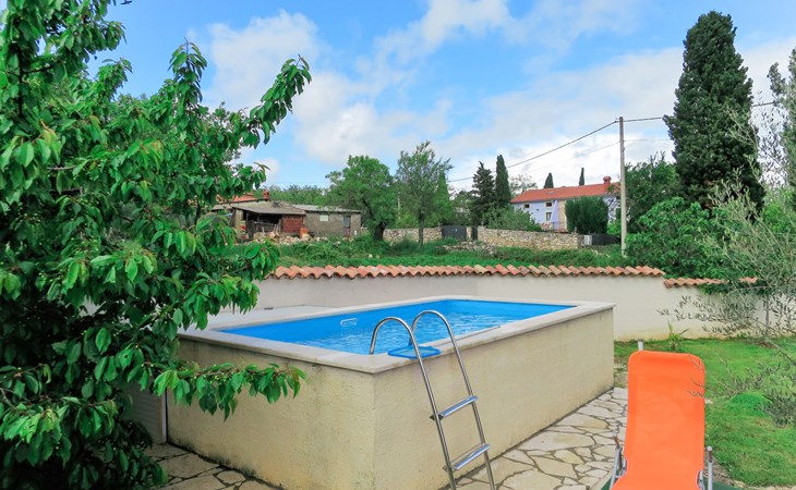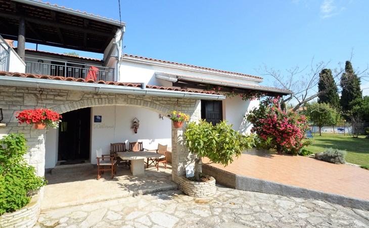 Doppelhaus "Latin", auf 2 Stockwerken. 50 m vom Zentrum von Manjadvorci, 8 km vom Zentrum von Marčana, 18 km vom Zentrum von Pula, 7 km vom Meer. Zur Alleinbenutzung: Grundstück 1'500 m2 (eingezäunt), Garten mit Rasen und Bäumen, Aufstellpool (4 x 2 m, 120 cm tief, saisonale Verfügbarkeit: 15.Mai. - 16.Sep.). Gartenmöbel, Grill (Schaukel). Im Hause: Internetzugang, Waschmaschine. Parkplatz auf dem Grundstück. Einkaufsgeschäft 50 m, Bushaltestelle 1.8 km, Felsstrand 7 km. Reitstall 500 m. Bitte beachten: Der Besitzer wohnt auf dem gleichen Grundstück.