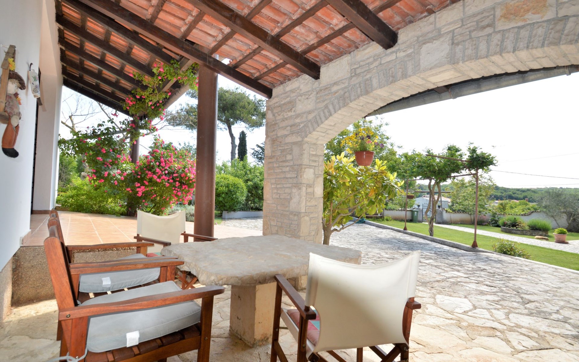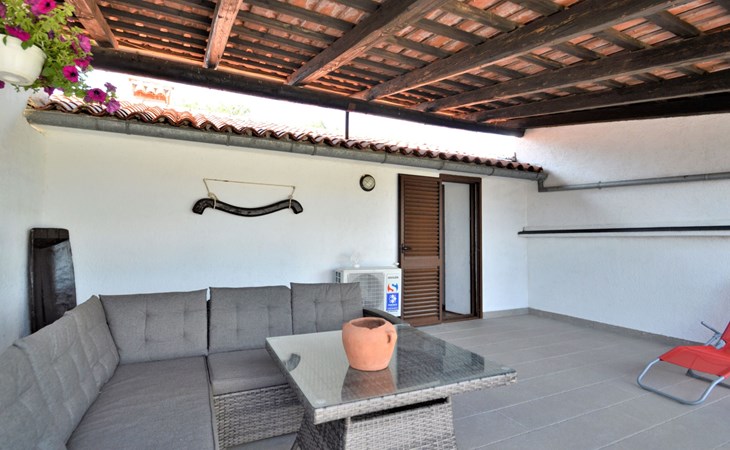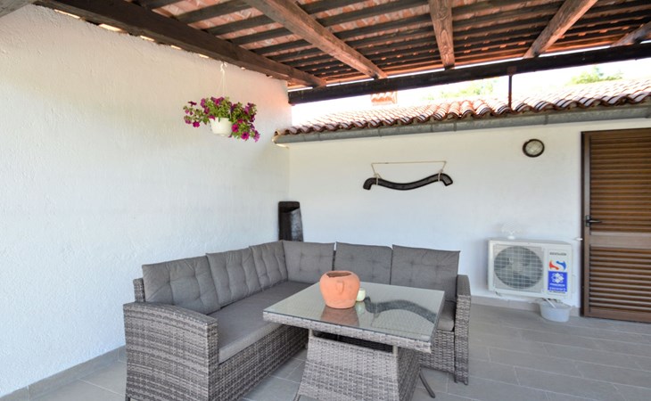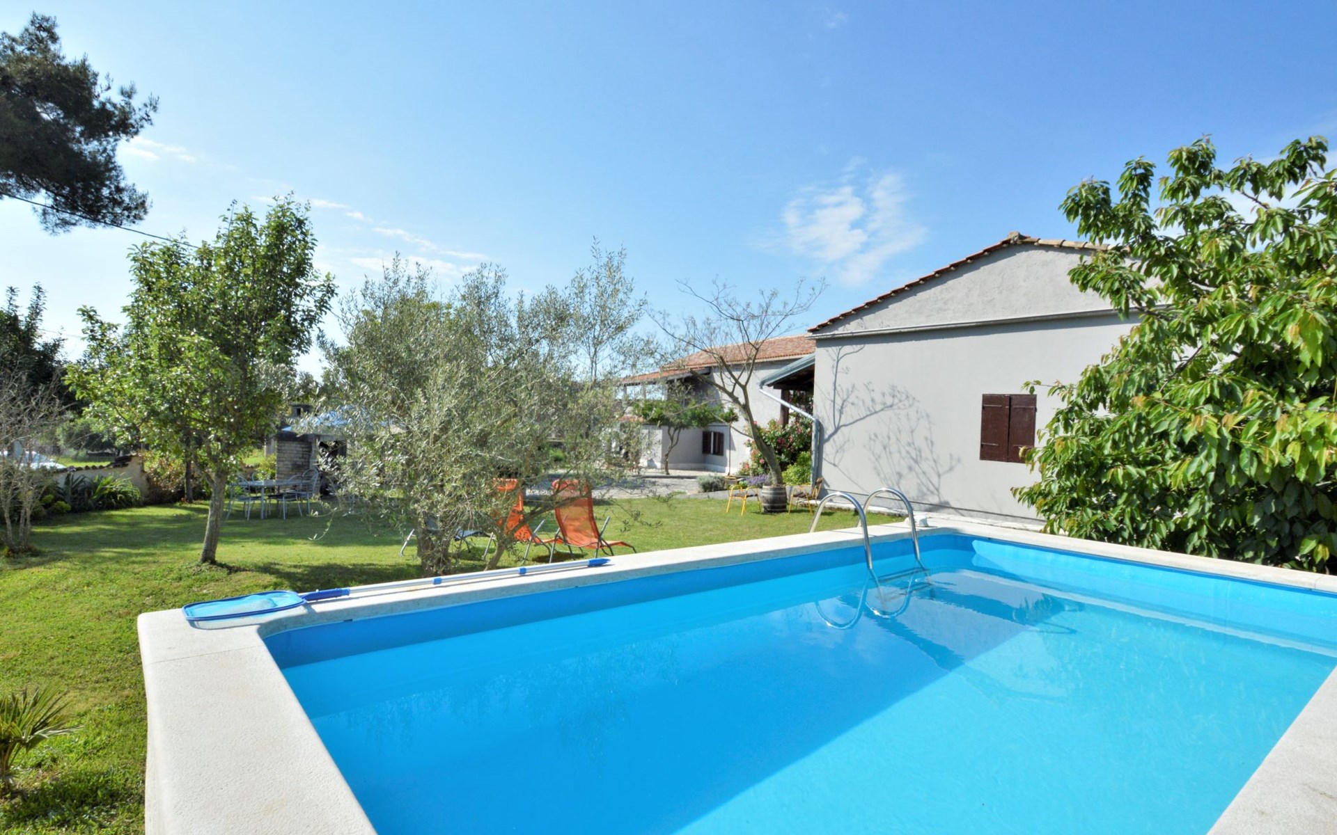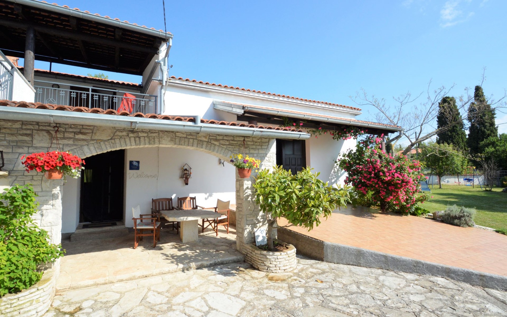 Doppelhaus "Latin", auf 2 Stockwerken. 50 m vom Zentrum von Manjadvorci, 8 km vom Zentrum von Marčana, 18 km vom Zentrum von Pula, 7 km vom Meer. Zur Alleinbenutzung: Grundstück 1'500 m2 (eingezäunt), Garten mit Rasen und Bäumen, Aufstellpool (4 x 2 m, 120 cm tief, saisonale Verfügbarkeit: 15.Mai. - 16.Sep.). Gartenmöbel, Grill (Schaukel). Im Hause: Internetzugang, Waschmaschine. Parkplatz auf dem Grundstück. Einkaufsgeschäft 50 m, Bushaltestelle 1.8 km, Felsstrand 7 km. Reitstall 500 m. Bitte beachten: Der Besitzer wohnt auf dem gleichen Grundstück.