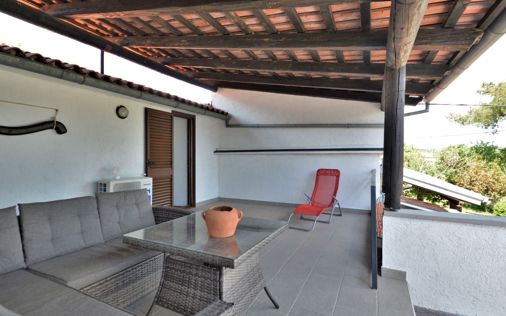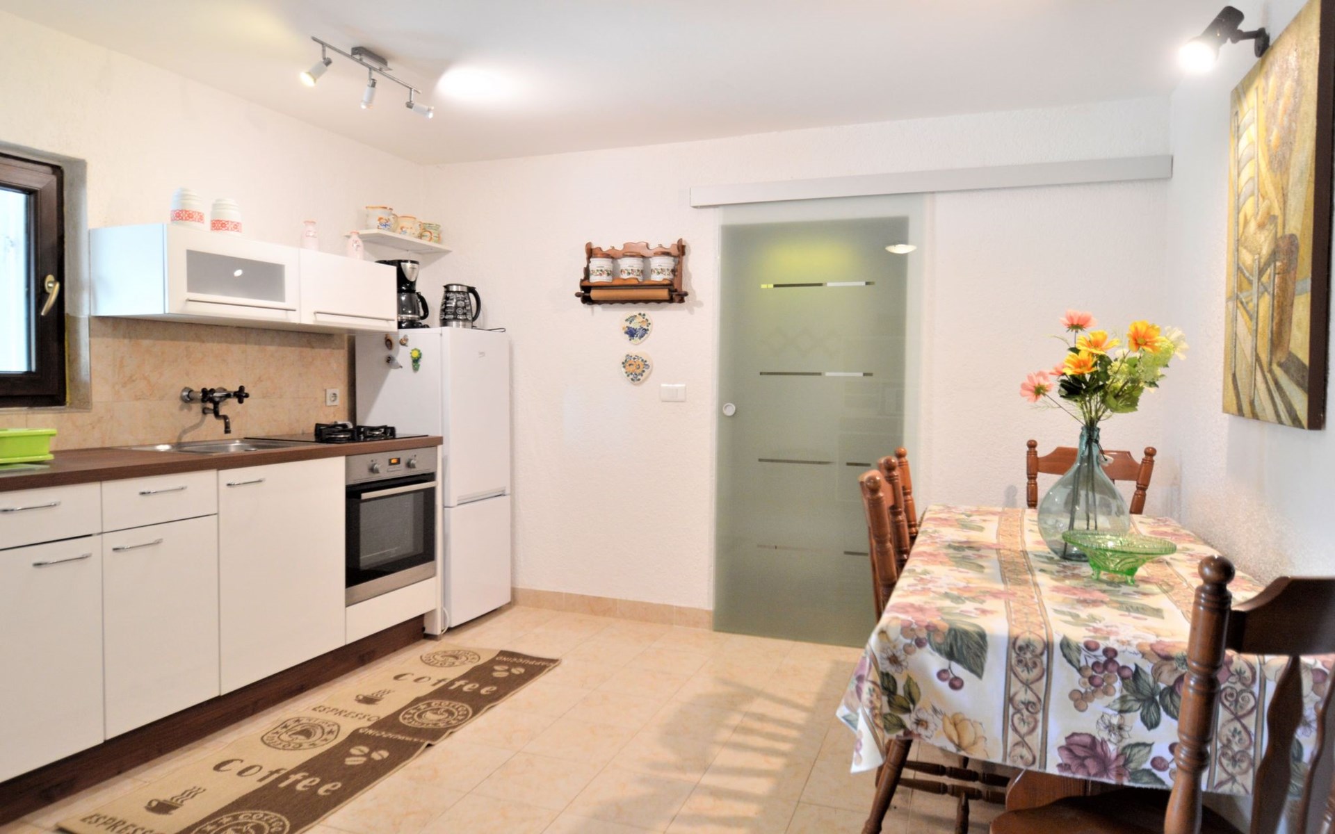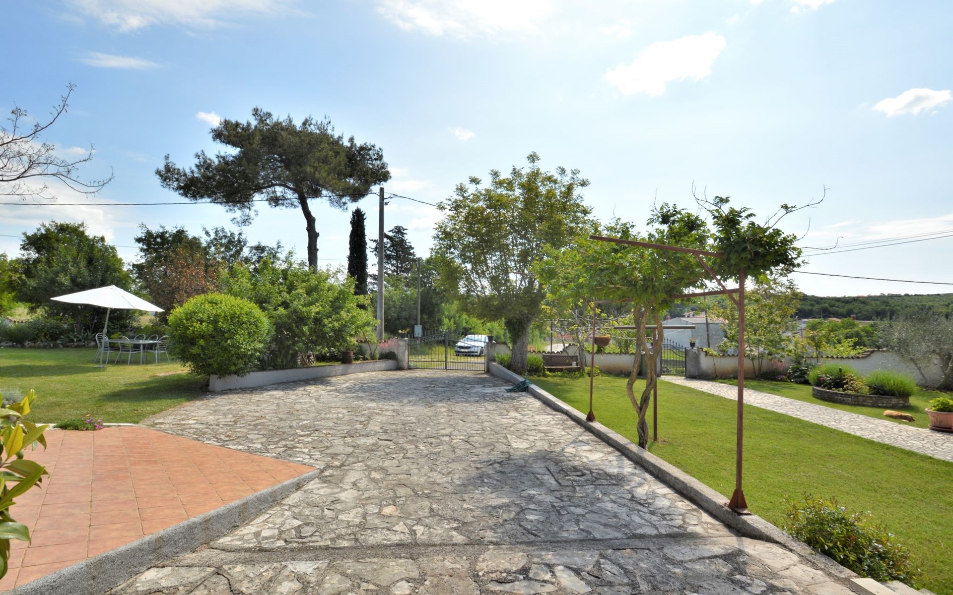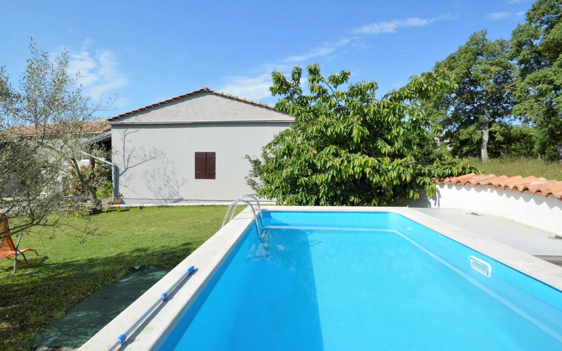 Doppelhaus "Latin", auf 2 Stockwerken. 50 m vom Zentrum von Manjadvorci, 8 km vom Zentrum von Marčana, 18 km vom Zentrum von Pula, 7 km vom Meer. Zur Alleinbenutzung: Grundstück 1'500 m2 (eingezäunt), Garten mit Rasen und Bäumen, Aufstellpool (4 x 2 m, 120 cm tief, saisonale Verfügbarkeit: 15.Mai. - 16.Sep.). Gartenmöbel, Grill (Schaukel). Im Hause: Internetzugang, Waschmaschine. Parkplatz auf dem Grundstück. Einkaufsgeschäft 50 m, Bushaltestelle 1.8 km, Felsstrand 7 km. Reitstall 500 m. Bitte beachten: Der Besitzer wohnt auf dem gleichen Grundstück.