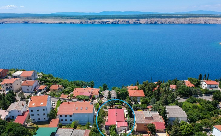 Dreifamilienhaus "Visnja". 2 km vom Zentrum von Jadranovo, 9 km vom Zentrum von Crikvenica, 200 m vom Meer, 200 m vom Strand. Zur Mitbenutzung: Grundstück 70 m2 (eingezäunt) mit Pflanzen und Bäumen. Grill. Im Hause: Internetzugang. Parkplatz auf dem Grundstück. Einkaufsgeschäft 500 m, Bushaltestelle 550 m, Kieselstrand 200 m. Bitte beachten: Flugplatz 14 km vom Haus.
