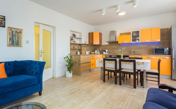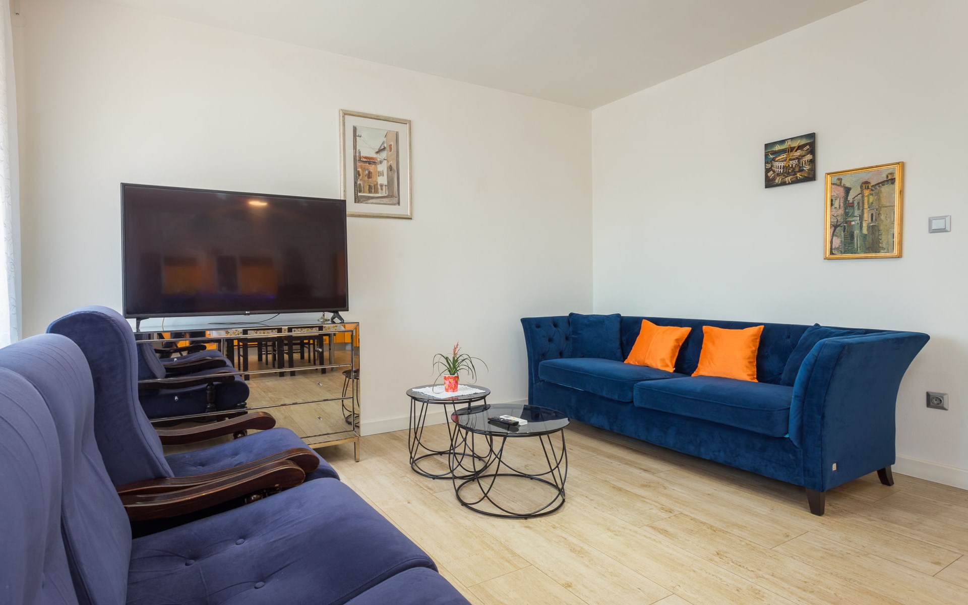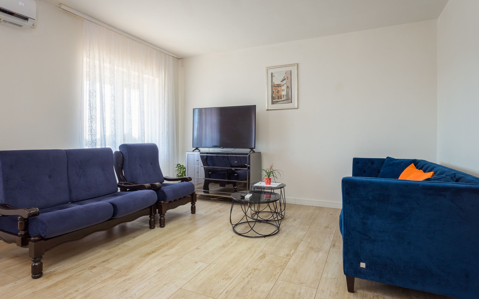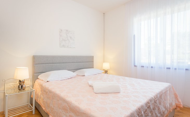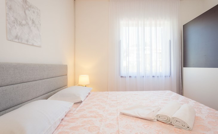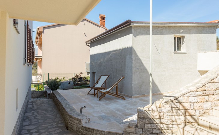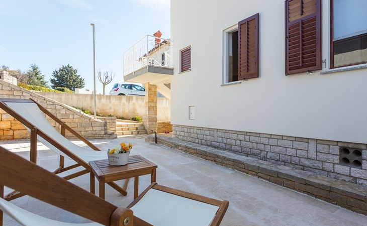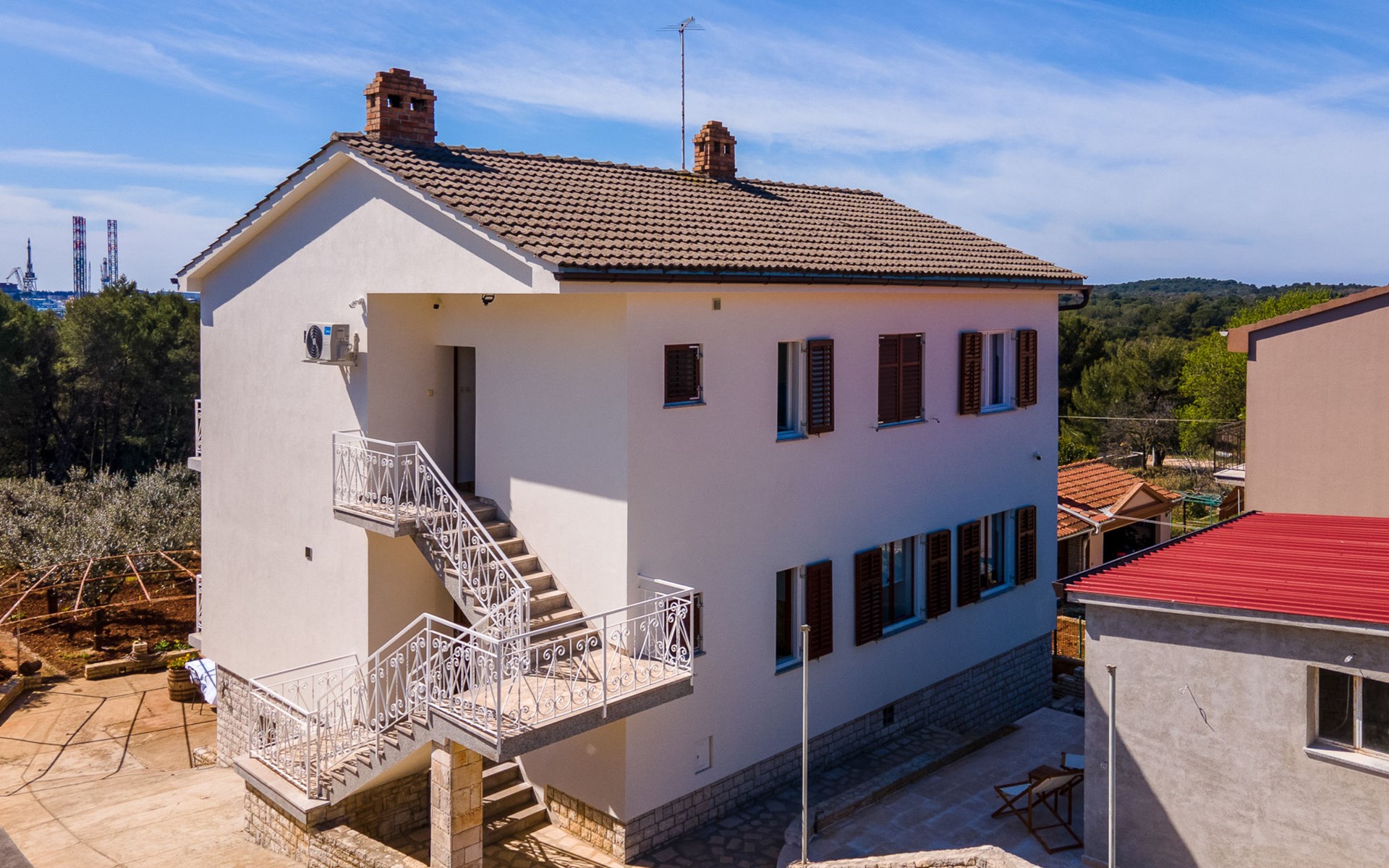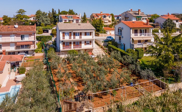 Dreifamilienhaus "Maris". 2 km vom Zentrum von Pula, 300 m vom Meer, 3 km vom Strand. Zur Mitbenutzung: Grundstück 1'000 m2 (eingezäunt) mit Pflanzen und Bäumen. Terrasse (30 m2), Gartenmöbel, Grill (Schaukel). Im Hause: Internetzugang, Einstellraum für Fahrräder. Öffentliche Parkplätze auf der Strasse. Einkaufsgeschäft 400 m, Supermarkt 2 km, Restaurant 400 m, Bushaltestelle 600 m. Kinderspielplatz 700 m. Bitte beachten: Flugplatz 5 km vom Haus.