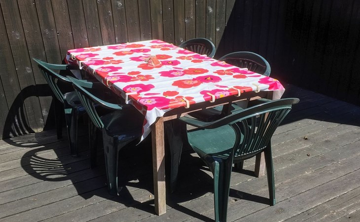Einfamilienhaus, Baujahr 1976. 400 m vom Meer. Zur Alleinbenutzung: naturbelassenes Grundstück 2'085 m2. Terrasse (12 m2), Kinderspielplatz (Schaukel). Im Hause: Waschmaschine. Parkplatz beim Haus. Carport. Lebensmittelgeschäft 800 m. Der Besitzer akzeptiert keine Jugendgruppen.