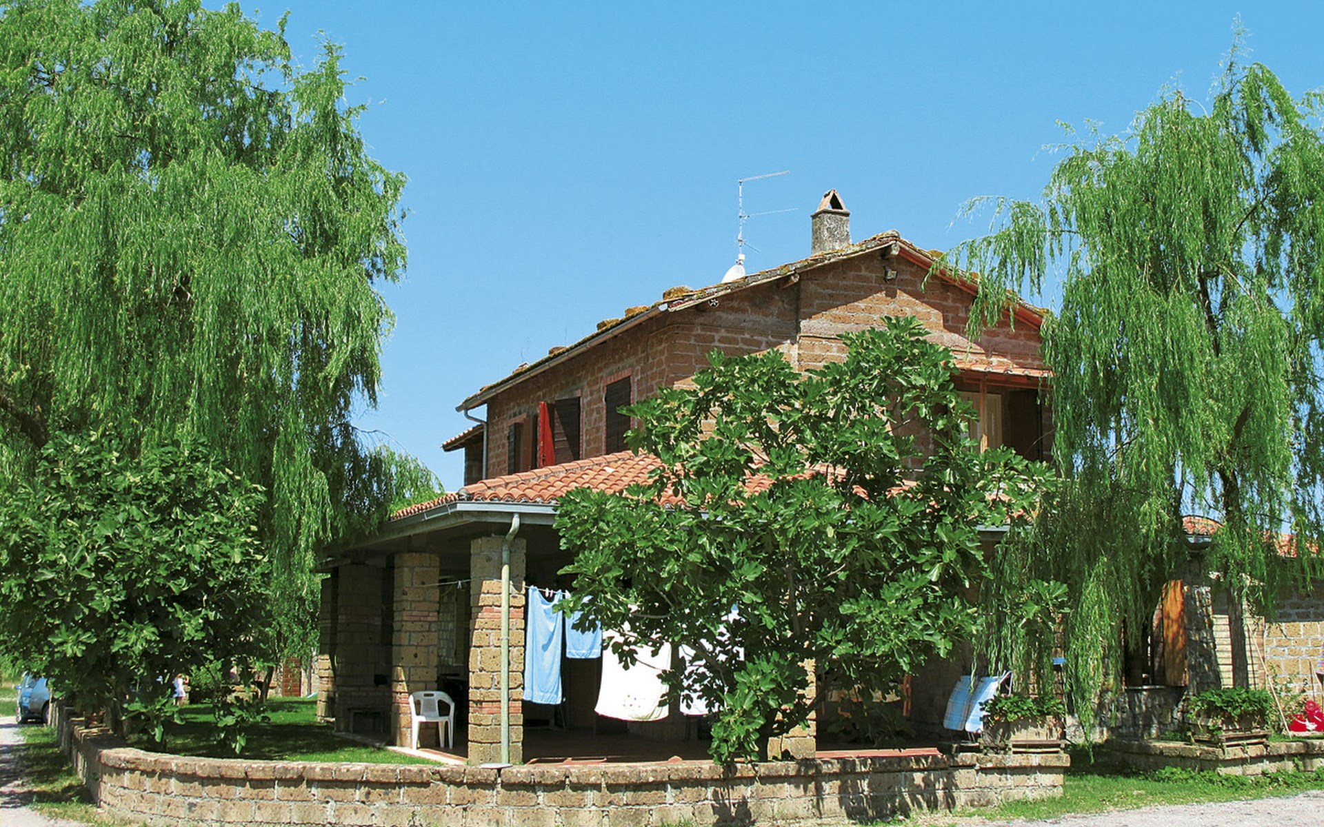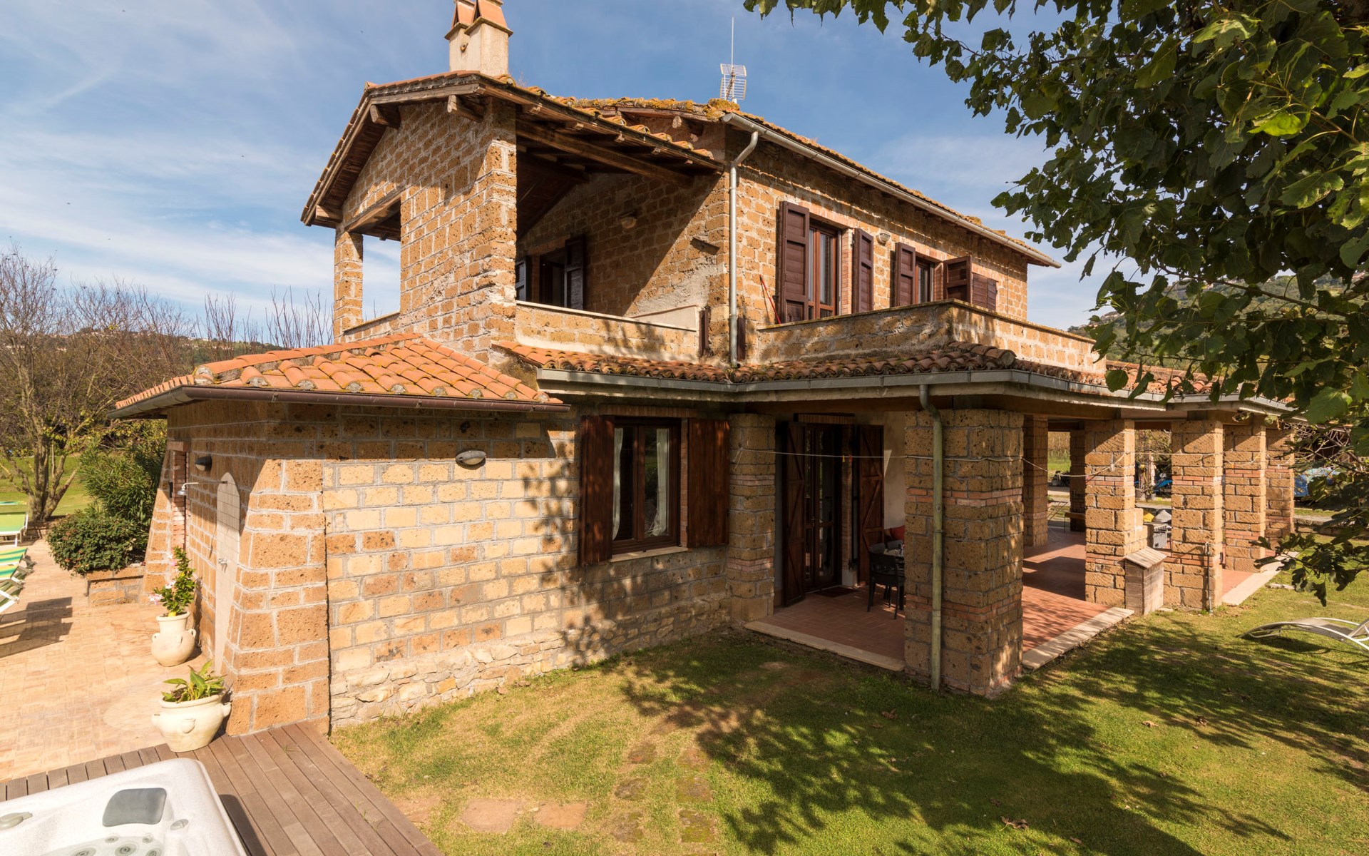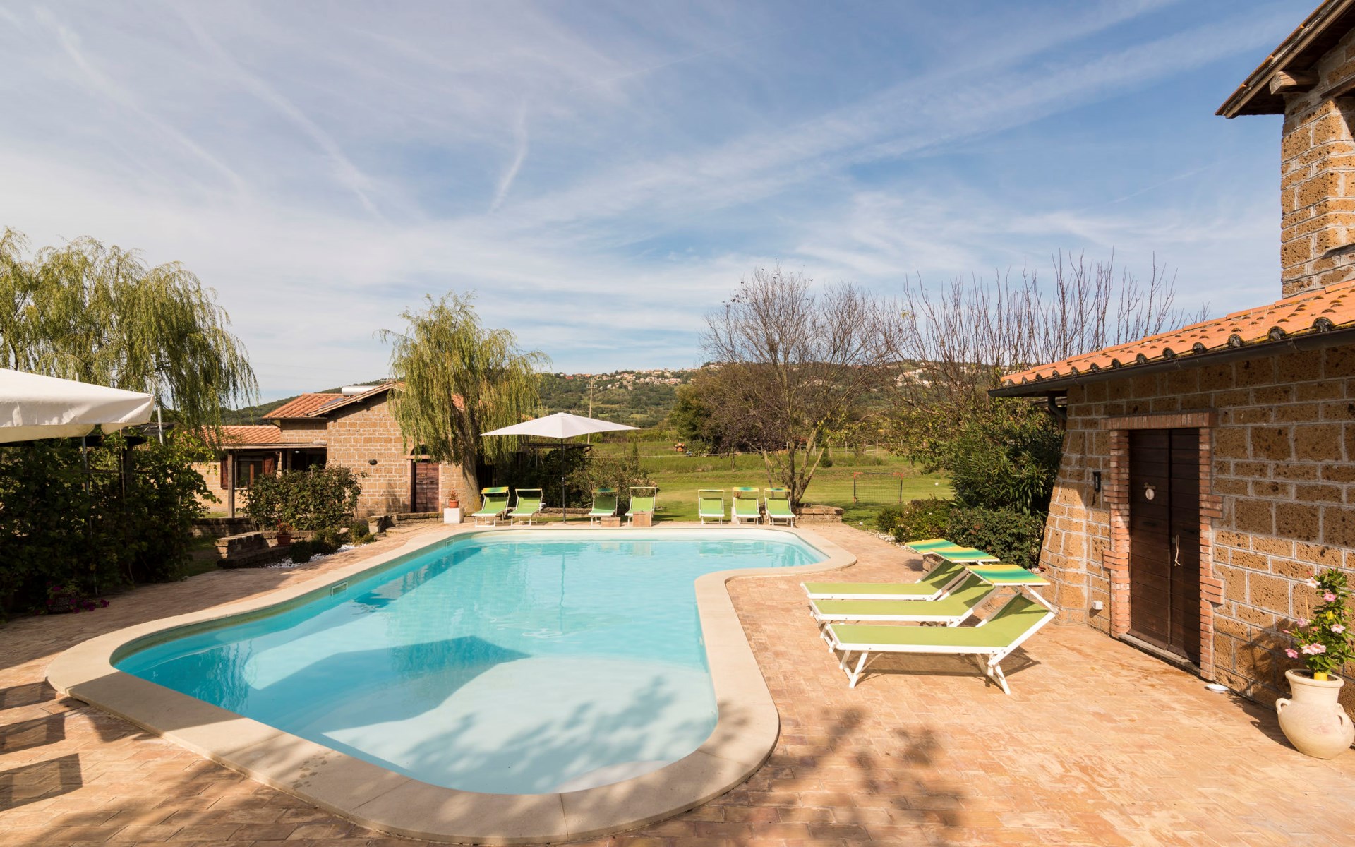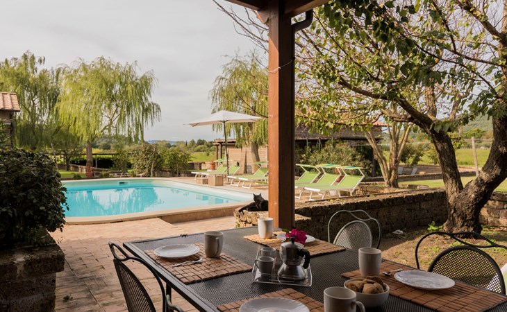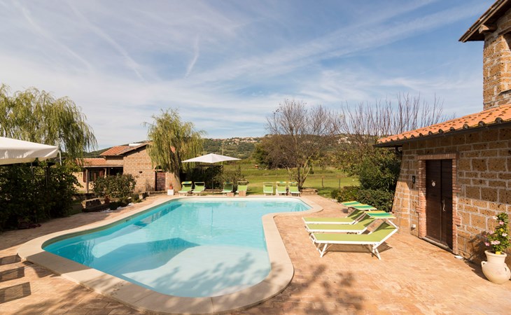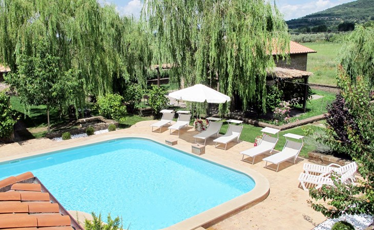 Schöner, gemütlicher Landsitz "Podere La Cavallara", umgeben von Feldern. 6 Wohnungen in der Residenz. 4 km vom Zentrum von Montefiascone, 17 km vom Zentrum von Viterbo, 85 km vom Zentrum von Roma, 1.5 km vom See. Zur Mitbenutzung: Grundstück 2'500 m2, gepflegter Garten mit Rasen und Bäumen, Schwimmbad (12 x 6 m, 140 - 150 cm tief, saisonale Verfügbarkeit: 16.Mai. - 03.Okt.) mit Salzelektrolyse-Reinigungssystem. Aussendusche, Gartenmöbel, Grill, Kinderspielplatz. In der Anlage: Wireless LAN, Sprudelbad (extra). Waschmaschine (zur Mitbenutzung), Fahrräder vorhanden. Zufahrt (200 m Naturweg). Parkplatz (überdacht) auf dem Grundstück. Einkaufsgeschäft 1.5 km, Supermarkt 4 km, Bushaltestelle 2.8 km, Bahnstation "Montefiascone" 7 km, Sandstrand "Lido Di Tarquinia" 50 km, Grasstrand "Lago Di Bolsena" 1.5 km, Thermalbad "Terme Dei Papi" 26 km, Badesee "Lago di Bolsena" 1.5 km. Nahe gelegene Sehenswürdigkeiten: Bolsena 18 km, Civita Di Bagno Regio 18 km, Viterbo 19 km, Grottte Di Castro 25 km, Orvieto 30 km, Pitigliano 40 km. Bitte beachten: Fahrzeug empfohlen.