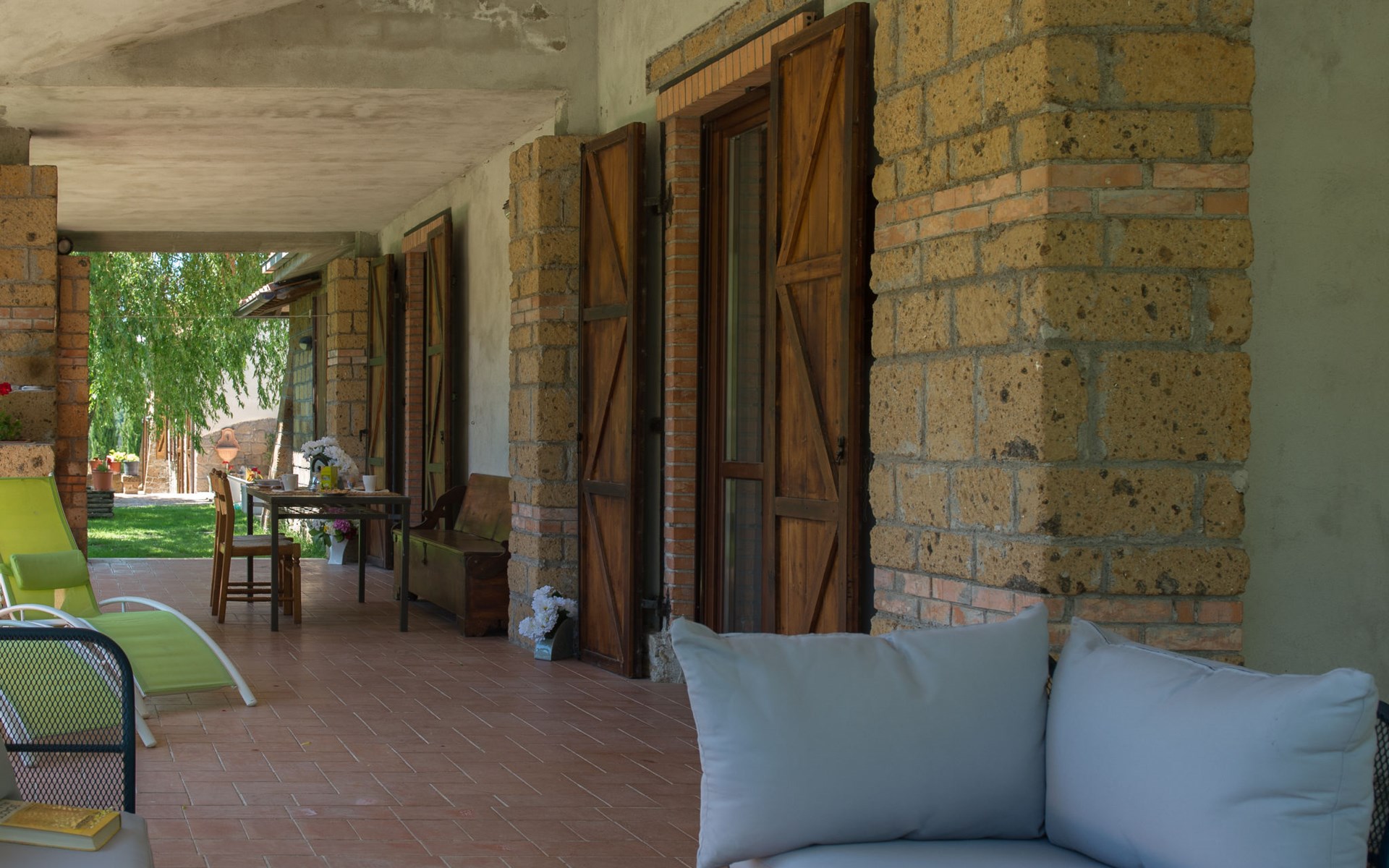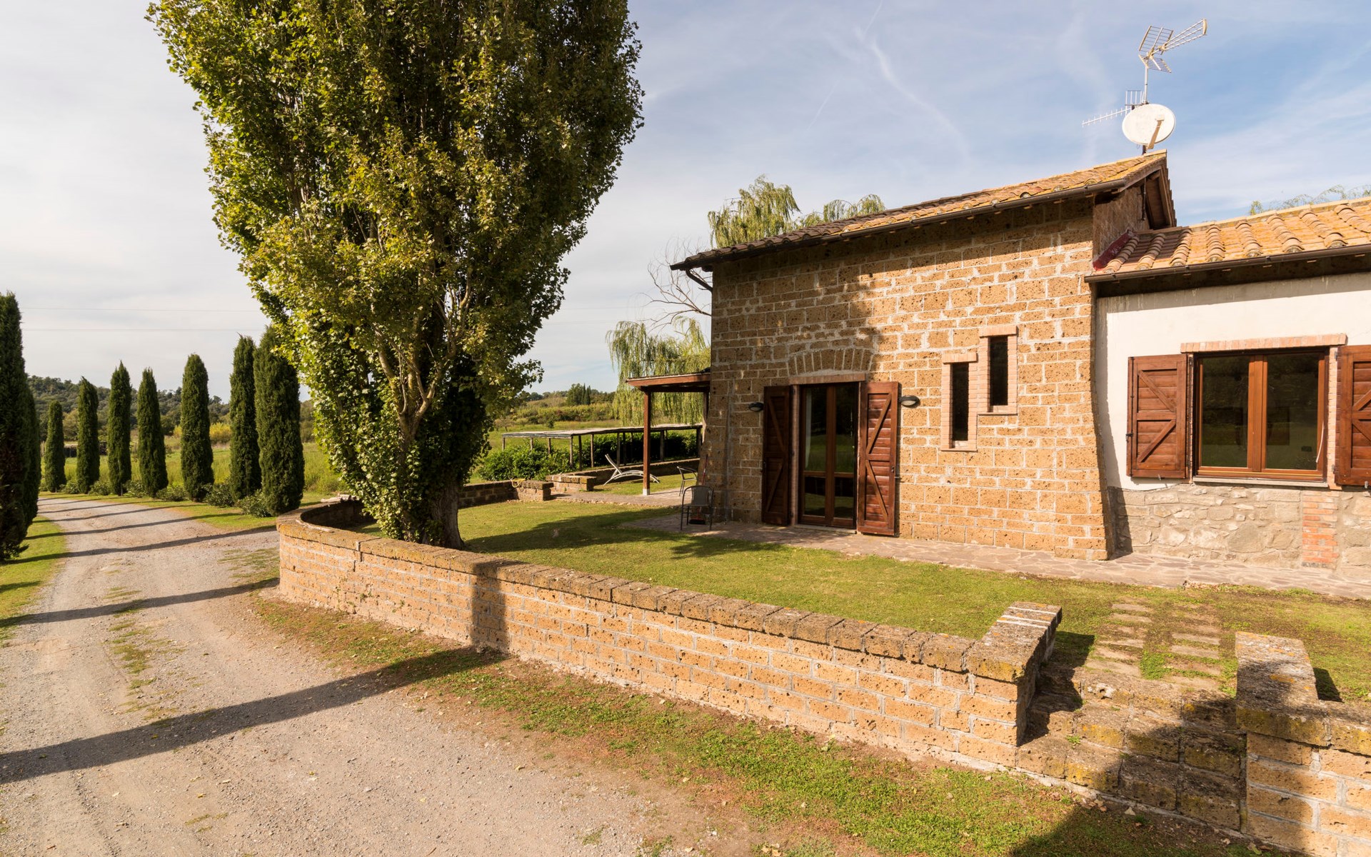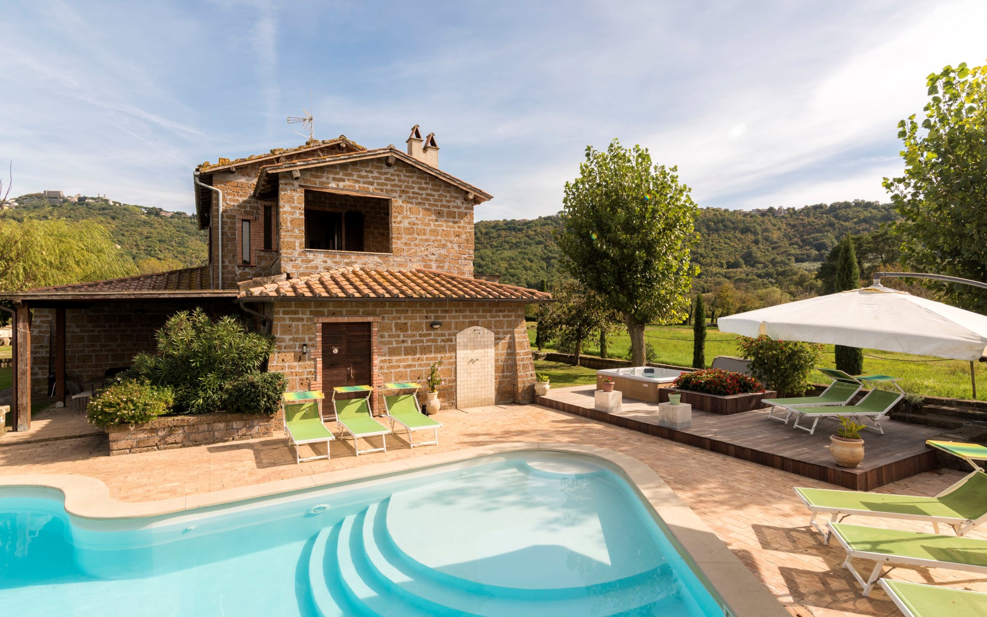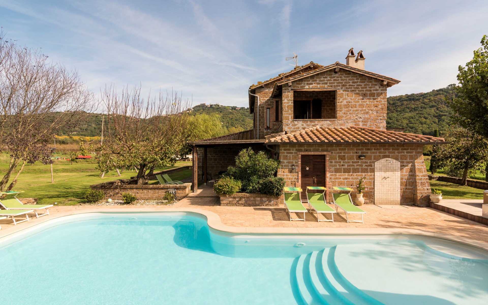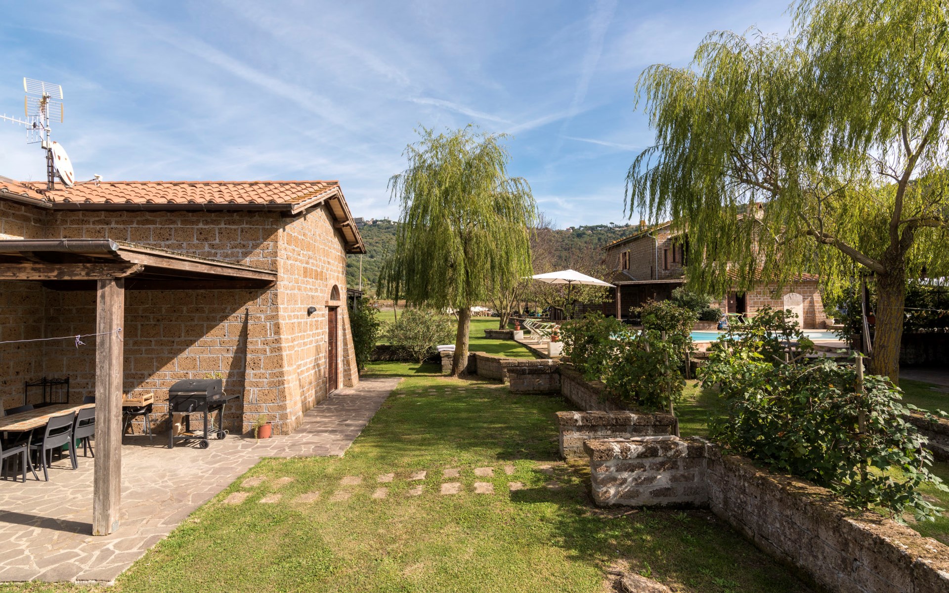 Schöner, gemütlicher Landsitz "Podere La Cavallara", umgeben von Feldern. 6 Wohnungen in der Residenz. 4 km vom Zentrum von Montefiascone, 17 km vom Zentrum von Viterbo, 85 km vom Zentrum von Roma, 1.5 km vom See. Zur Mitbenutzung: Grundstück 2'500 m2, gepflegter Garten mit Rasen und Bäumen, Schwimmbad (12 x 6 m, 140 - 150 cm tief, saisonale Verfügbarkeit: 16.Mai. - 03.Okt.) mit Salzelektrolyse-Reinigungssystem. Aussendusche, Gartenmöbel, Grill, Kinderspielplatz. In der Anlage: Wireless LAN, Sprudelbad (extra). Waschmaschine (zur Mitbenutzung), Fahrräder vorhanden. Zufahrt (200 m Naturweg). Parkplatz (überdacht) auf dem Grundstück. Einkaufsgeschäft 1.5 km, Supermarkt 4 km, Bushaltestelle 2.8 km, Bahnstation "Montefiascone" 7 km, Sandstrand "Lido Di Tarquinia" 50 km, Grasstrand "Lago Di Bolsena" 1.5 km, Thermalbad "Terme Dei Papi" 26 km, Badesee "Lago di Bolsena" 1.5 km. Nahe gelegene Sehenswürdigkeiten: Bolsena 18 km, Civita Di Bagno Regio 18 km, Viterbo 19 km, Grottte Di Castro 25 km, Orvieto 30 km, Pitigliano 40 km. Bitte beachten: Fahrzeug empfohlen.