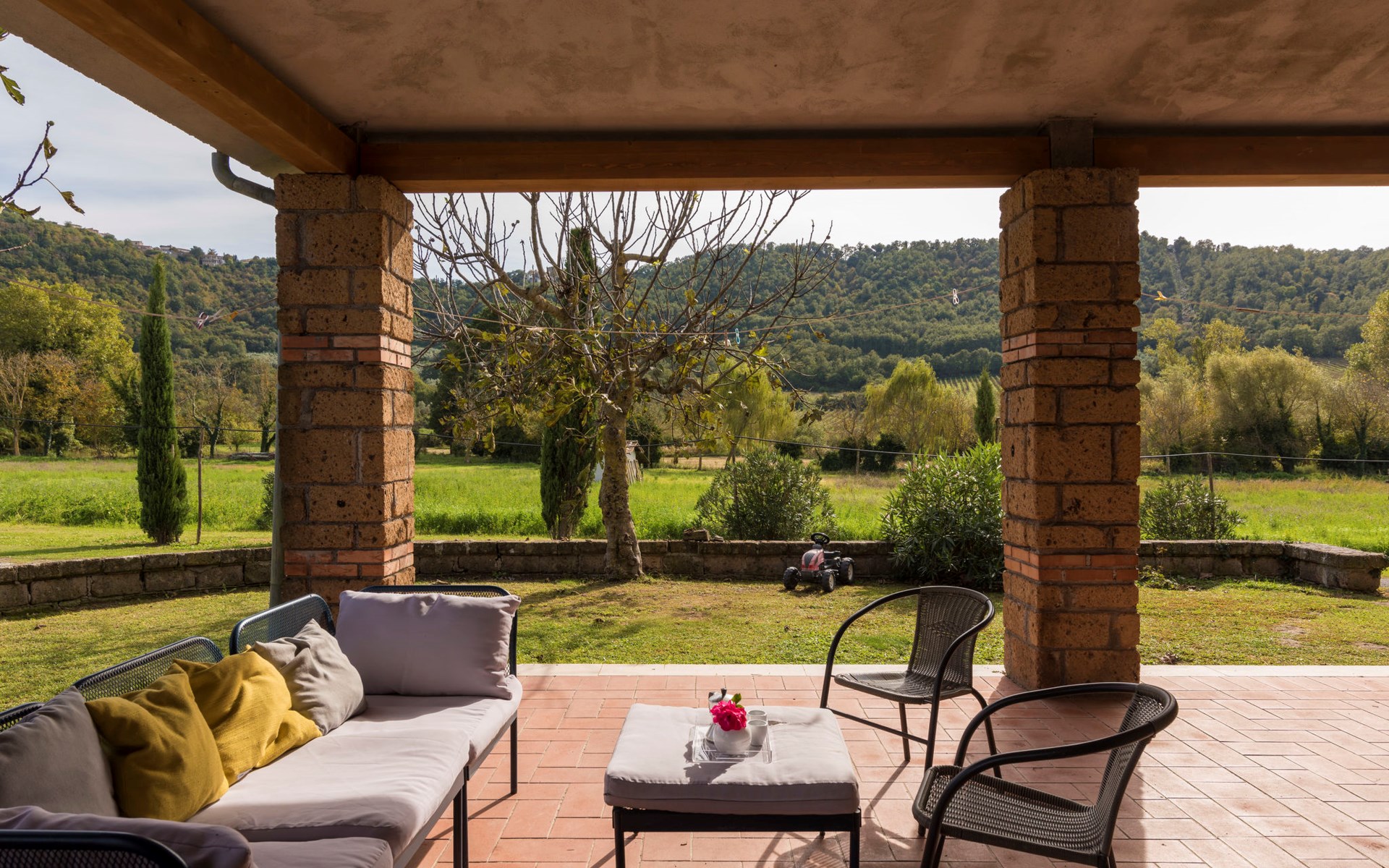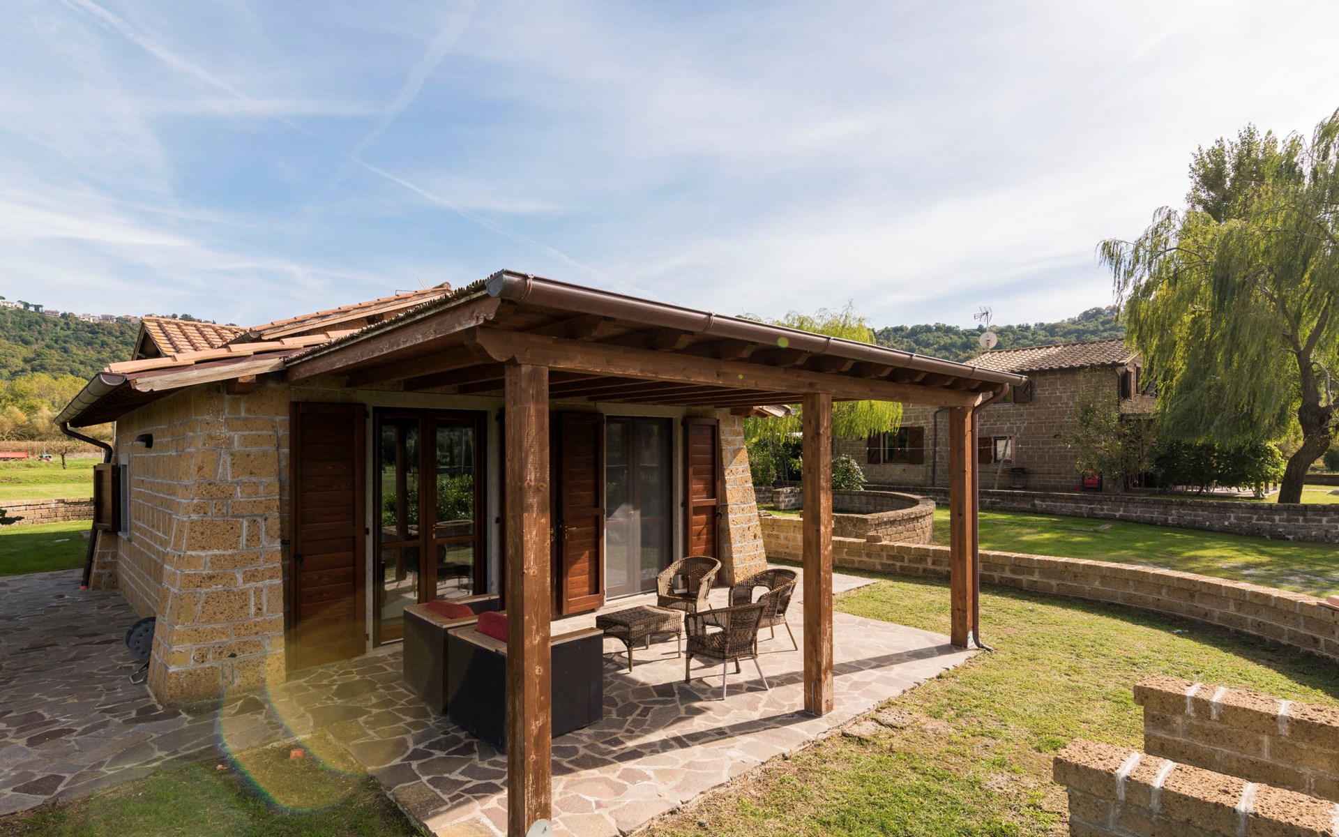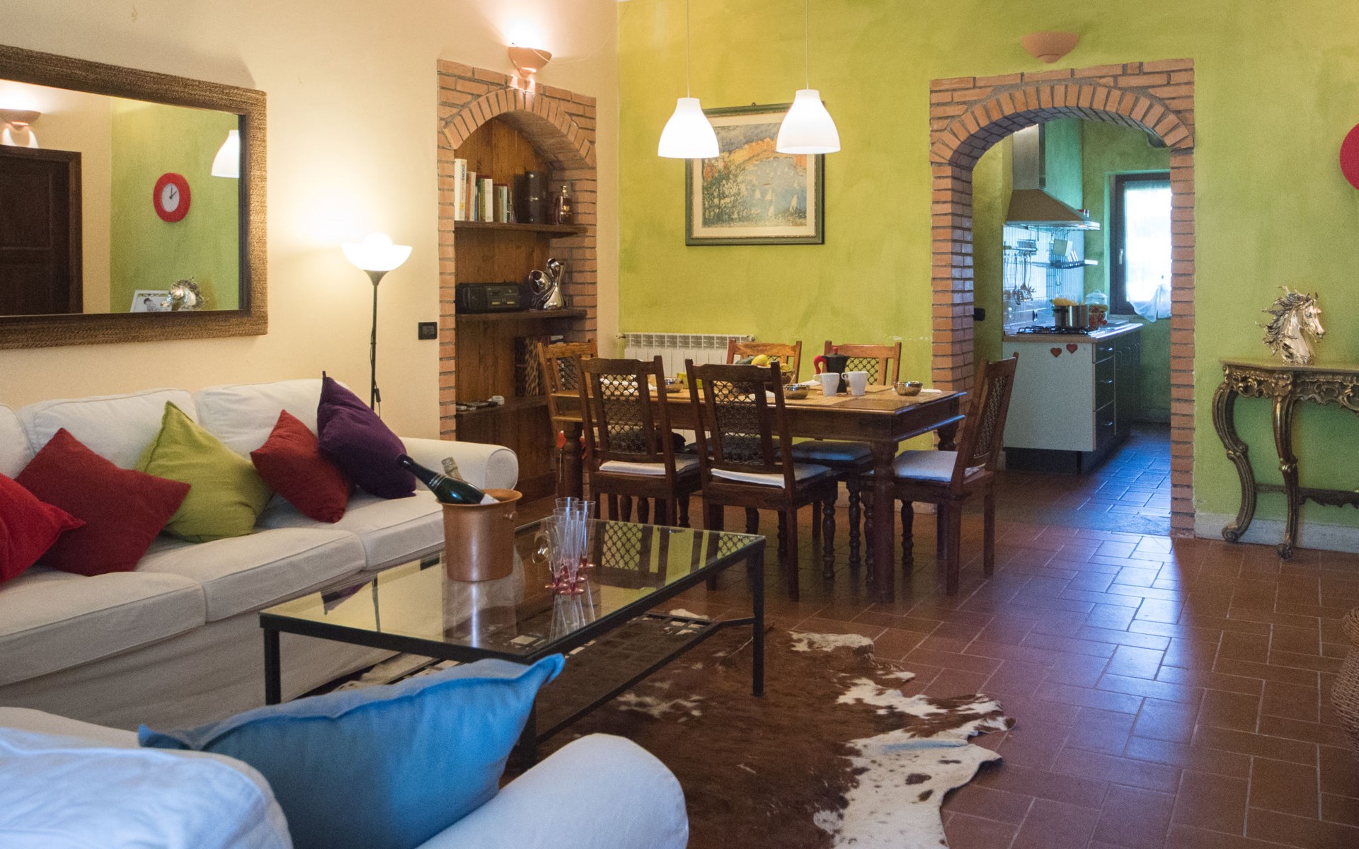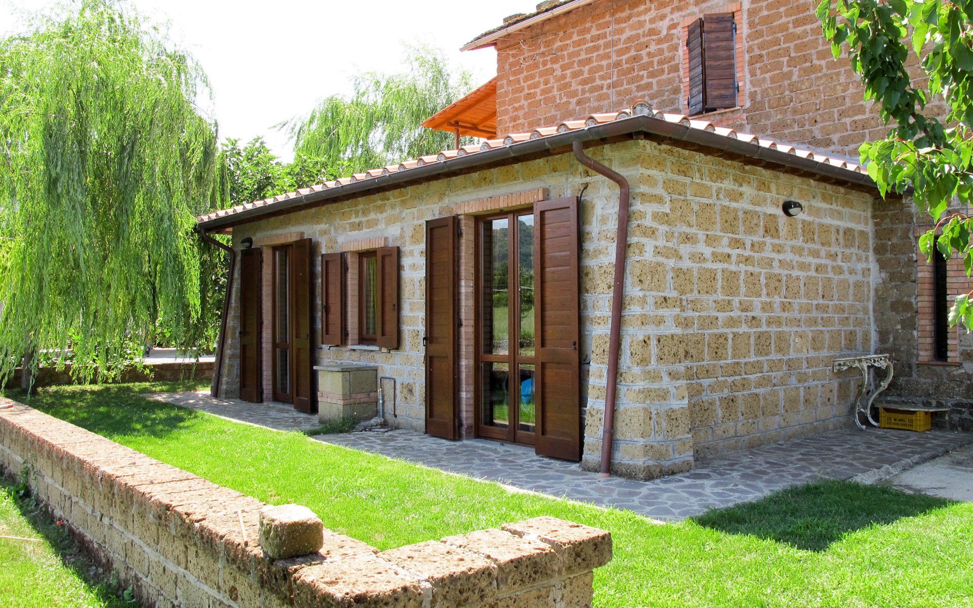 Schöner, gemütlicher Landsitz "Podere La Cavallara", umgeben von Feldern. 6 Wohnungen in der Residenz. 4 km vom Zentrum von Montefiascone, 17 km vom Zentrum von Viterbo, 85 km vom Zentrum von Roma, 1.5 km vom See. Zur Mitbenutzung: Grundstück 2'500 m2, gepflegter Garten mit Rasen und Bäumen, Schwimmbad (12 x 6 m, 140 - 150 cm tief, saisonale Verfügbarkeit: 16.Mai. - 03.Okt.) mit Salzelektrolyse-Reinigungssystem. Aussendusche, Gartenmöbel, Grill, Kinderspielplatz. In der Anlage: Wireless LAN, Sprudelbad (extra). Waschmaschine (zur Mitbenutzung), Fahrräder vorhanden. Zufahrt (200 m Naturweg). Parkplatz (überdacht) auf dem Grundstück. Einkaufsgeschäft 1.5 km, Supermarkt 4 km, Bushaltestelle 2.8 km, Bahnstation "Montefiascone" 7 km, Sandstrand "Lido Di Tarquinia" 50 km, Grasstrand "Lago Di Bolsena" 1.5 km, Thermalbad "Terme Dei Papi" 26 km, Badesee "Lago di Bolsena" 1.5 km. Nahe gelegene Sehenswürdigkeiten: Bolsena 18 km, Civita Di Bagno Regio 18 km, Viterbo 19 km, Grottte Di Castro 25 km, Orvieto 30 km, Pitigliano 40 km. Bitte beachten: Fahrzeug empfohlen.
