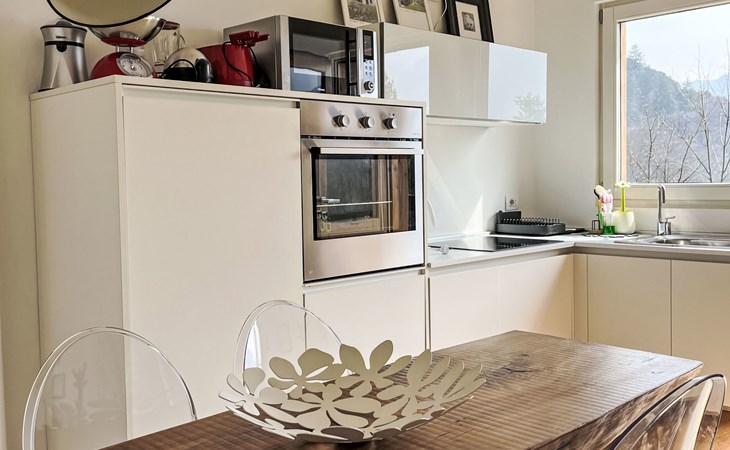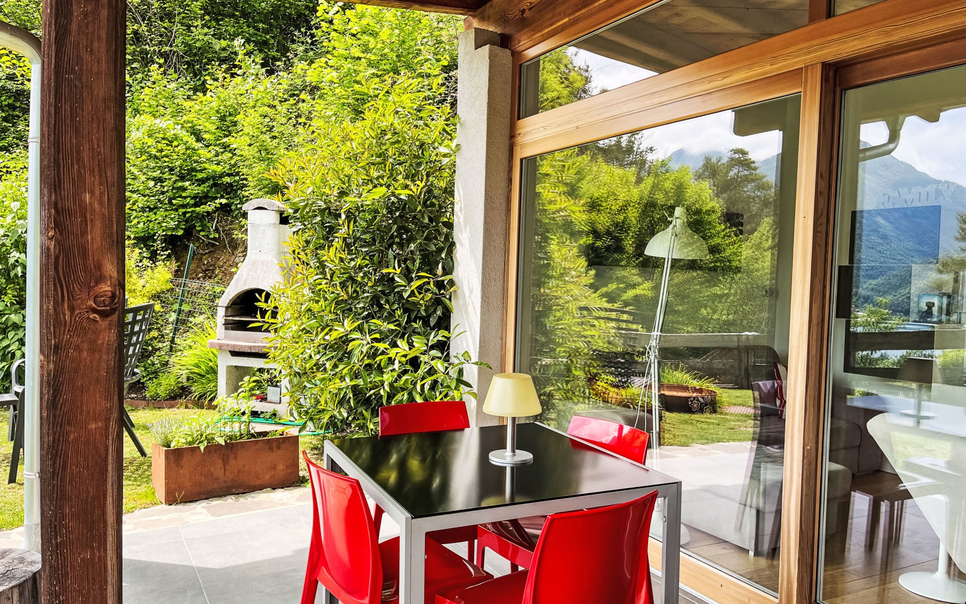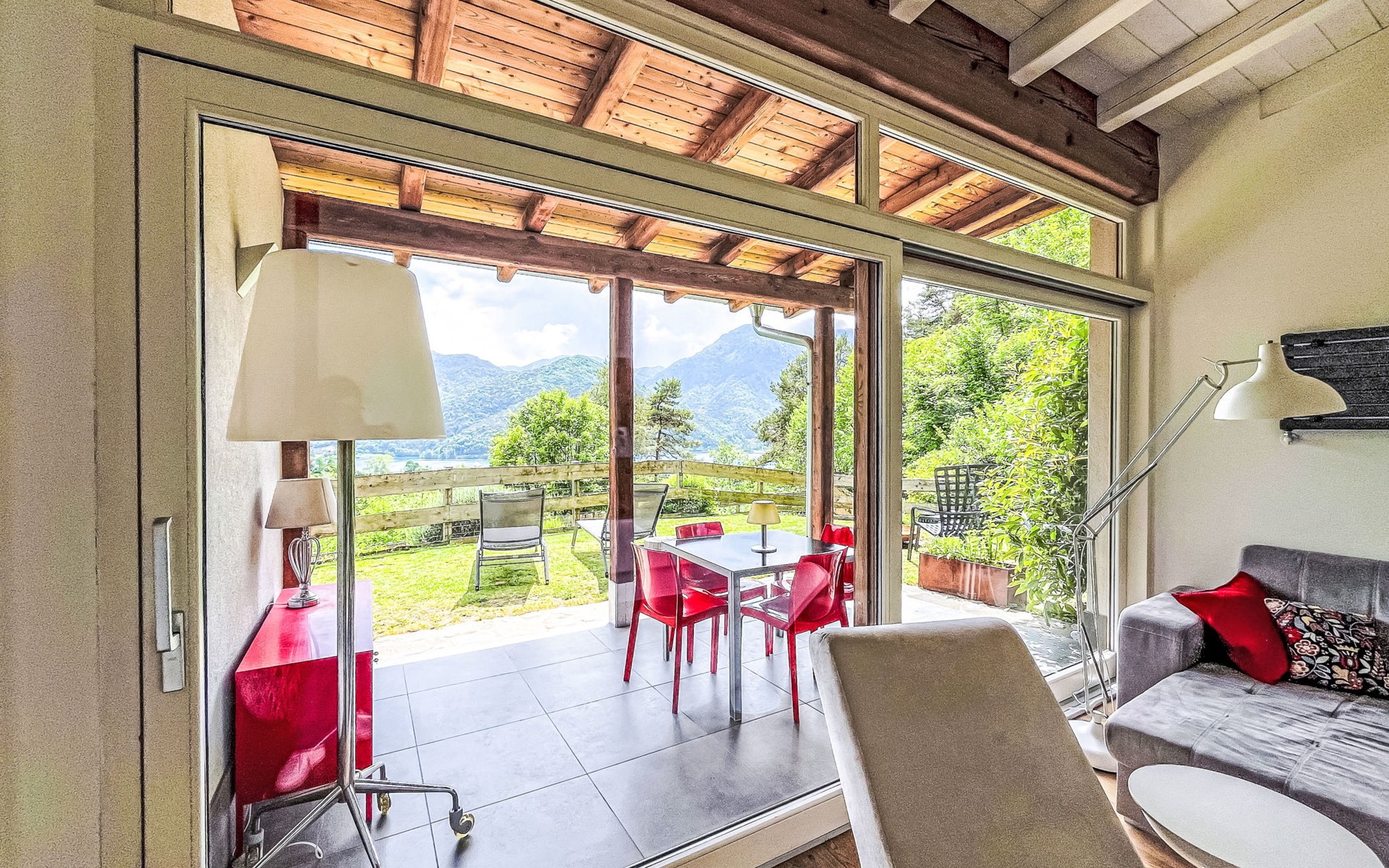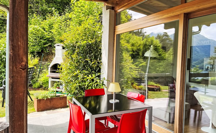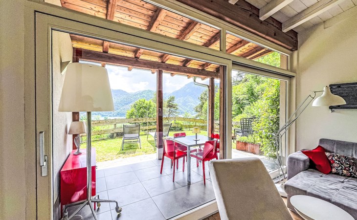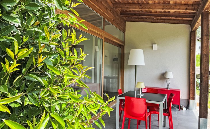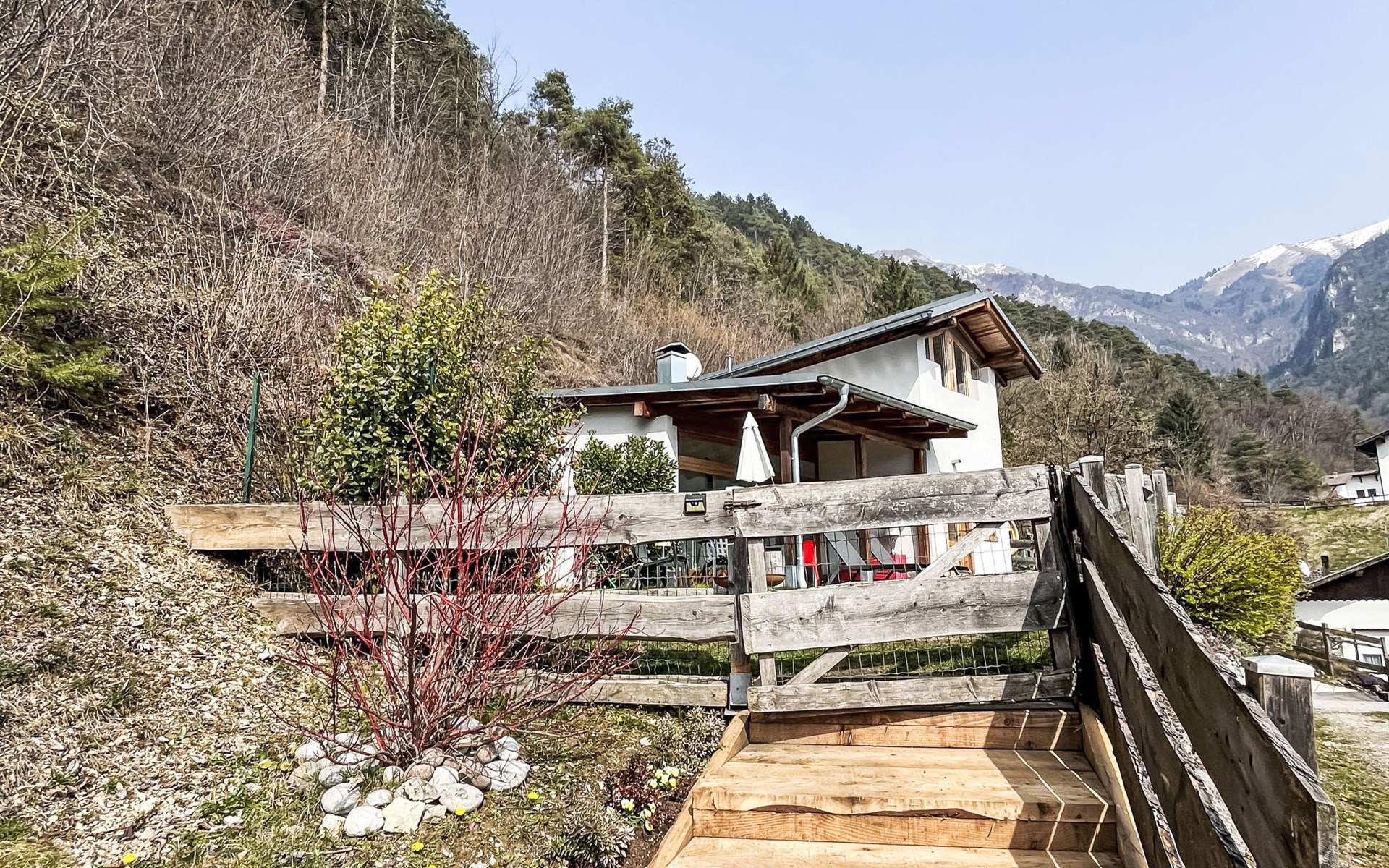 Chalet "Ai Grecc". Im Weiler Mezzolago, ruhige, erhöhte Lage, 600 m vom See, in einer Sackgasse. Zur Alleinbenutzung: Garten (eingezäunt) mit Rasen. Im Hause: Sauna. Parkplatz auf dem Grundstück. Supermarkt 1.5 km, Restaurant 1 km, Bar 1 km, Bushaltestelle 600 m. Bekannte Seen in der Umgebung sind gut erreichbar: Garda 15 km. Bitte beachten: Fahrzeug empfohlen.