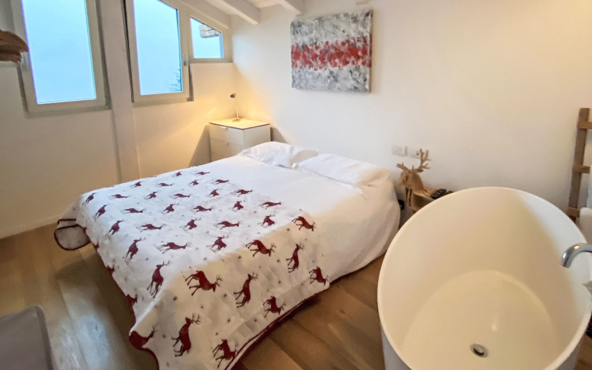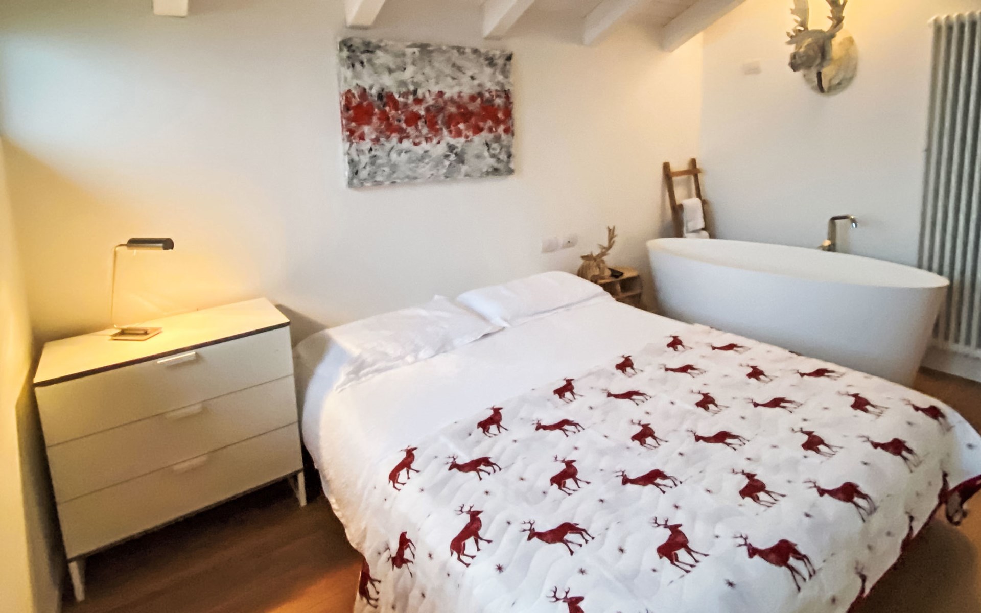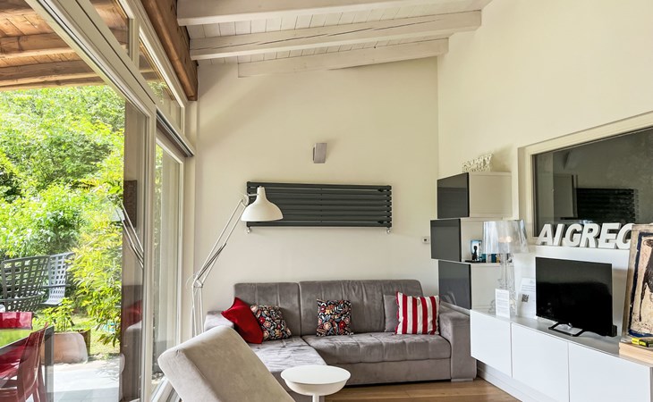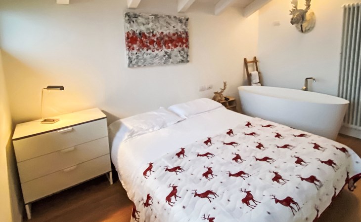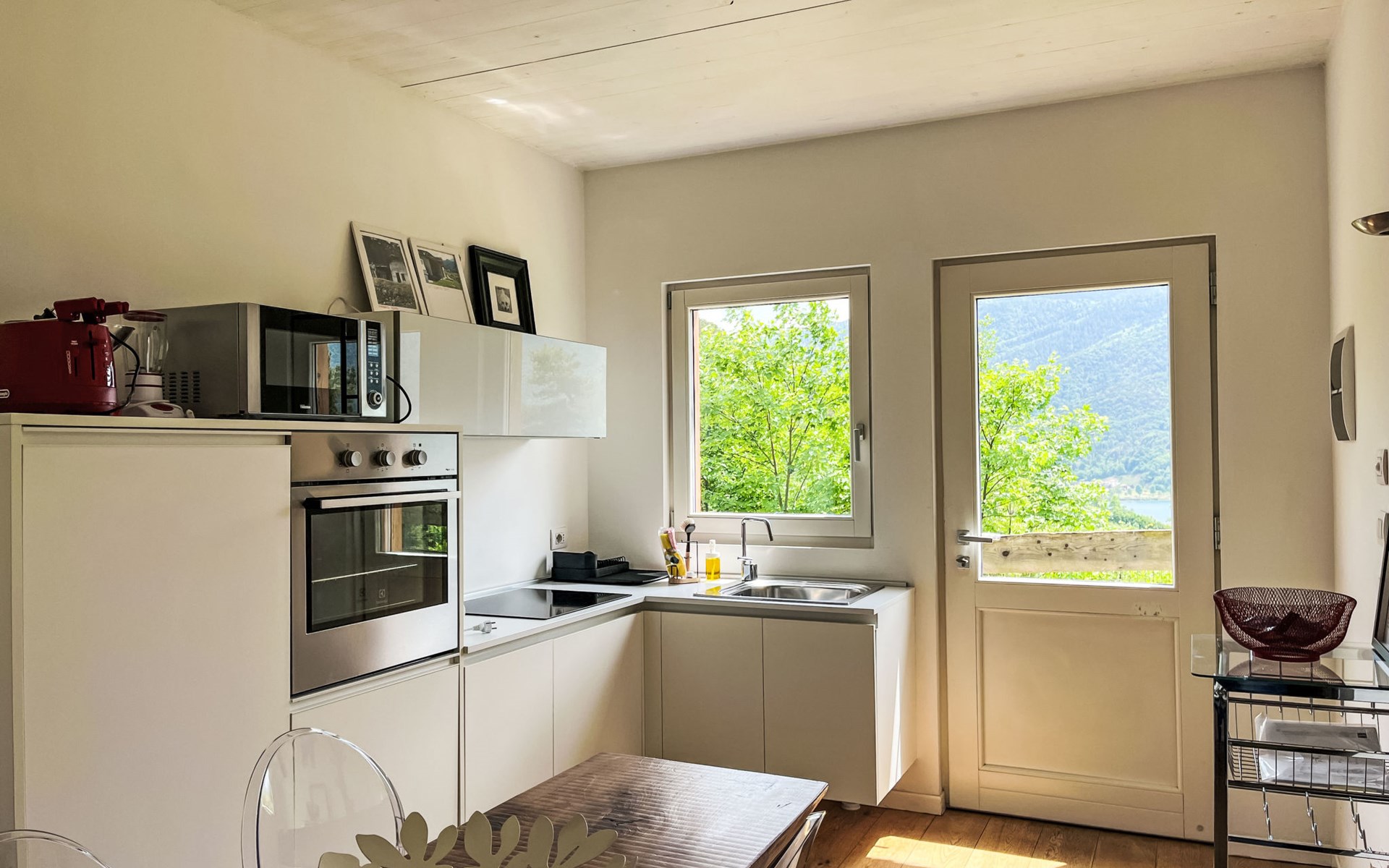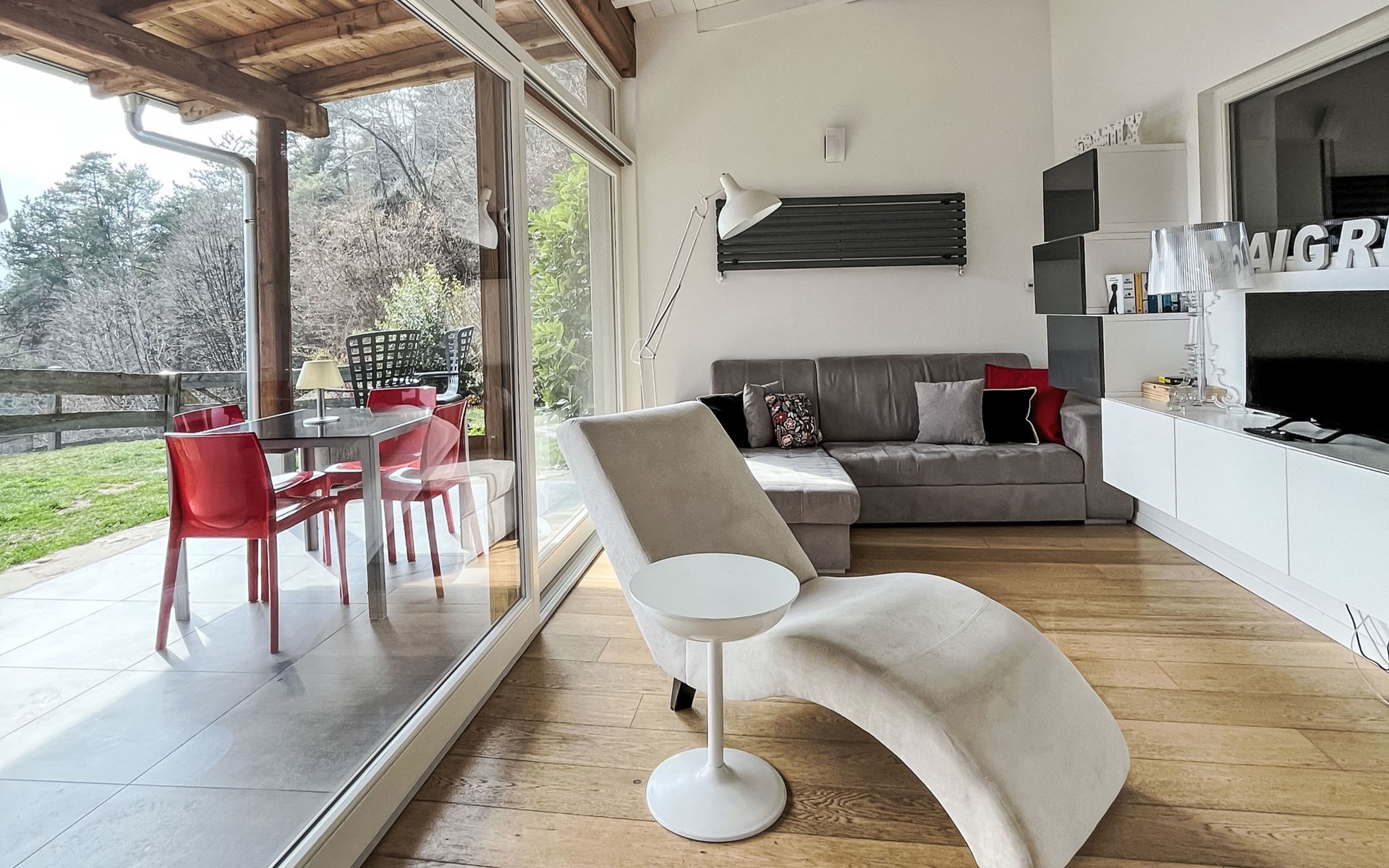 Chalet "Ai Grecc". Im Weiler Mezzolago, ruhige, erhöhte Lage, 600 m vom See, in einer Sackgasse. Zur Alleinbenutzung: Garten (eingezäunt) mit Rasen. Im Hause: Sauna. Parkplatz auf dem Grundstück. Supermarkt 1.5 km, Restaurant 1 km, Bar 1 km, Bushaltestelle 600 m. Bekannte Seen in der Umgebung sind gut erreichbar: Garda 15 km. Bitte beachten: Fahrzeug empfohlen.