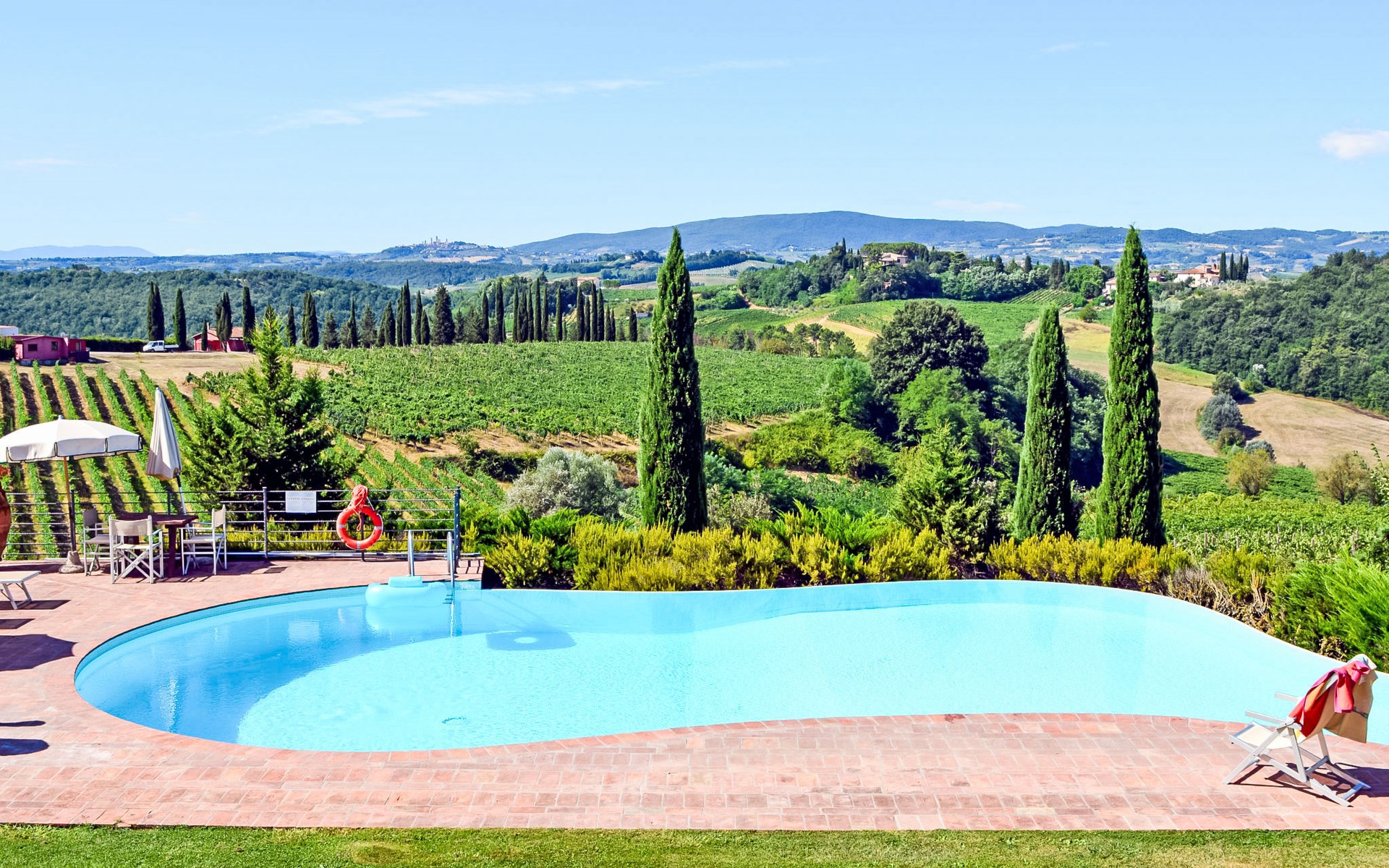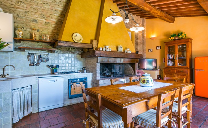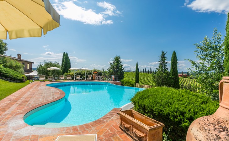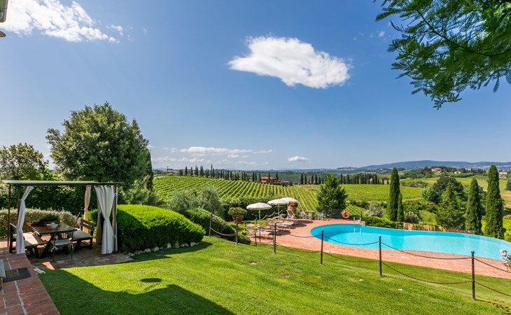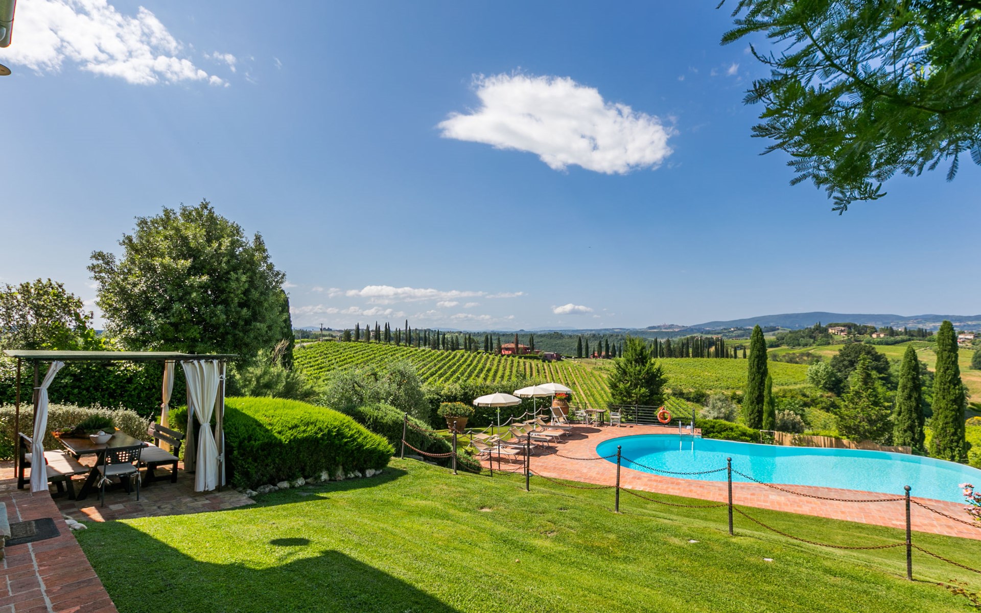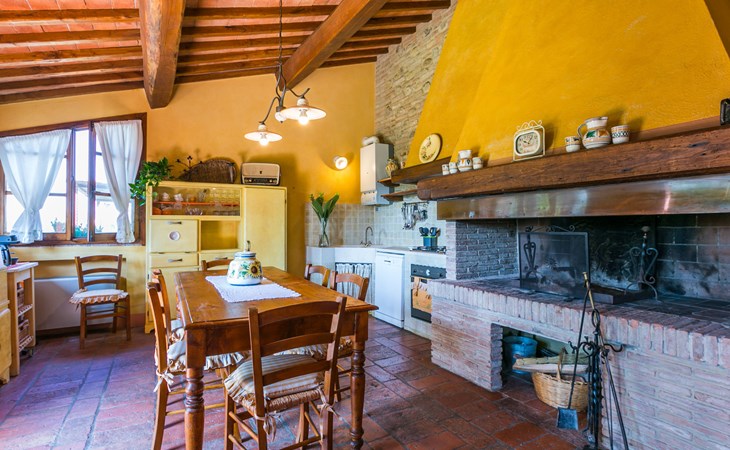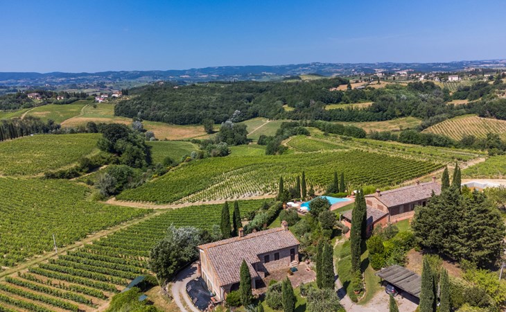 Das schöne Landhaus Casa Mori befindet sich in dominanter Hügellage am Rande eines 10 ha großen Landgutes, welches Wein, Olivenöl und Honig produziert. Bei der aufwendigen Restaurierung wurde auf die Erhaltung der architektonischen Bauweise mit originalgetreuen Details (Steinboden, Holzbalken) besonderen Wert gelegt. Gemütliches Einfamilienhaus "Casa Mori", renoviert. 6 km vom Zentrum von Certaldo, 18 km vom Zentrum von San Gimignano, ruhige, sonnige Lage auf einem Hügel, im Grünen. Zur Alleinbenutzung: schöner, gepflegter Garten mit Rasen und Pflanzen, Schwimmbad (8 x 15 m, 20 - 230 cm tief, saisonale Verfügbarkeit: 15.Apr. - 23.Okt.). Aussendusche, Grill. Im Hause: Internetzugang, Tischtennis, Zentralheizung, Waschmaschine, Heizung nur verfügbar von 01.Nov. - 29.Mar. (extra). Zur Verfügung: Fahrräder. Zufahrt (1 km Naturweg). Parkplatz (überdacht). Einkaufsgeschäft 6 km, Bushaltestelle 2 km, Bahnstation "Certaldo" 6 km. Golfplatz 25 km, Tennis 6 km, Reitstall 4 km. Nahe gelegene Sehenswürdigkeiten: Firenze 40 km, Siena 45 km. Auf dem Anwesen befindet sich noch eine alte, zu landwirtschaftlichen Zwecken, überwiegend während der Weinlese, genutzte Scheune. In herrlicher, panoramareicher Position befindet sich das Schwimmbecken, von dem man über die Landschaft bis zu den Türmen von San Gimignano (15 km) schaut. An der Rückseite des Hauses schön gelegene Terrasse mit Barbecue. Mountainbikes stehen für Ausflüge kostenlos zur Verfügung. Poolhandtücher sind vorhanden (gratis).