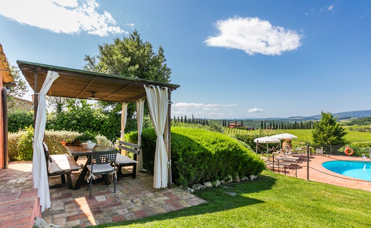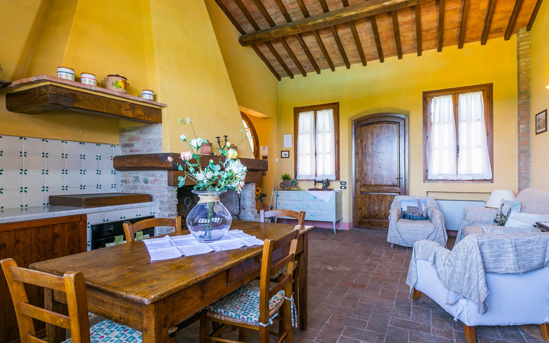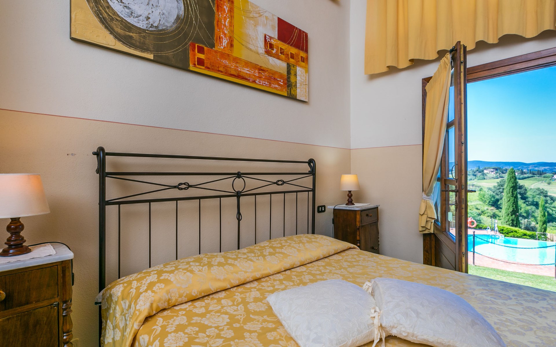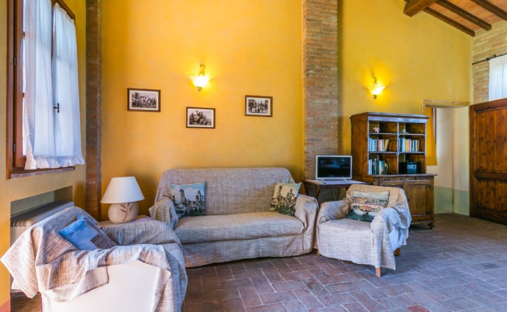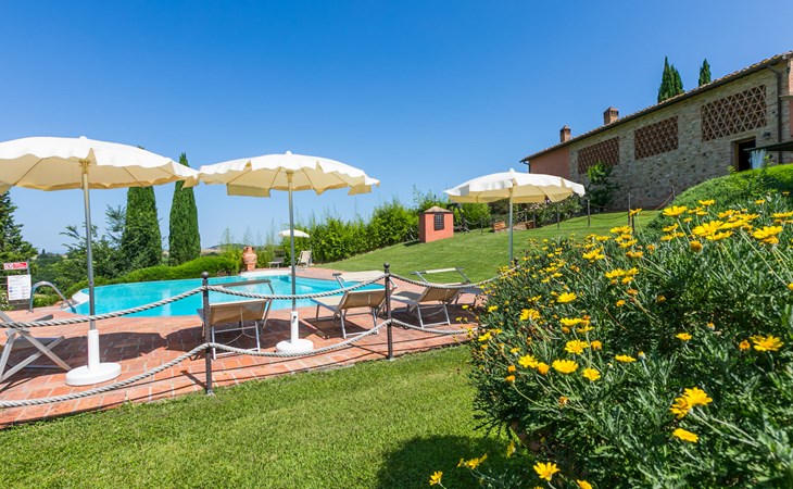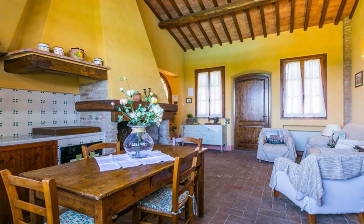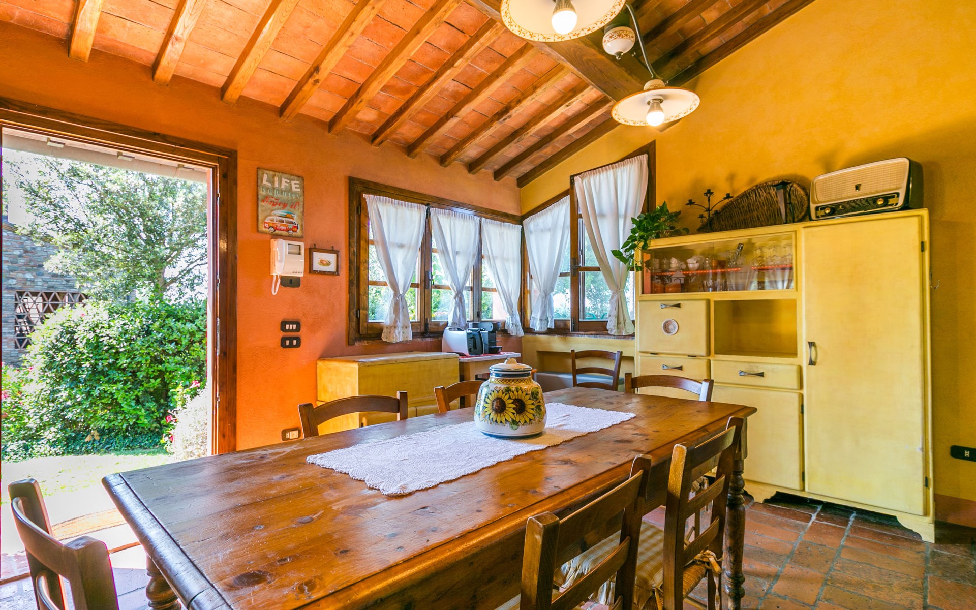 Das schöne Landhaus Casa Mori befindet sich in dominanter Hügellage am Rande eines 10 ha großen Landgutes, welches Wein, Olivenöl und Honig produziert. Bei der aufwendigen Restaurierung wurde auf die Erhaltung der architektonischen Bauweise mit originalgetreuen Details (Steinboden, Holzbalken) besonderen Wert gelegt. Gemütliches Einfamilienhaus "Casa Mori", renoviert. 6 km vom Zentrum von Certaldo, 18 km vom Zentrum von San Gimignano, ruhige, sonnige Lage auf einem Hügel, im Grünen. Zur Alleinbenutzung: schöner, gepflegter Garten mit Rasen und Pflanzen, Schwimmbad (8 x 15 m, 20 - 230 cm tief, saisonale Verfügbarkeit: 15.Apr. - 23.Okt.). Aussendusche, Grill. Im Hause: Internetzugang, Tischtennis, Zentralheizung, Waschmaschine, Heizung nur verfügbar von 01.Nov. - 29.Mar. (extra). Zur Verfügung: Fahrräder. Zufahrt (1 km Naturweg). Parkplatz (überdacht). Einkaufsgeschäft 6 km, Bushaltestelle 2 km, Bahnstation "Certaldo" 6 km. Golfplatz 25 km, Tennis 6 km, Reitstall 4 km. Nahe gelegene Sehenswürdigkeiten: Firenze 40 km, Siena 45 km. Auf dem Anwesen befindet sich noch eine alte, zu landwirtschaftlichen Zwecken, überwiegend während der Weinlese, genutzte Scheune. In herrlicher, panoramareicher Position befindet sich das Schwimmbecken, von dem man über die Landschaft bis zu den Türmen von San Gimignano (15 km) schaut. An der Rückseite des Hauses schön gelegene Terrasse mit Barbecue. Mountainbikes stehen für Ausflüge kostenlos zur Verfügung. Poolhandtücher sind vorhanden (gratis).