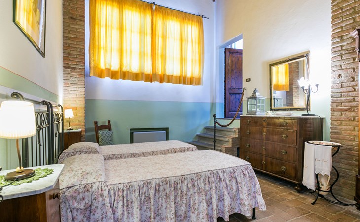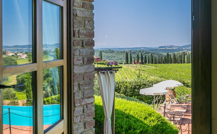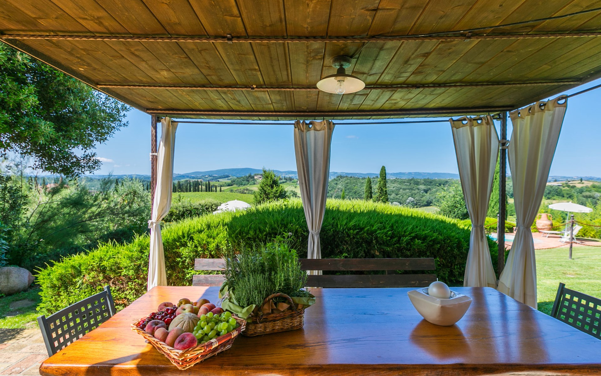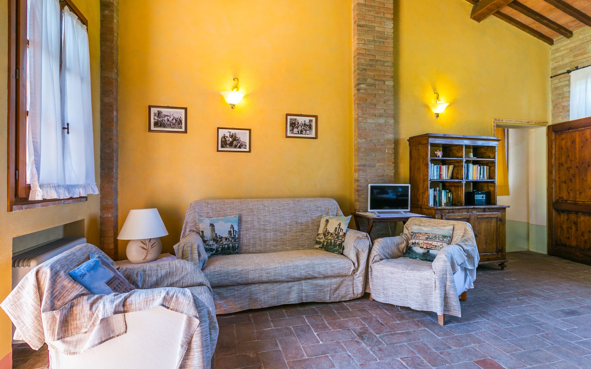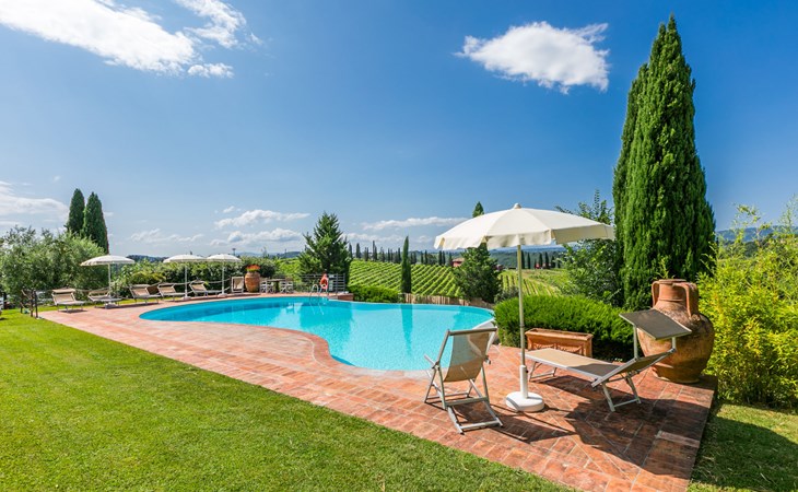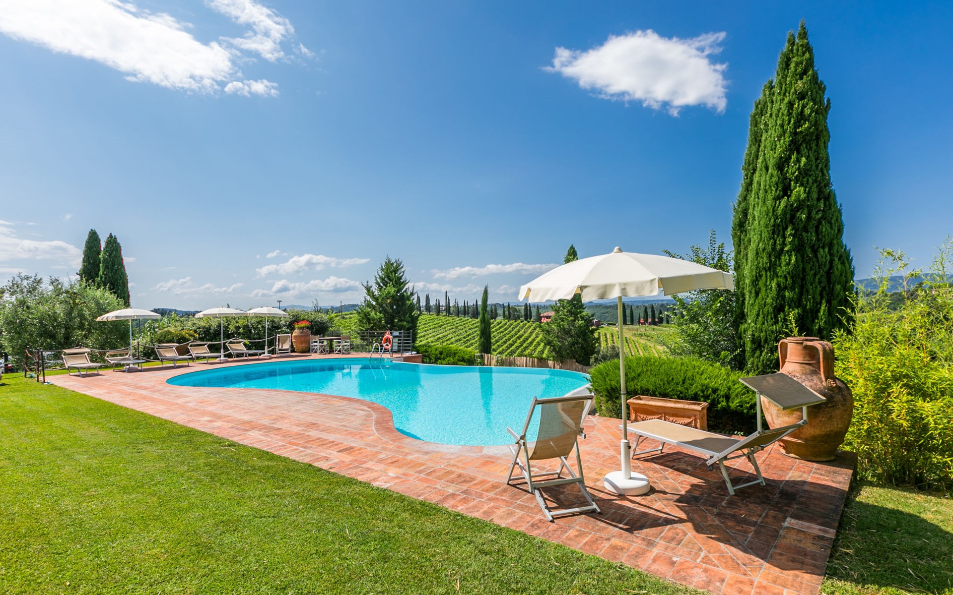 Das schöne Landhaus Casa Mori befindet sich in dominanter Hügellage am Rande eines 10 ha großen Landgutes, welches Wein, Olivenöl und Honig produziert. Bei der aufwendigen Restaurierung wurde auf die Erhaltung der architektonischen Bauweise mit originalgetreuen Details (Steinboden, Holzbalken) besonderen Wert gelegt. Gemütliches Einfamilienhaus "Casa Mori", renoviert. 6 km vom Zentrum von Certaldo, 18 km vom Zentrum von San Gimignano, ruhige, sonnige Lage auf einem Hügel, im Grünen. Zur Alleinbenutzung: schöner, gepflegter Garten mit Rasen und Pflanzen, Schwimmbad (8 x 15 m, 20 - 230 cm tief, saisonale Verfügbarkeit: 15.Apr. - 23.Okt.). Aussendusche, Grill. Im Hause: Internetzugang, Tischtennis, Zentralheizung, Waschmaschine, Heizung nur verfügbar von 01.Nov. - 29.Mar. (extra). Zur Verfügung: Fahrräder. Zufahrt (1 km Naturweg). Parkplatz (überdacht). Einkaufsgeschäft 6 km, Bushaltestelle 2 km, Bahnstation "Certaldo" 6 km. Golfplatz 25 km, Tennis 6 km, Reitstall 4 km. Nahe gelegene Sehenswürdigkeiten: Firenze 40 km, Siena 45 km. Auf dem Anwesen befindet sich noch eine alte, zu landwirtschaftlichen Zwecken, überwiegend während der Weinlese, genutzte Scheune. In herrlicher, panoramareicher Position befindet sich das Schwimmbecken, von dem man über die Landschaft bis zu den Türmen von San Gimignano (15 km) schaut. An der Rückseite des Hauses schön gelegene Terrasse mit Barbecue. Mountainbikes stehen für Ausflüge kostenlos zur Verfügung. Poolhandtücher sind vorhanden (gratis).
