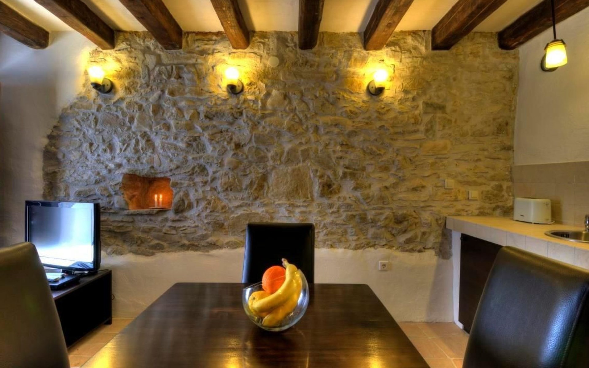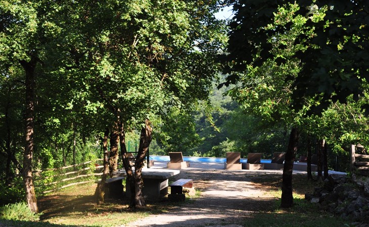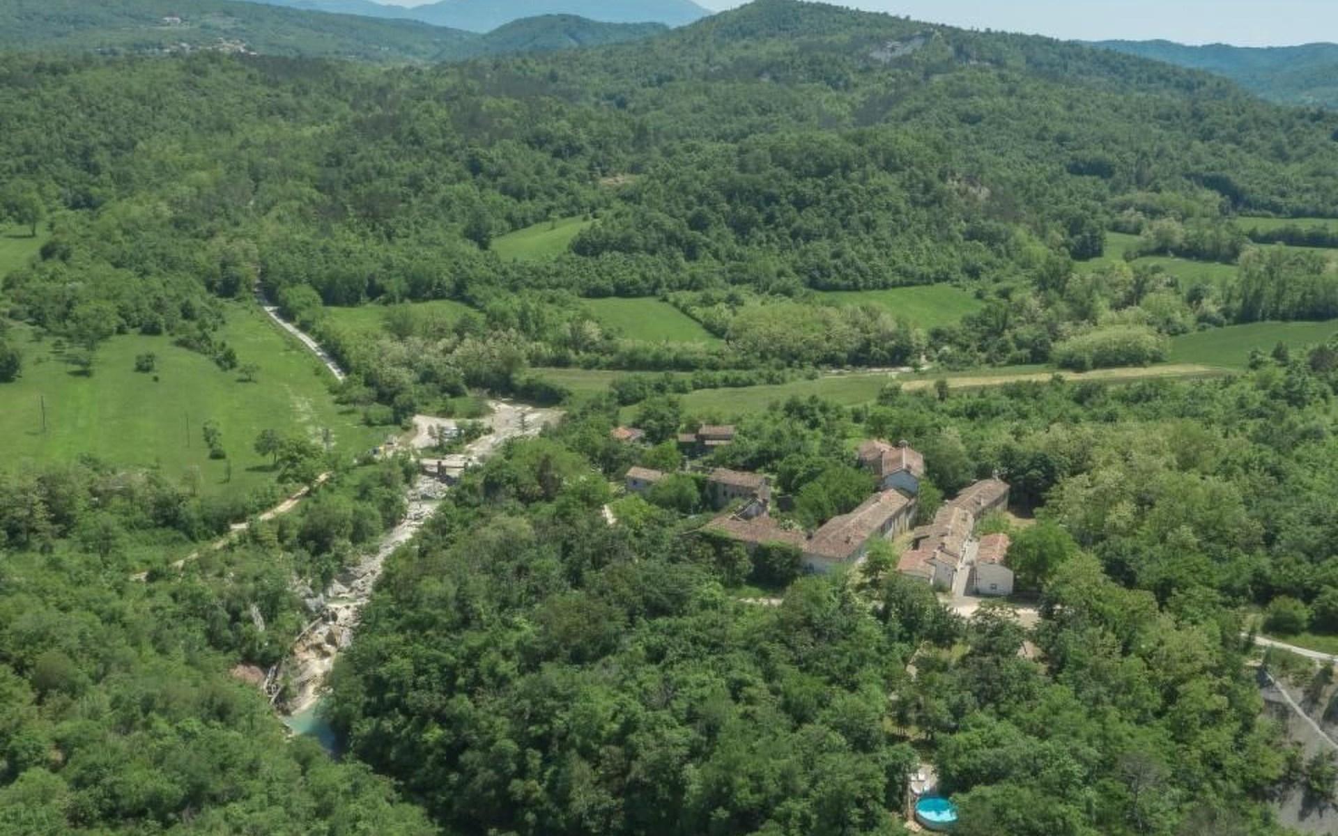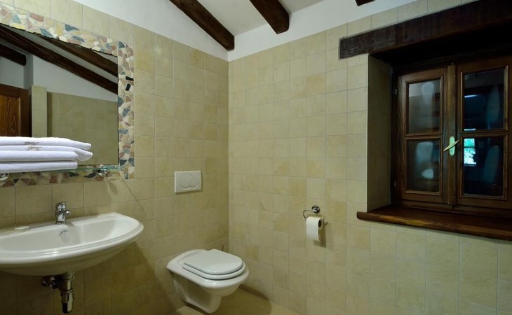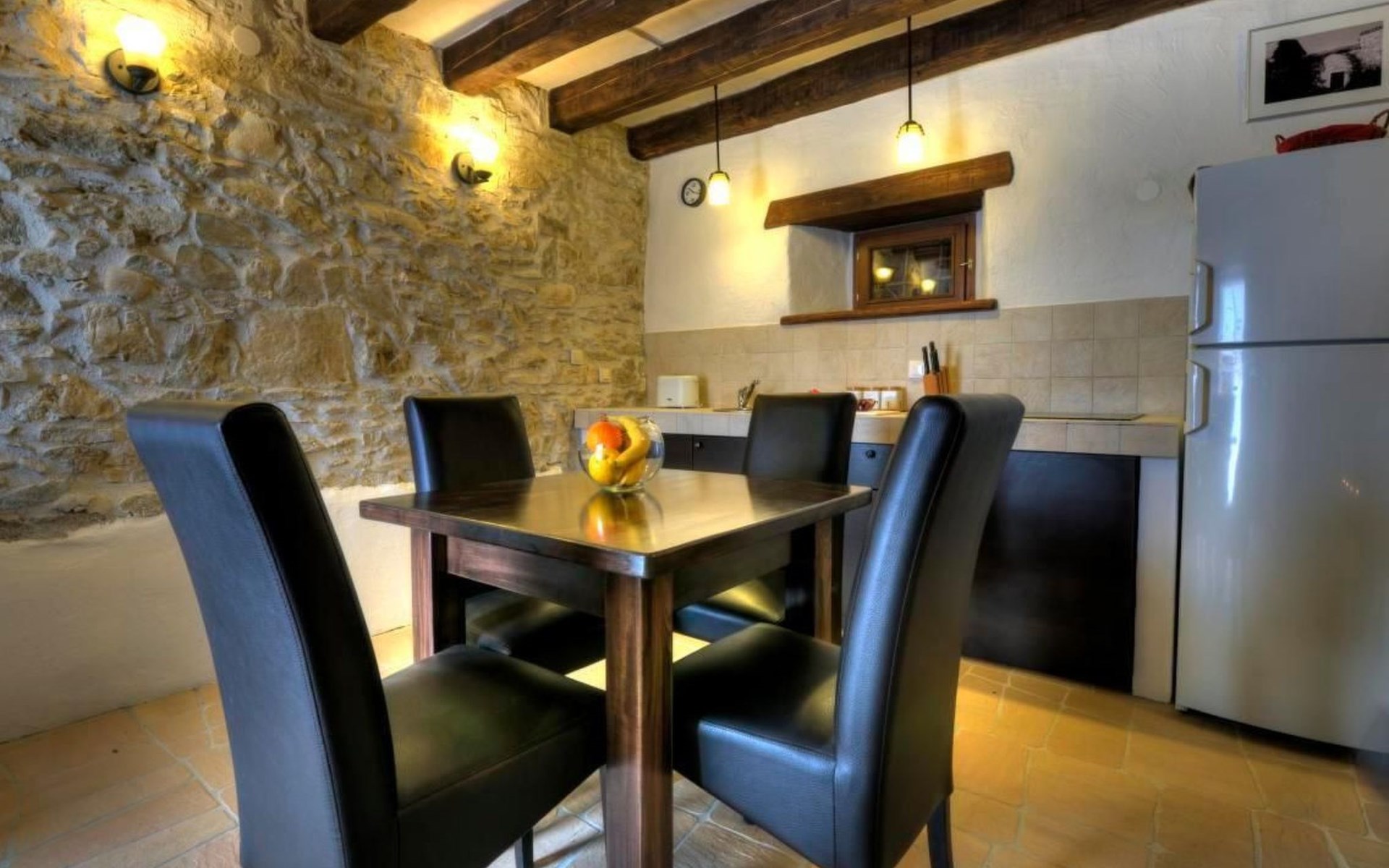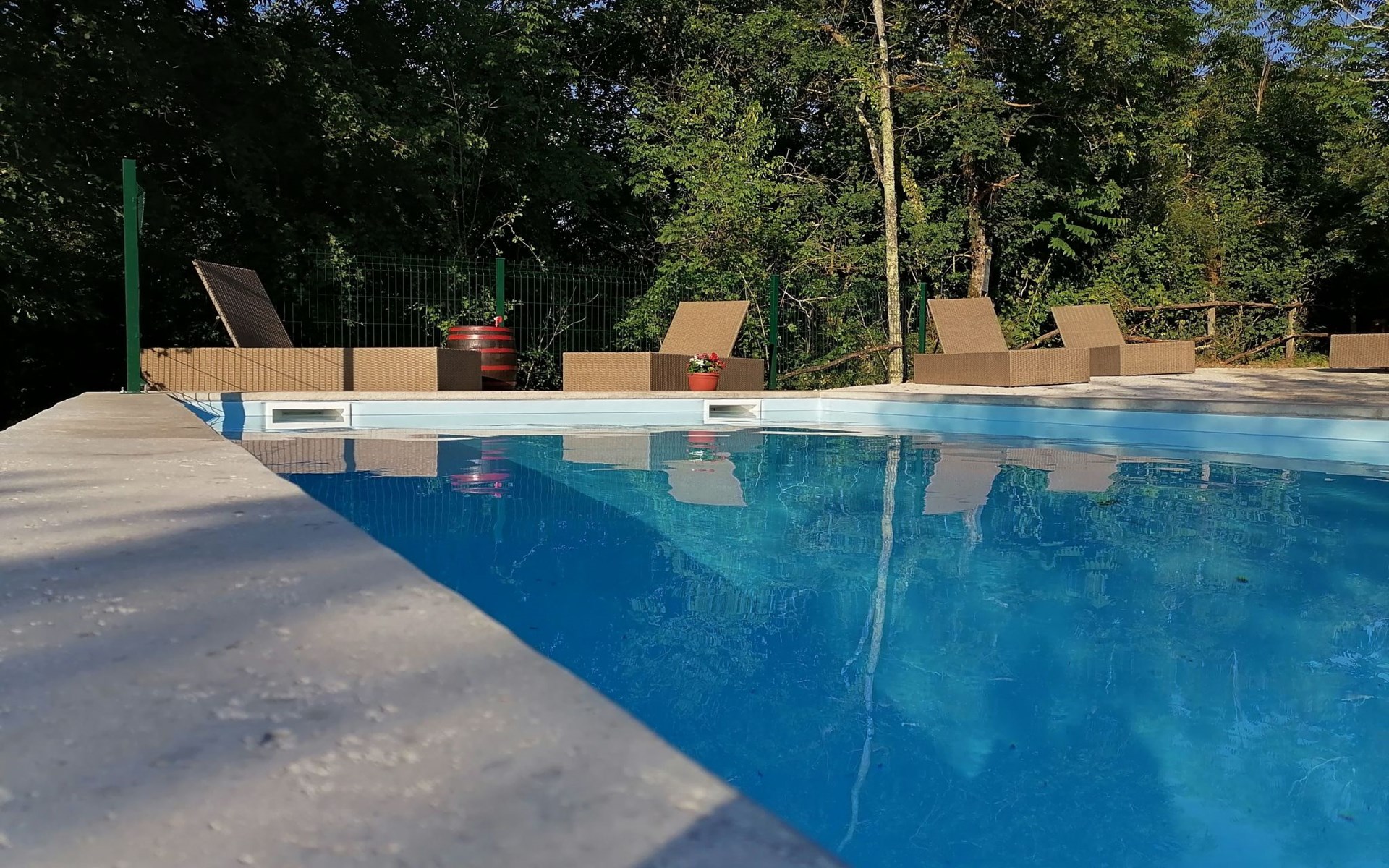 Wenn Sie nach draußen treten, werden Sie von gut erhaltenen Höfen, Außentreppen, gewölbten Durchgängen und malerischen Schornsteinen begrüßt, die das Gefühl vermitteln, die Zeit sei stehen geblieben. Der Garten ist mit Möbeln, einem Grill für gemütliche Grillabende und Spielgeräten für die kleinen Gäste ausgestattet. Zu den Außenanlagen gehört auch ein herrlicher Swimmingpool zur gemeinsamen Nutzung, der ein erfrischendes Bad unter freiem Himmel verspricht. Das sanfte Fließen des Flusses Mirna und die malerischen Wasserfälle bilden eine ruhige Kulisse für Entspannung und Freizeit.