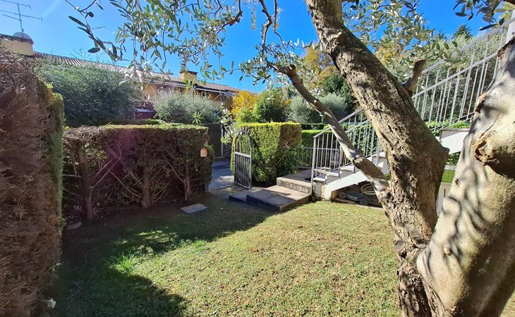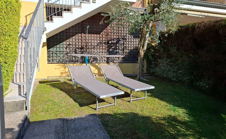Draußen lädt der private, komplett eingezäunte Gartenbereich zum Entspannen ein. Die Wohnung verfügt über zwei große Terrassen mit Ess- und Grillplatz sowie eine Gartenfläche von ca. 30 m2, ausgestattet mit Sonnenliegen, Sonnenschirm und einer Außendusche. Diese private Oase bietet Ihnen den perfekten Rahmen, um die italienische Sonne in völliger Ruhe zu genießen.