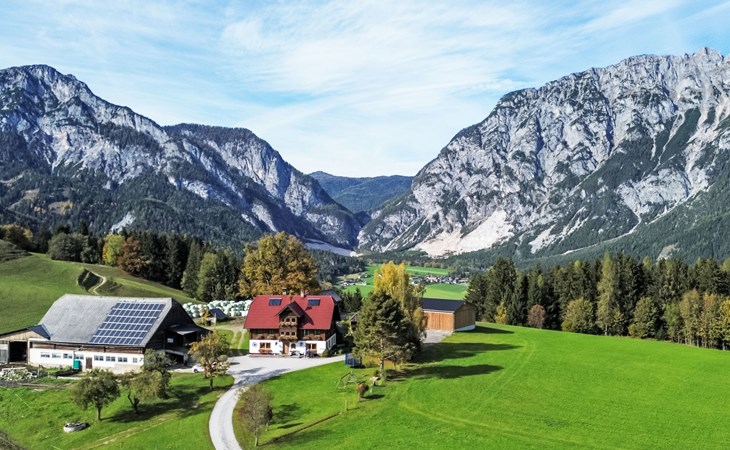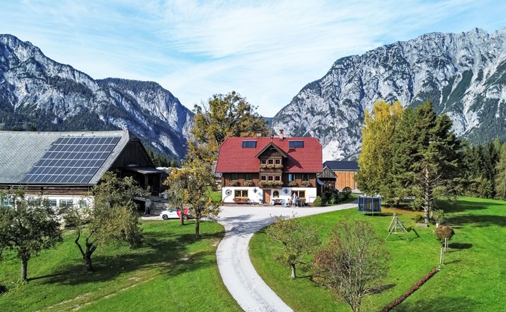 Pruggern liegt im Ennstal ca. 15 km von Schladming entfernt. Die sechs Kilometer lange Naturrodelbahn ist eine der längsten in Österreich. Im Winter sind die anliegenden Pisten direkt vor dem Haus mit Schiern befahrbar. Vergessen Sie das umständliche Schleppen Ihrer Utensilien. Im Sommer bietet die Lage einen optimalen Ausgangspunkt für unzählige Wander- und Radtouren an. Ausflüge mit Kutschen oder Pferdeschlitten (gegen Gebühr) können hier ebenfalls jederzeit unternommen werden. Genießen Sie herrliche Urlaubstage inmitten der schönsten Naturlandschaften Österreichs mit Panorama-Aussichten in 1.200 Meter Seehöhe.