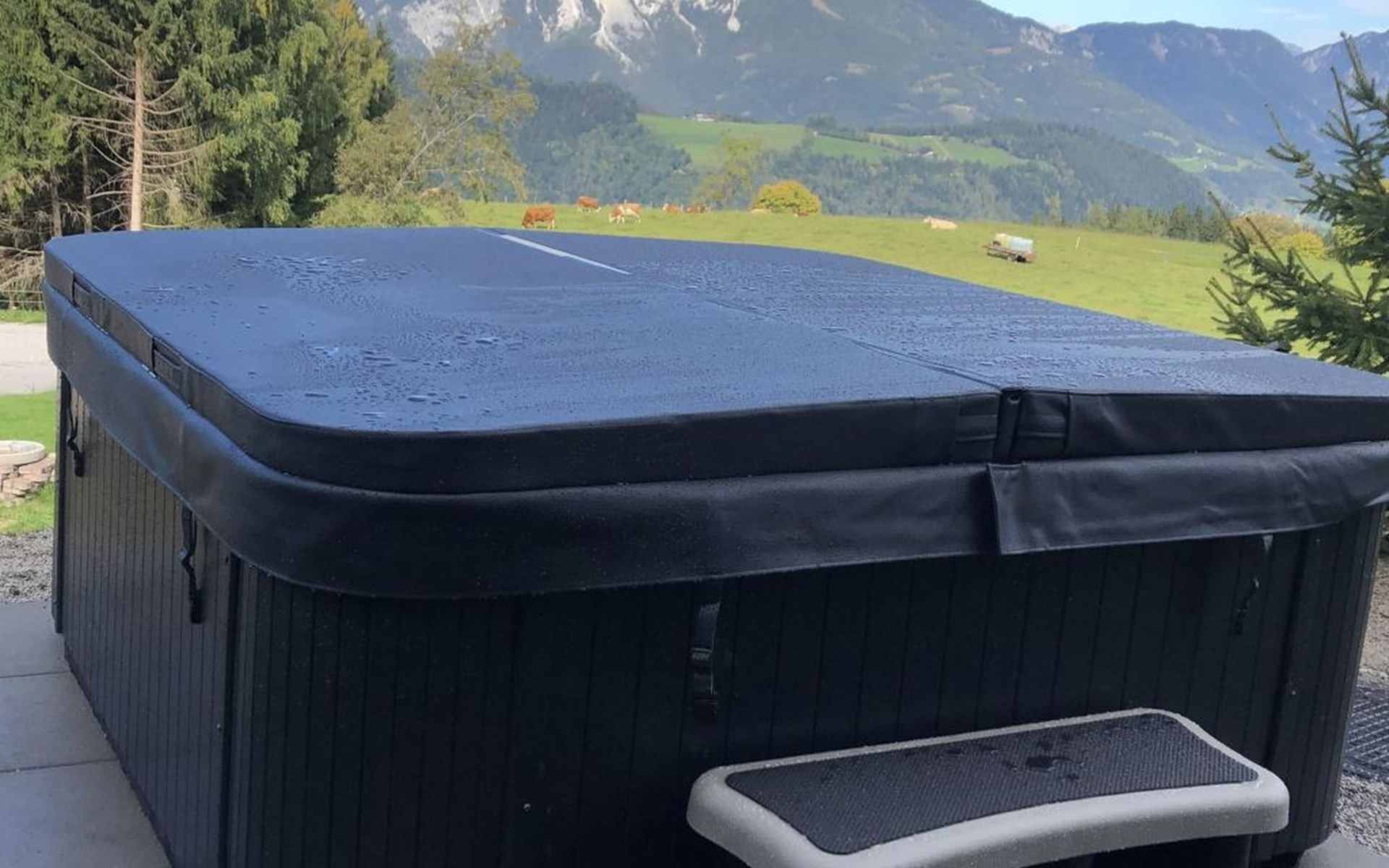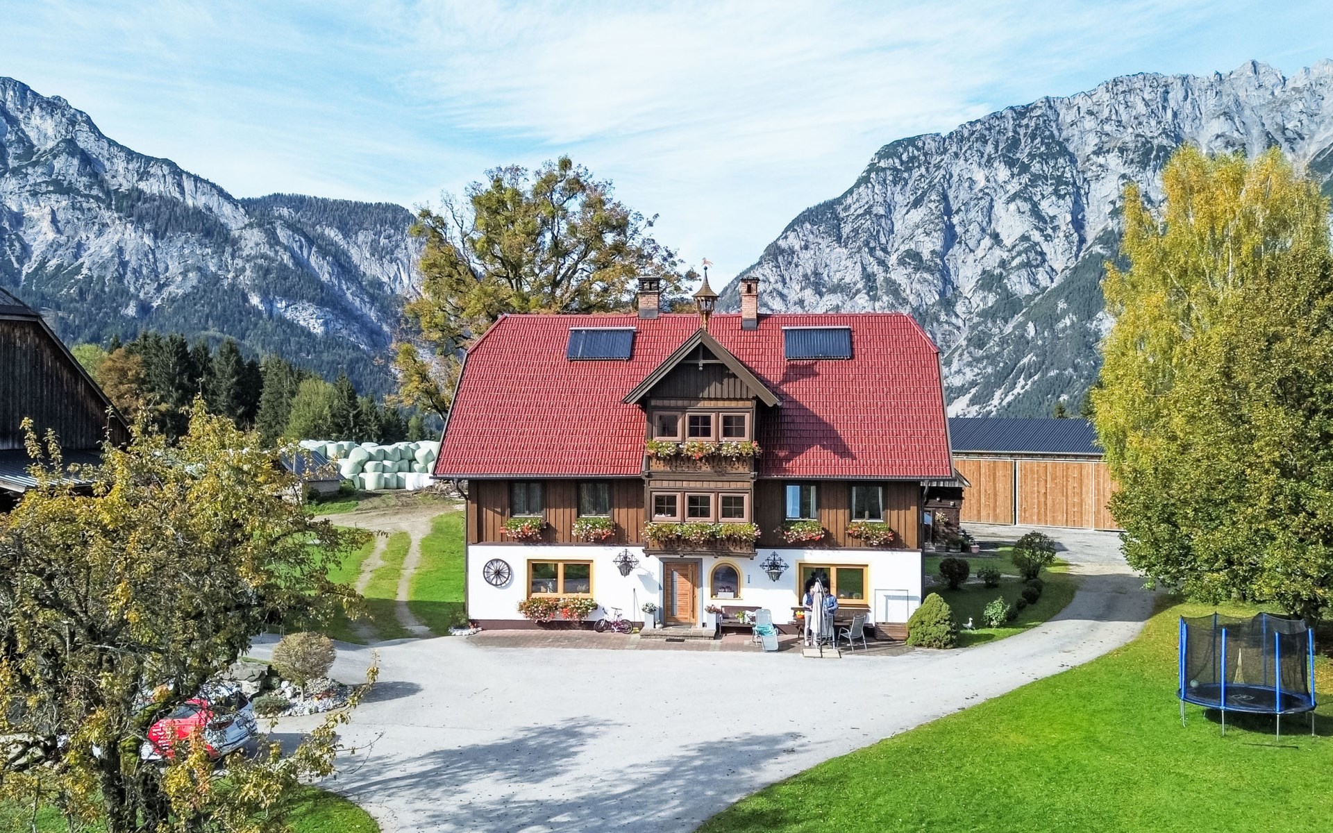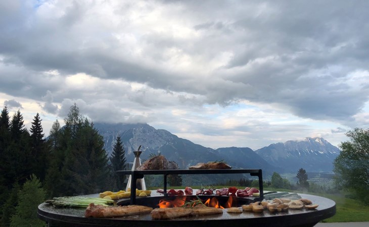 In 1.200 Meter Seehöhe und mit Blick auf den Dachstein lässt das großzügig, über zwei Etagen, angelegte Haus keine Urlaubswünsche offen. Auf ca. 200m² verteilen sich fünf Schlafzimmer, drei Badezimmer, vier WCs, eine Sauna und SPA Bereich sowie ein großflächiger Wohn- und Essbereich. Entspannen Sie sich hier vom Alltag und genießen Sie ein wärmendes Kaminfeuer, eine entspannende Sauna mit Blick auf den Dachstein oder machen Sie es sich auf dem überdachten Balkon bei einem Glas Wein gemütlich. Das romantische Chalet wurde mit persönlicher Note und viel Liebe zum Detail gebaut und eingerichtet. Es erwartet Sie ein traditionelles Ambiente. Im Erdgeschoss finden Sie zwei Schlafzimmer vor. Ein Schlafzimmer mit einem Doppelbett und ein weiteres mit zwei Einzelbetten. Weiterhin befindet sich hier die moderne voll ausgestattete Küche mitsamt Elektrogeräten, inklusive Kaffeemaschine (für Bohnen) und allen erdenklichen Utensilien des täglichen Bedarfs sowie Radio und ein SAT-TV Gerät. Im großen Wohn- und Essbereich lädt ein großer Esstisch nach dem Kochen zum gemeinsamen Speisen ein. Weiterhin befindet sich noch ein Badezimmer mit Dusche und WC im Erdgeschoss. Im Obergeschoss befinden sich drei Schlafzimmer. Im ersten und zweiten Schlafzimmer befindet sich jeweils ein Doppelbett, und im dritten Zimmer sind zwei Einzelbetten vorzufinden. Das erste Schlafzimmer verfügt über ein Badezimmer en Suite mit Dusche und WC. Ebenfalls befindet sich ein zweites Badezimmer mit Dusche und WC auf der oberen Etage. Im Keller des Hauses befindet sich die eigene Sauna mit Umkleide- und Ruheraum sowie Duschmöglichkeiten. Ein WC ist außerdem vorhanden. Weiterhin befindet sich hier noch ein Raum, wo die Skiausrüstung gelagert werden kann. Im ganzen Haus außer im Obergeschoss ist eine vollautomatisch gesteuerte zentrale Heizanlage (Fußbodenheizung) integriert. Gegenstände des persönlichen Bedarfs wie Hand-, Bade- und Saunatücher sowie Bettwäsche können gegen Aufpreis gemietet werden. Kinder- bzw. Gitterbett (inkl. Bettwäsche) sowie Hochstuhl werden auf Wunsch bereit gestellt. WLAN und Kaminholz sind im Haus .