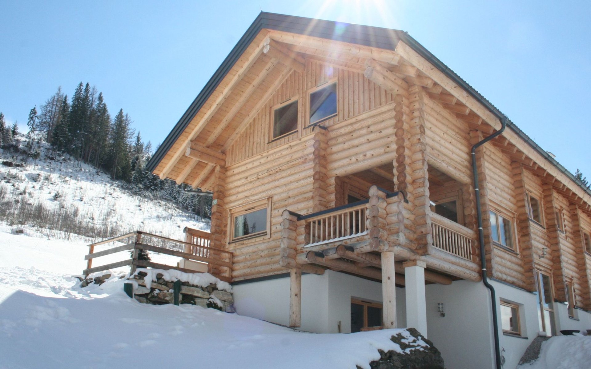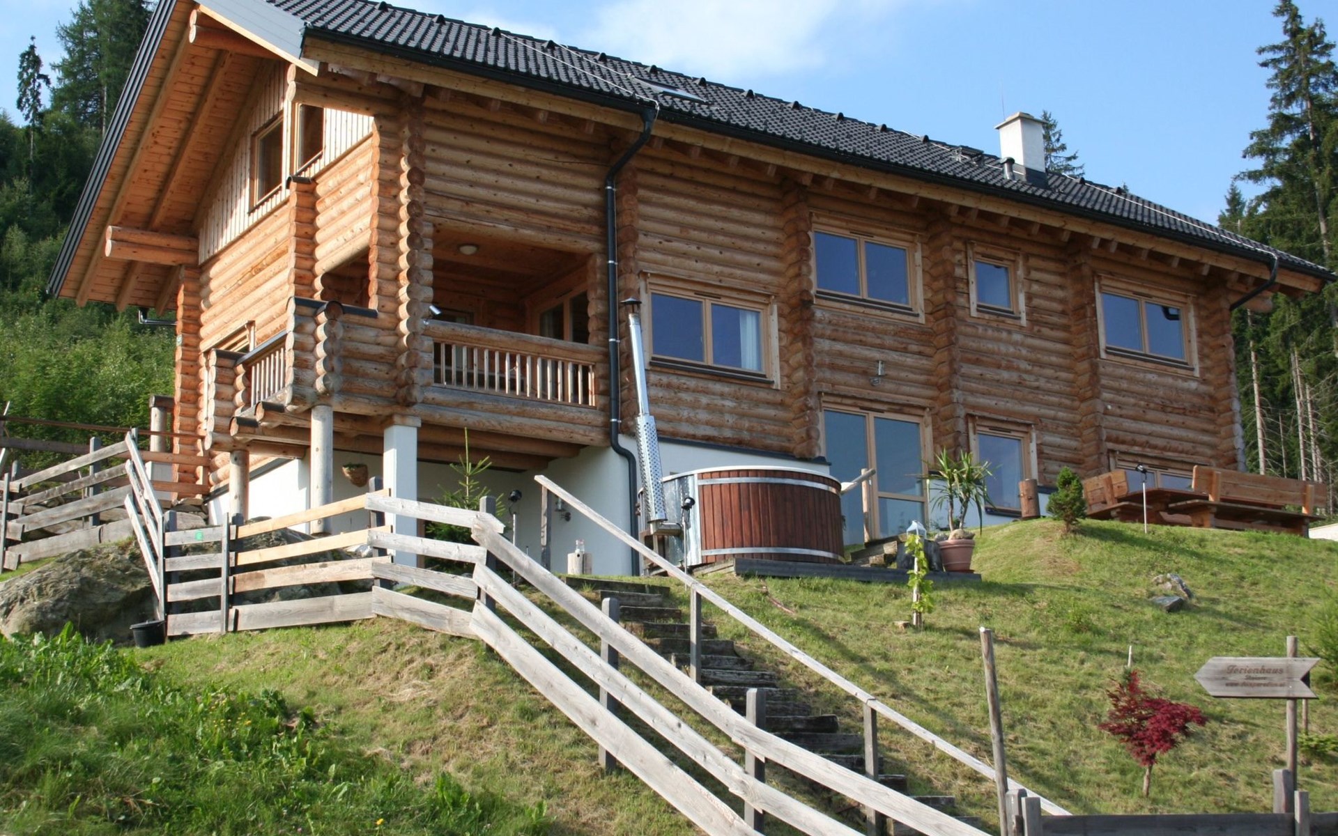 Hochwertiges finnisches Blockhaus mit Garten und Whirlpool, mit einem herrlichen Panoramablick auf die alpine Umgebung, mitten im Ski- und Wandergebiet gelegen, erkunden Sie die Umgebung bei ausgedehnten Wander- und Fahrradtouren, nutzen Sie im Winter den unmittelbaren Pisteneinstieg oder erholen Sie sich in dem romantischen Chalet mit eigener Sauna
