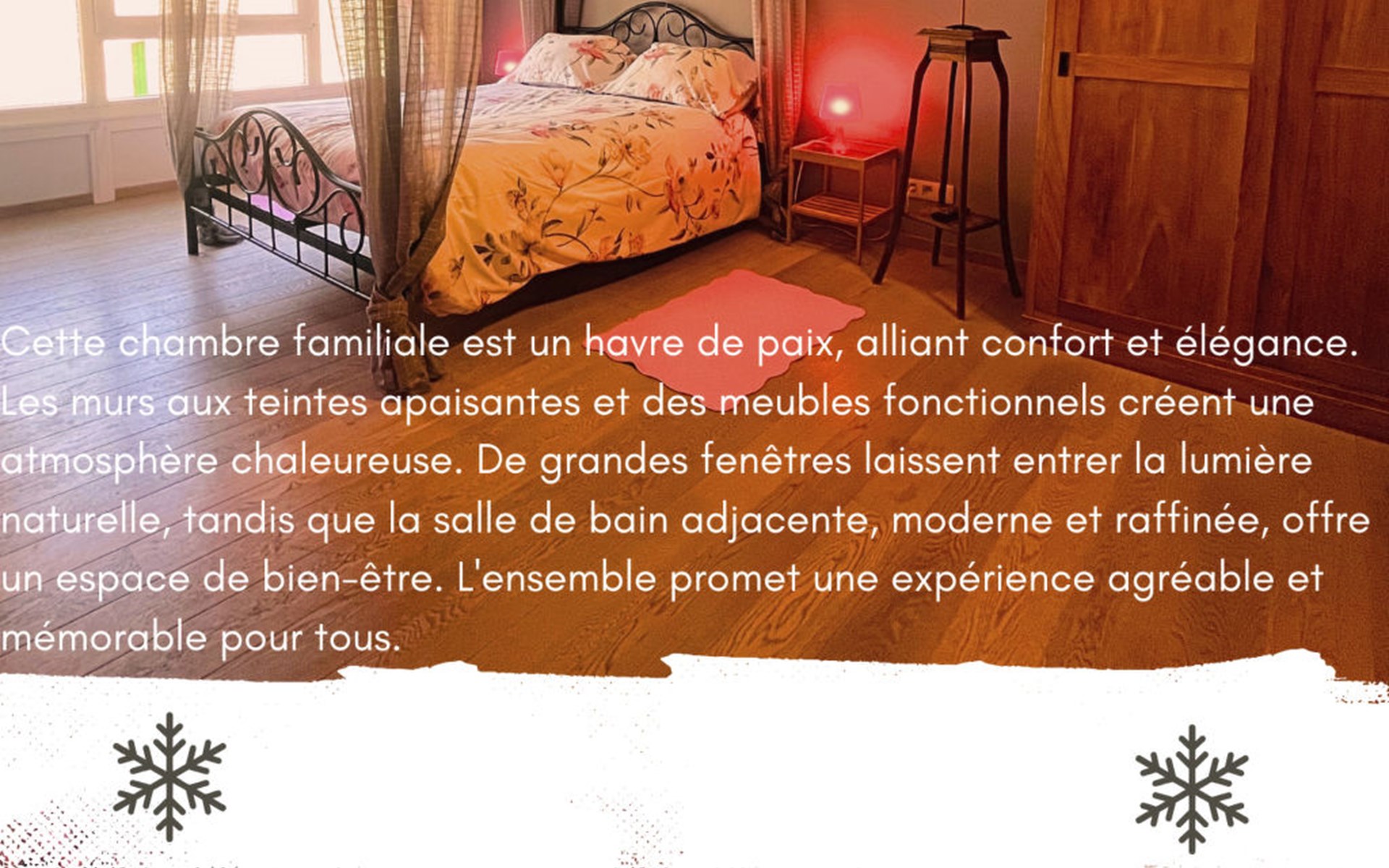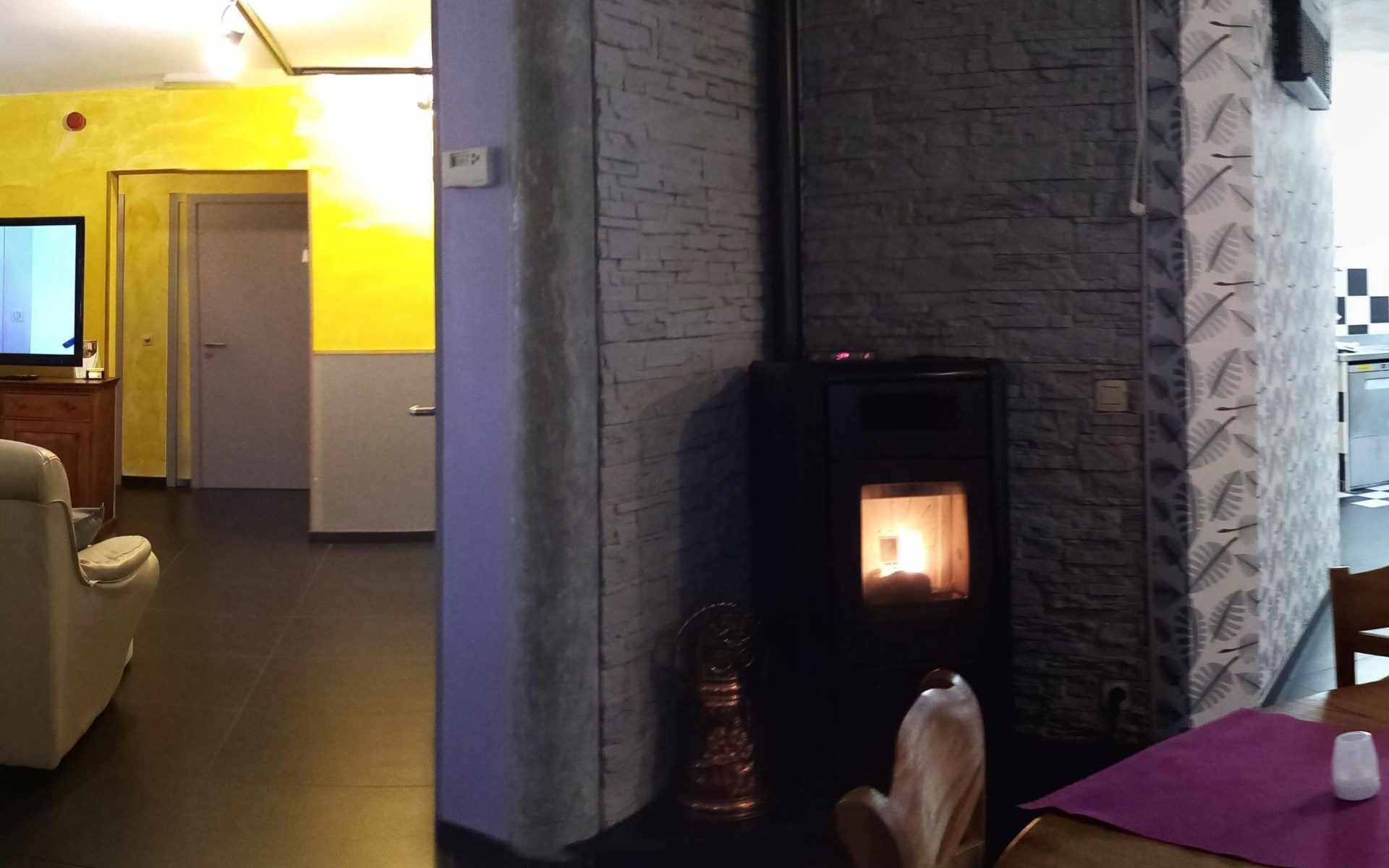Das Innere der Unterkunft zeichnet sich durch eine gelungene Kombination aus Tradition und Moderne aus. Genießen Sie einen großen Wohnraum, der mit einer schönen Bar mit Eiswürfelfroster, einer professionellen Edelstahlküche, Gesellschaftsspielen, zahlreichen Büchern und einem riesigen Flachbildfernseher ausgestattet ist. Komfort wird großgeschrieben, mit Fußbodenheizung, einem Pelletofen für eine gemütliche Atmosphäre und kostenlosem Wi-Fi. Für Ihre Privatsphäre profitiert jedes Zimmer von einem TV/DVD und einem eigenen Badezimmer, einige mit Dusche, WC und Waschbecken, andere mit großer Badewanne, WC und Doppelwaschbecken.