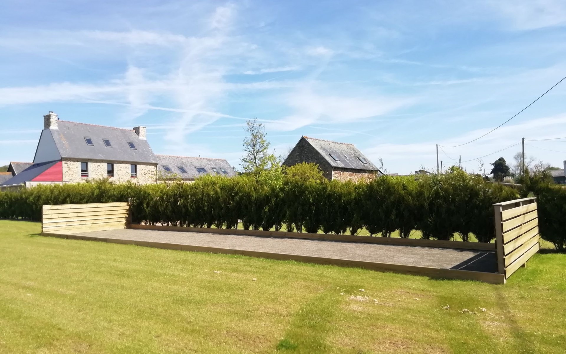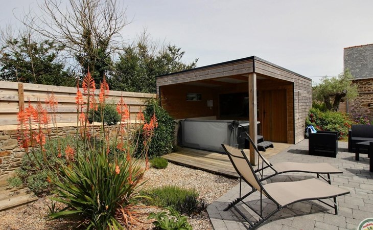 Auch der Außenbereich kommt nicht zu kurz: eine wunderschöne Terrasse mit Gartentisch und -möbeln, ein privater Whirlpool und eine Sauna für Momente der absoluten Entspannung. Das Rasengrundstück erstreckt sich um das Haus herum und wird durch eine Boulebahn für Spielnachmittage mit der Familie oder mit Freunden ergänzt. Der Privatparkplatz sorgt für eine entspannte Anreise und einen entspannten Aufenthalt.