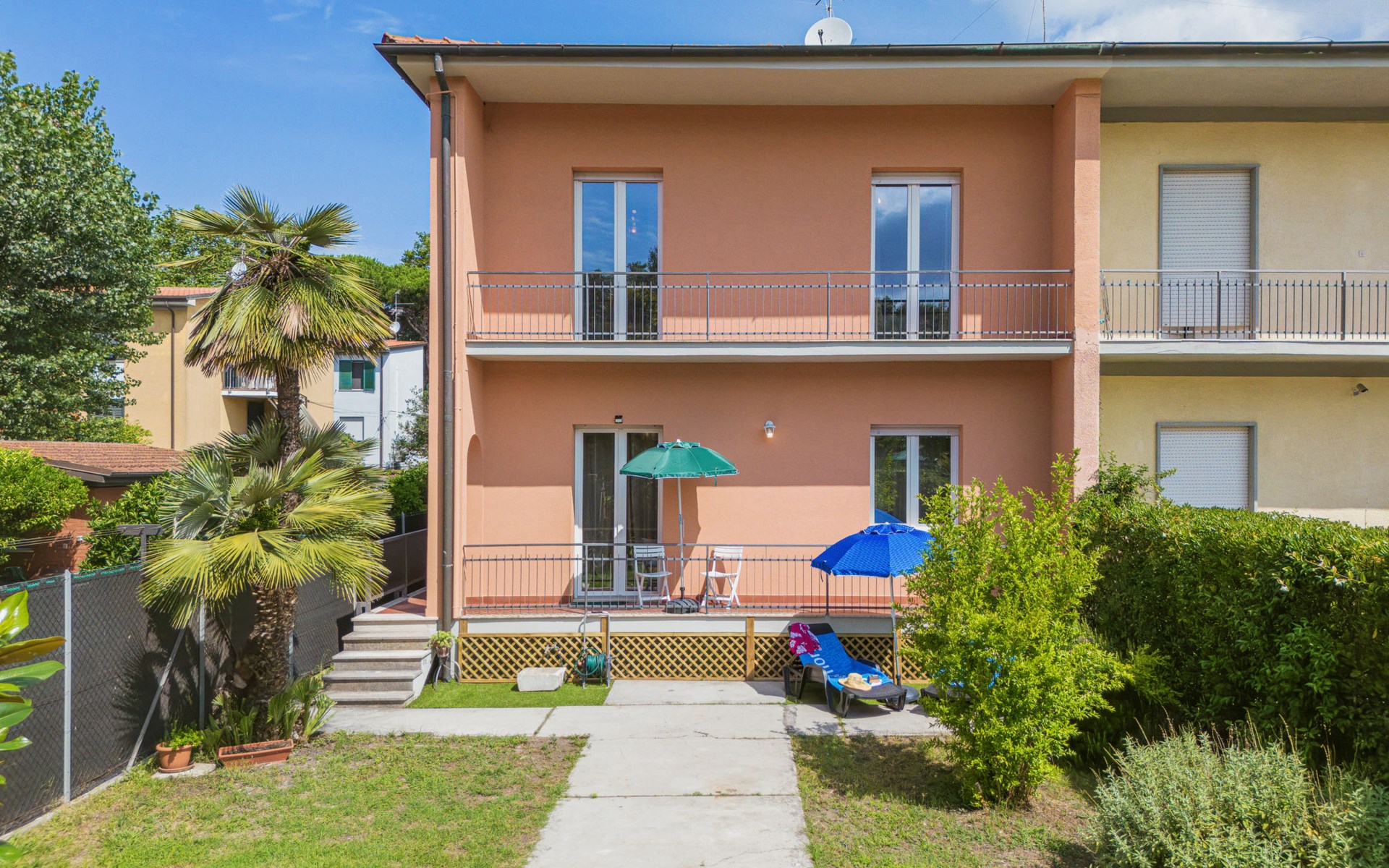 Grosses, gemütliches, komfortables Zweifamilienhaus. 2 km vom Zentrum von Viareggio, im Bezirk Darsena, ruhige, sonnige Lage im Villenviertel, 500 m vom Meer, vom Strand. Zur Alleinbenutzung: grosser Garten Pflanzen und Bäumen, Naturgarten. Terrasse, Gartenmöbel. Heizung nur verfügbar von 01.Nov. - 15.Apr.. Öffentliche Parkplätze auf der Strasse. Lebensmittelgeschäft 600 m, Supermarkt, Restaurant 100 m, Bar 100 m, Bäckerei 500 m, Fahrradverleih 600 m, Bushaltestelle 100 m, Bahnstation "Viareggio" 2.8 km. Golfplatz (18 Loch) 15 km, Surfschule, Segelschule 500 m, Tennis 2 km, Sportzentrum 2 km. Nahe gelegene Sehenswürdigkeiten: Firenze 90 km, Pisa 25 km, Lucca 25 km, Forte dei Marmi 15 km, Pietrasanta 12 km, Cinque Terre 50 km. Bekannte Seen in der Umgebung sind gut erreichbar: Massaciuccoli 6 km. Wandergebiete: Sentieri Alpi Apuane 15 km. Bitte beachten: Babyausstattung auf Anfrage (extra). Der Besitzer akzeptiert keine Jugendgruppen. Ein Teil des Hauses ist geschlossen und nicht bewohnt.