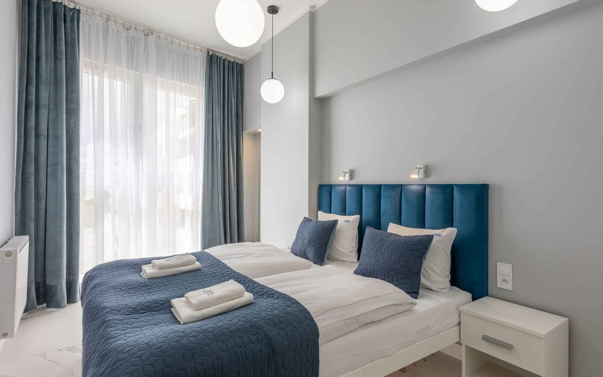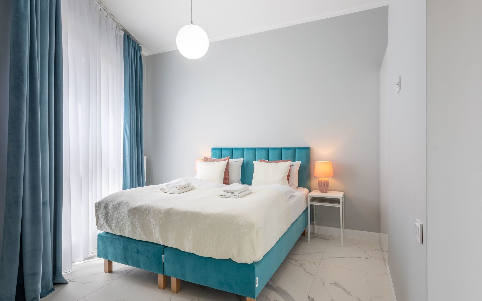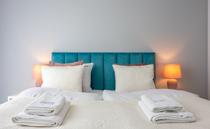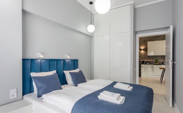 Es ist ein sehr geräumiges und luxuriöses Apartment mit zwei großen Schlafzimmern, Wohnzimmer mit gut ausgestatteten Küchenzeile und Badezimmer. Seine Gesamtfläche beträgt 70 m2. Die nutzbare Fläche wird durch den Balkon erweitert, wo Sie angenehme Momente bei einer Tasse frisch gebrühtem Kaffee oder einem Glas Ihres Lieblingsweins verbringen können.