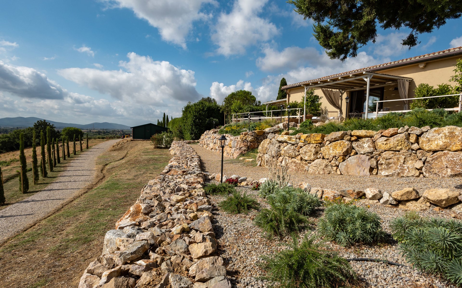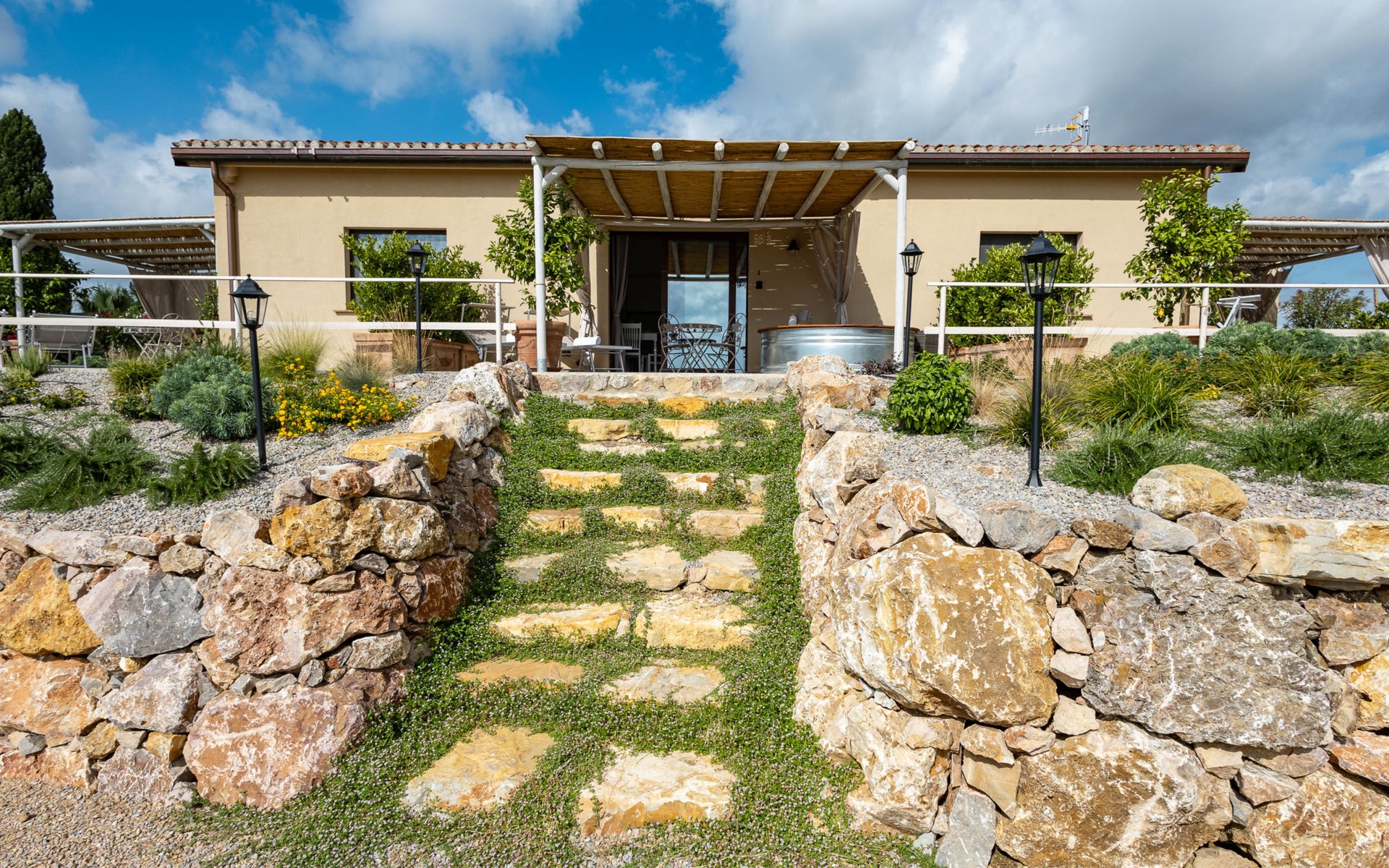 Moderner, schöner Agriturismo "Poggio Piero", renoviert im Jahre 2025, umgeben von Wiesen und Feldern. 4 Häuser im Ferienresort. 4 km vom Zentrum von Ribolla, 5 km vom Zentrum von Montemassi, ruhige, sonnige Lage auf einem Hügel, 30 km vom Meer, 30 km vom Strand, im Grünen. Zur Mitbenutzung: Park (eingezäunt). Zur Alleinbenutzung: Aufstellpool rund (1,5 m Durchmesser, 60 cm tief, saisonale Verfügbarkeit: 01.Mai. - 15.Okt.). Gartenmöbel, Poolpflege durch den Besitzer/Gärtner. Frühstück möglich auf Anfrage (extra). Parkplatz auf dem Grundstück. Lebensmittelgeschäft 4 km, Supermarkt 4 km, Restaurant 4 km, Bar 4 km, Bushaltestelle 1.5 km. Bitte beachten: Fahrzeug empfohlen. Der Besitzer wohnt auf dem gleichen Grundstück.