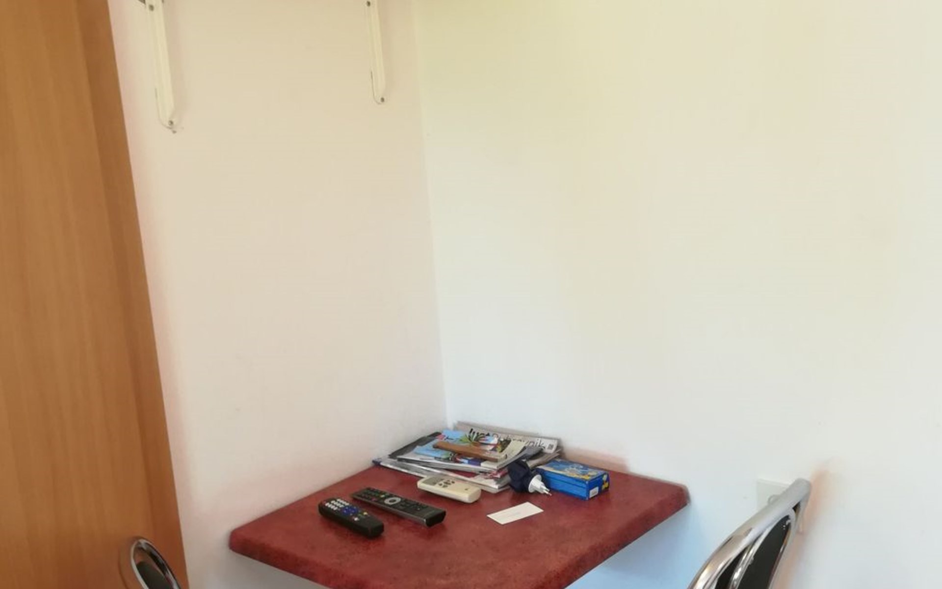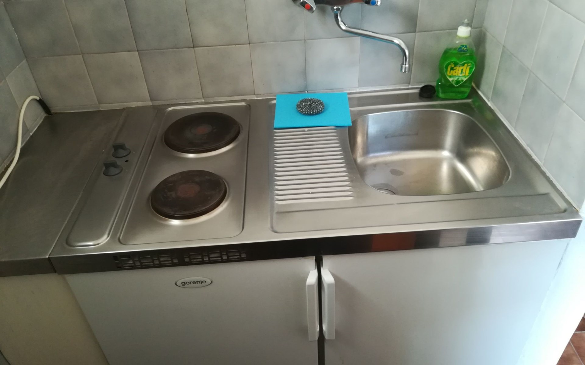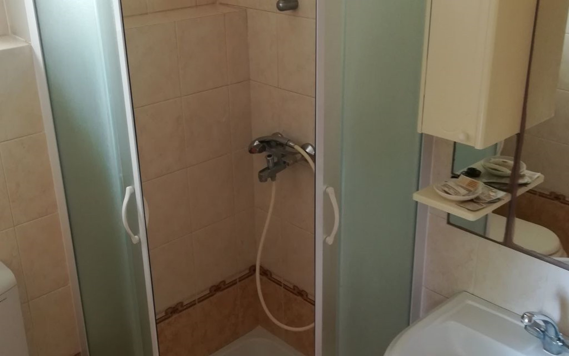 Das Studio besteht aus 1/3 Zimmer (Doppelbett + Einzelbett), Bad (Dusche, Toilette) und Kochnische. Es hat einen eigenen Eingang im Erdgeschoss unseres Familienhauses aus Stein.
