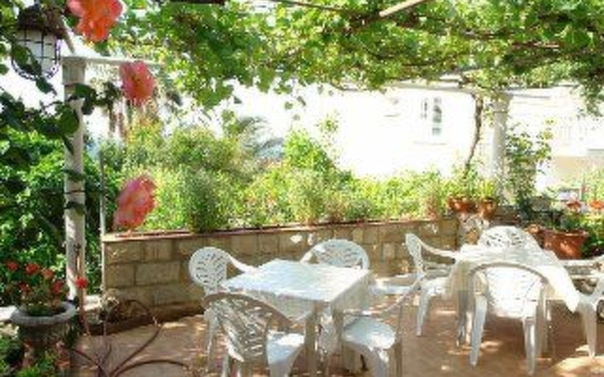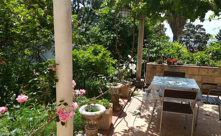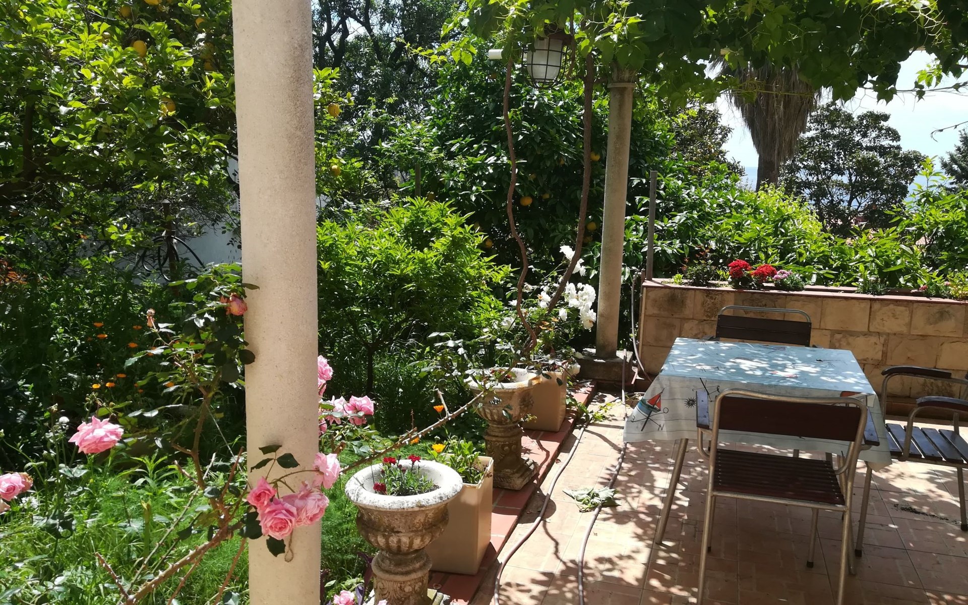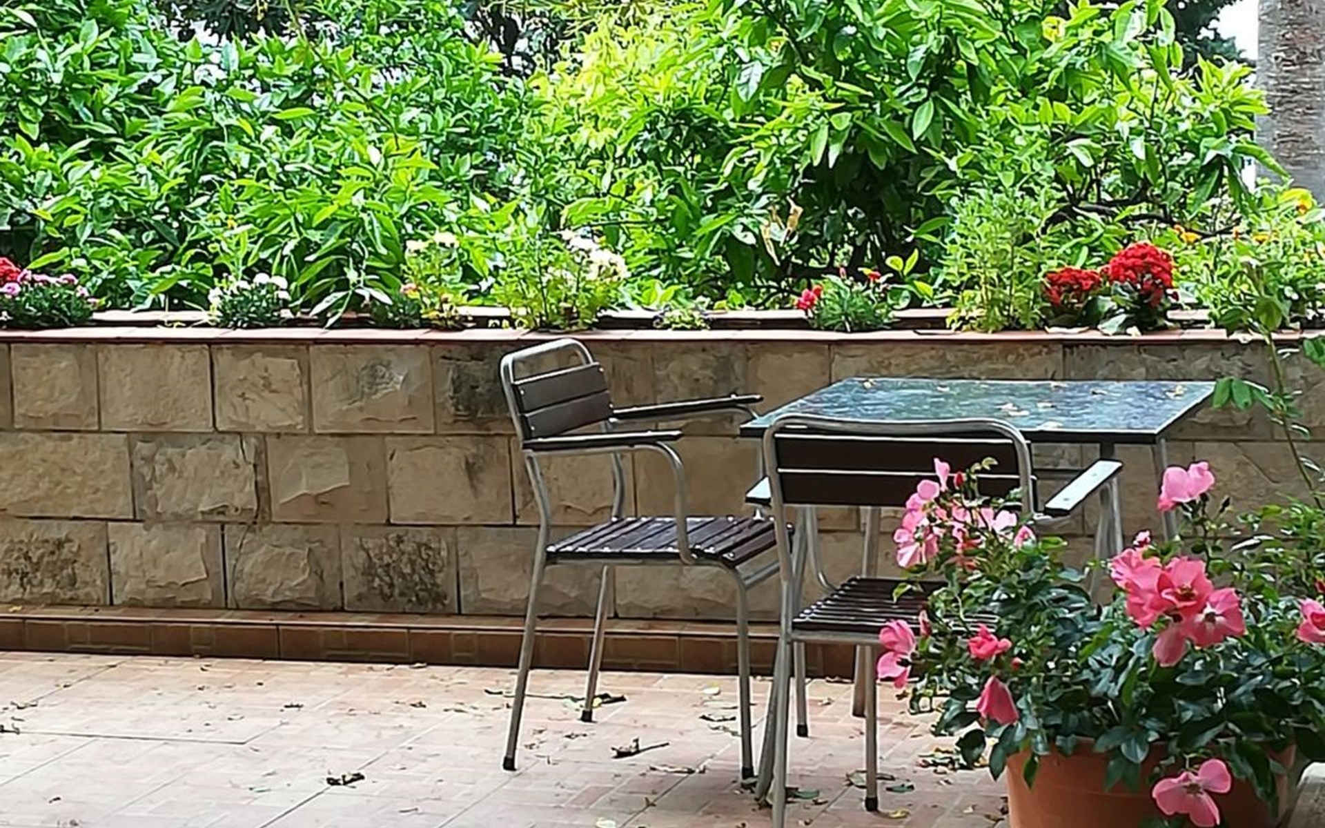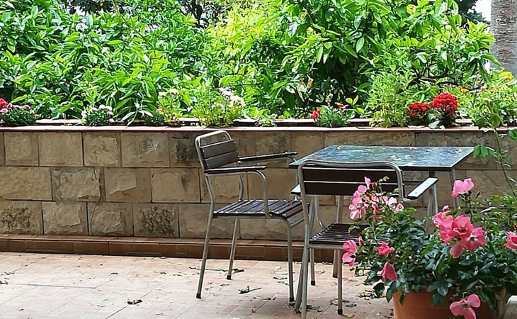 Vor dem Studio-Apartment gibt es eine private Terrasse im Garten zur alleinigen Nutzung, mit Tischen und Stühlen für Mahlzeiten im Freien und wo das Rauchen erlaubt ist.