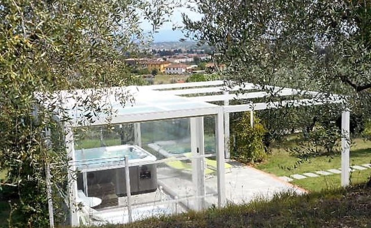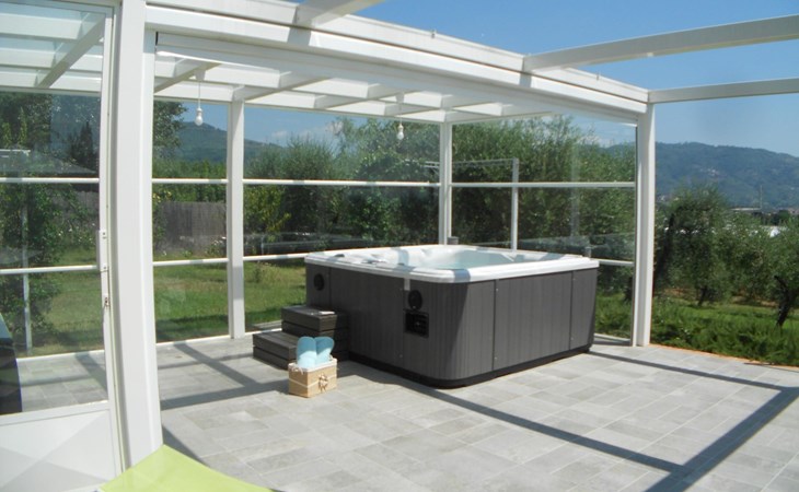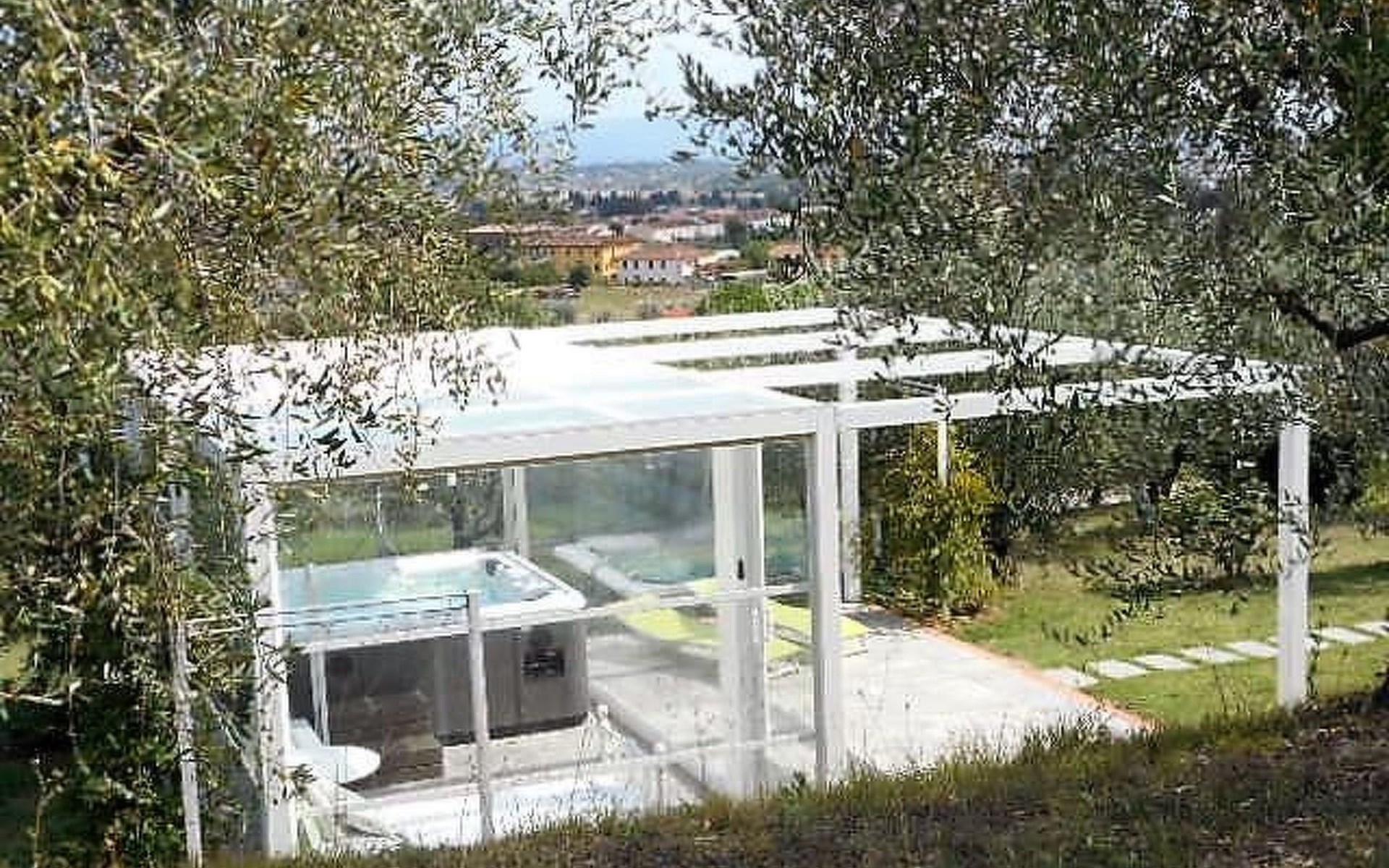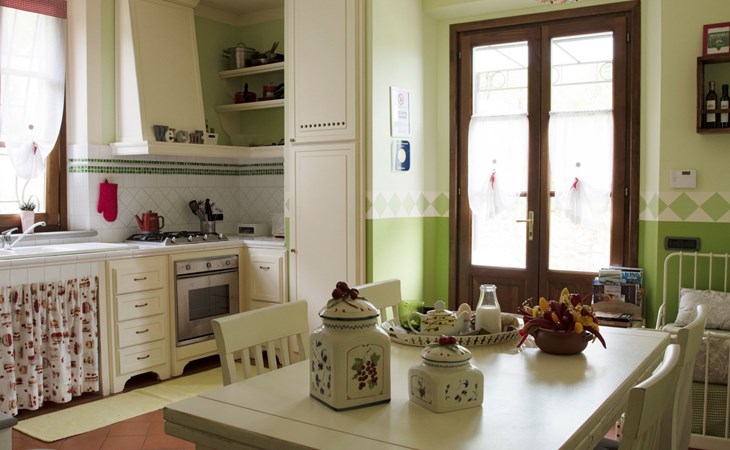 Die Wohnung, ausgestattet mit Farbfernseher, besteht im Erdgeschoss aus einer Wohnküche mit allem Zubehör und bietet folgende Geräte: Elektroherd, Ofen, Kühlschrank mit Gefrierfach, Waschmaschine. Im ersten Stock gibt es ein Badezimmer mit Waschbecken und Toilette mit Duschkabine, und zwei Schlafzimmer, ein Doppelzimmer und ein geräumiges Zweibettzimmer. Der Wi-Fi-Internetzugang ist kostenlos. Der Stromverbrauch für die Nutzung des Whirlpools wird durch das Ablesen des autonomen Zählers angegeben und ist vor Ort zu bezahlen. Im Sommer werden die Stromkosten für die Klimaanlagen der Wohnung durch den autonomen Zählerstand angegeben und sind vor Ort zu bezahlen. Im Winter wird der Gasverbrauch für die Heizung durch den vor Ort zu zahlenden Zählerstand ermittelt. Die Bettwäsche wird wöchentlich und die Handtücher jeden zweiten Tag gewechselt. Vorhandensein von Kohlenmonoxid- und Feuermeldern.