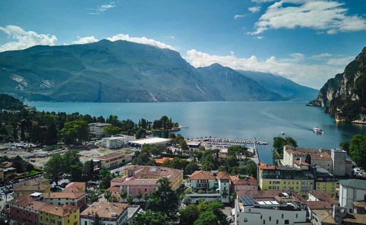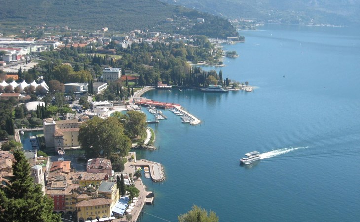 Riva del Garda ist eine bezaubernde Stadt am Nordufer des Gardasees, ideal sowohl für einen erholsamen Urlaub dank des schönen, breiten Strandes, der Seepromenaden, der Wälder und der nahen Berge, als auch für einen vielseitigen Urlaub mit Segeln, Windsurfen, Klettern und Radfahren.