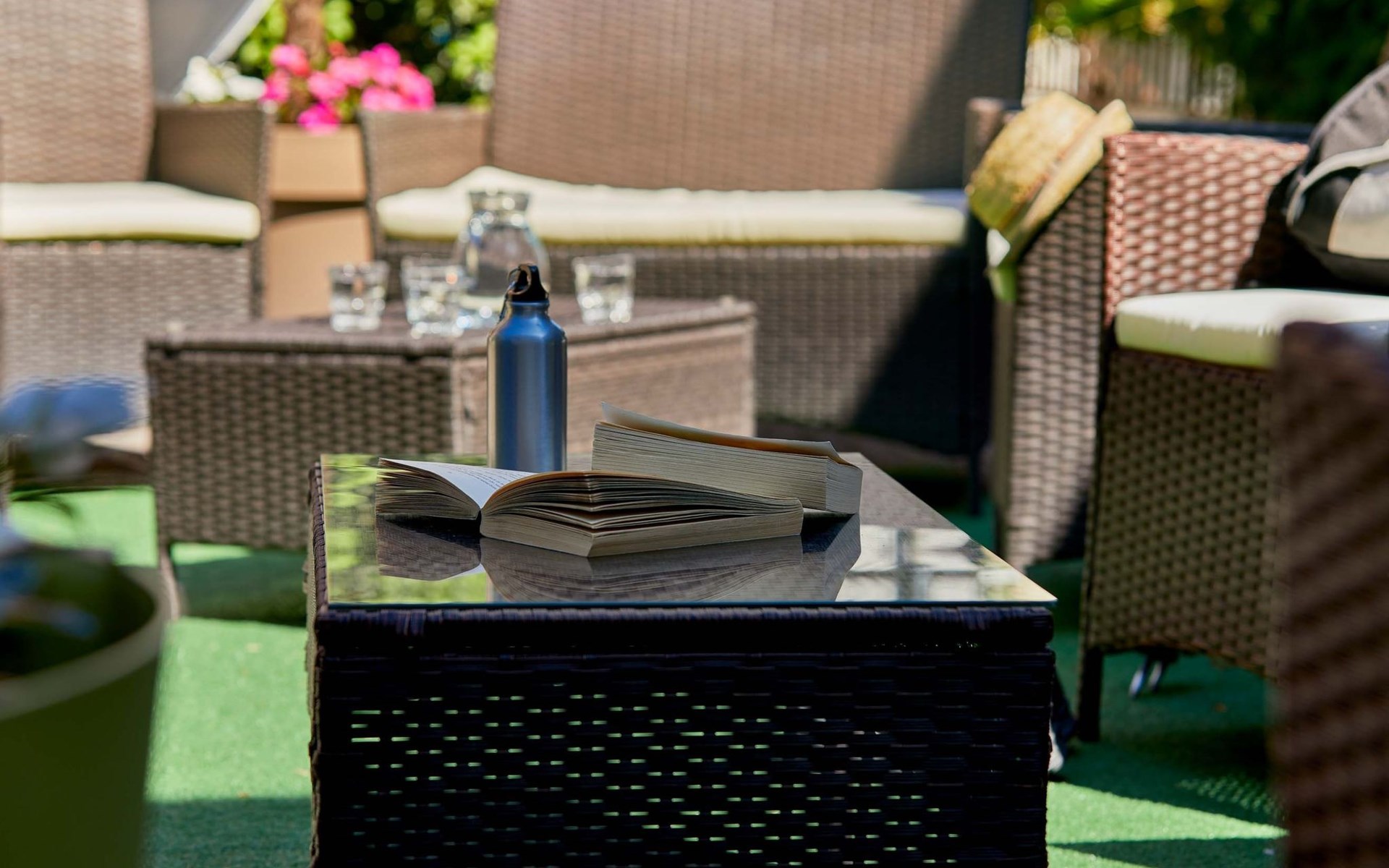 Sie wollen Ruhe und Frieden? Unsere große, möblierte Terrasse ist der ideale Ort, um zu entspannen und Ihre Kinder sicher spielen zu lassen. Genießen Sie sternenklare Abende oder sonnige Morgen an diesem friedlichen Ort.
