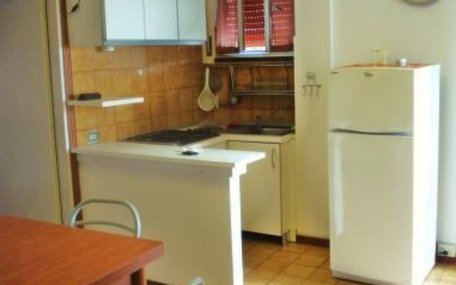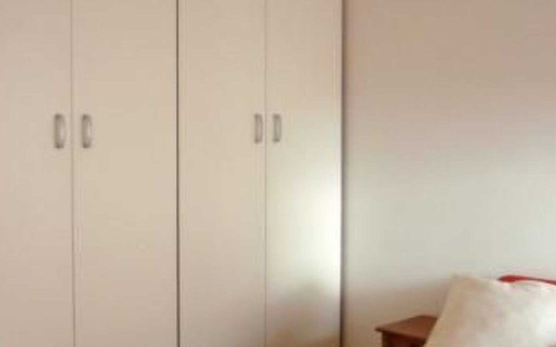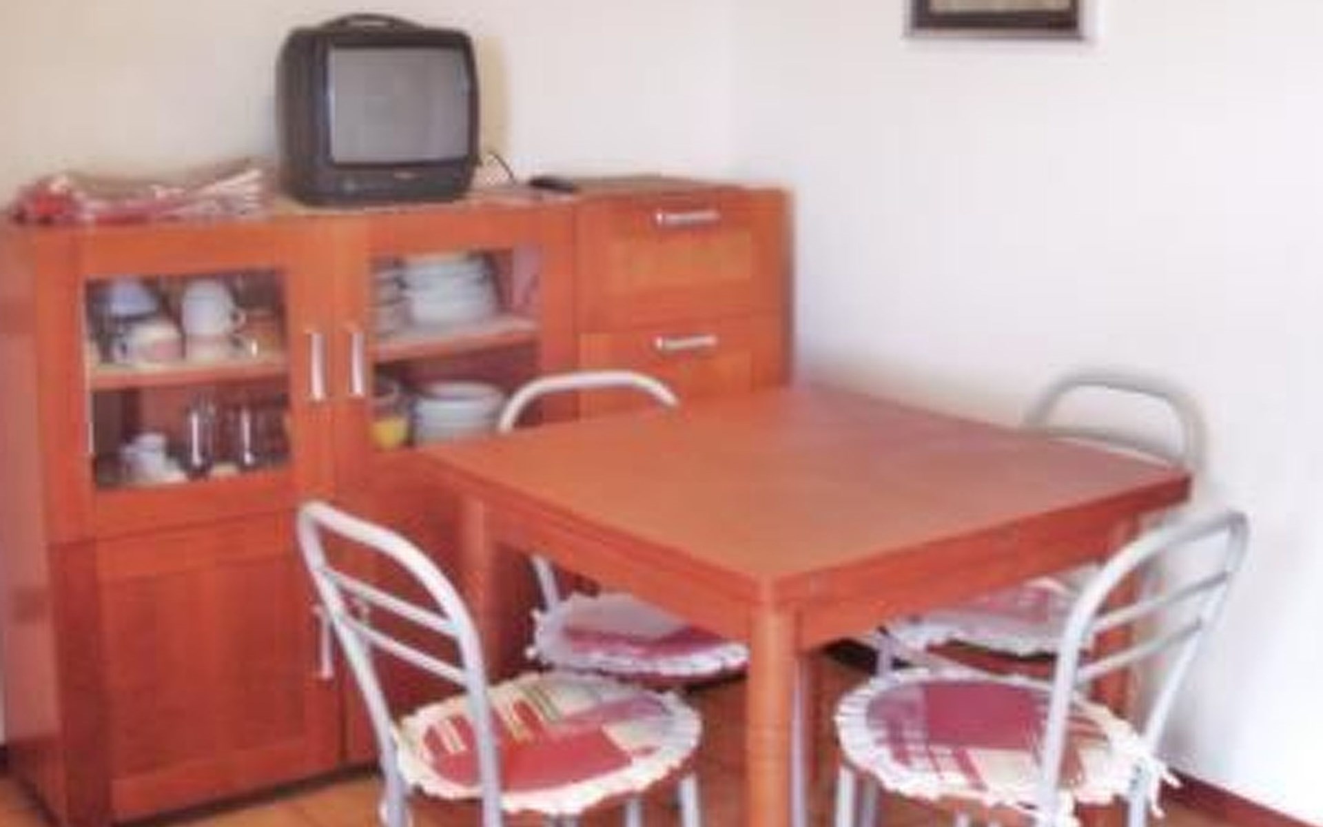 Das Gebäude hat 4 Etagen mit Aufzug. Die Einzimmerwohnung befindet sich auf einer Etage und besteht aus einem Wohnzimmer mit 2-sitzigem Schlafsofa, Kochnische, Kühlschrank, Tisch, Speisekammer und TV, einem Schlafzimmer mit Doppelbett, 4-türigem Kleiderschrank und Schuhregal, sowie einem Badezimmer mit 70x90 Eckdusche, WC, Spiegelschrank und Waschbecken. Eine Waschmaschine kann für 3,5 kg Wäsche genutzt werden. Die Küchenzeile ist mit einem kleinen Elektroherd und einer Mikrowelle, Tellern, Pfannen, Gläsern, Besteck und viel Küchenzubehör ausgestattet. Gasherd mit 4 Brennern. Klimaanlage für heiße Tage, der Verbrauch ist im Preis inbegriffen.