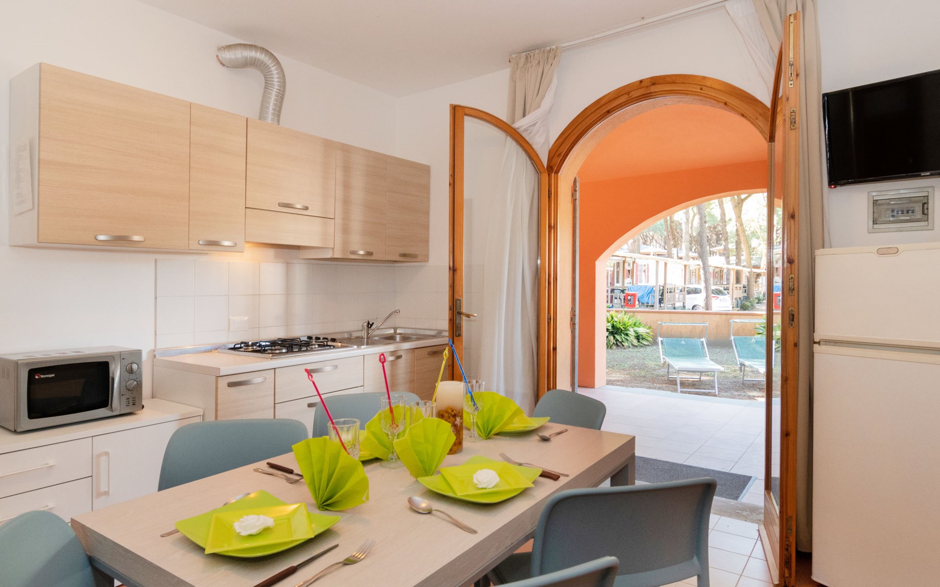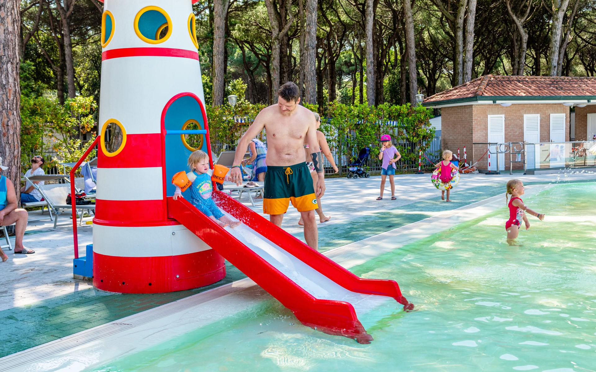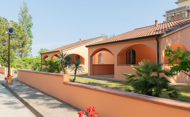 Lidi Ferraresi: Grosse, kinderfreundliche Ferienanlage "Mare e Pineta", umgeben von Bäumen. 500 m vom Zentrum von Lido di Spina, 1 km vom Zentrum von Lido degli Estensi, 500 m vom Meer, 500 m vom Strand, im Grünen. Zur Mitbenutzung: naturbelassenes Grundstück 16 ha mit Pflanzen und Bäumen, Schwimmbad (25 x 12 m, 140 cm tief, saisonale Verfügbarkeit: 16.Mai. - 20.Sep.). Kinderbecken, Rutschbahn, Aussendusche, Sprudelbad, Basketball, Boccia, Beachvolleyball. In der Anlage: Empfang, Restaurant, Bar, Wireless LAN, Sauna (extra). Fitnessraum (extra). Einkaufsmöglichkeit, Kiosk, Waschmaschine, Wäschetrockner (zur Mitbenutzung, extra), Fahrradverleih. Parkplatz (beschränkte Anzahl). E-Ladestation. Bushaltestelle 300 m, Bahnstation "Ravenna" 30 km, Park "Parco del Delta del Po" 46 km. Nahe gelegene Sehenswürdigkeiten: Comacchio 10 km, Abbazia di Pomposa 30 km, Ravenna 31 km, Mirabilandia 46 km, Ferrara 60 km. Bitte beachten: Animation in der Saison. Geeignet für Familien.