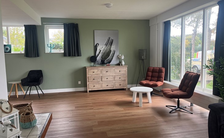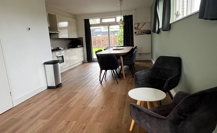 Die „Gruppenunterkunft 12“ steht für Komfort und Eleganz. Die moderne und geräumige Villa bietet Platz für bis zu 12 Personen. Im Wohnzimmer befindet sich eine gemütliche Sitzecke und ein Fernseher. Die elegante Küche ist offengehalten und mit einem Geschirrspüler, einem Kühl-/Gefrierschrank, einem Backofen, einer Mikrowelle und eine Kaffeemaschine ausgestattet. Insgesamt befinden sich 5 komfortable Schlafzimmer in der Villa: 2 Schlafzimmer im Erdgeschoss und 3 Schlafzimmer im Obergeschoss. Alle Schlafzimmer haben 2 bequeme Einzelbetten und in 1 Schlafzimmer gibt es auch ein Etagenbett. Sowohl im Erdgeschoss als auch im Obergeschoss befindet sich je ein Badezimmer und im Erdgeschoss steht eine separate Toilette zur Verfügung. Die Villa verfügt über 1 Balkon und 1 Terrasse mit Gartenmöbeln. Zwei Autos können vor der Villa parken; darüber hinaus ist das WLAN kostenlos verfügbar.