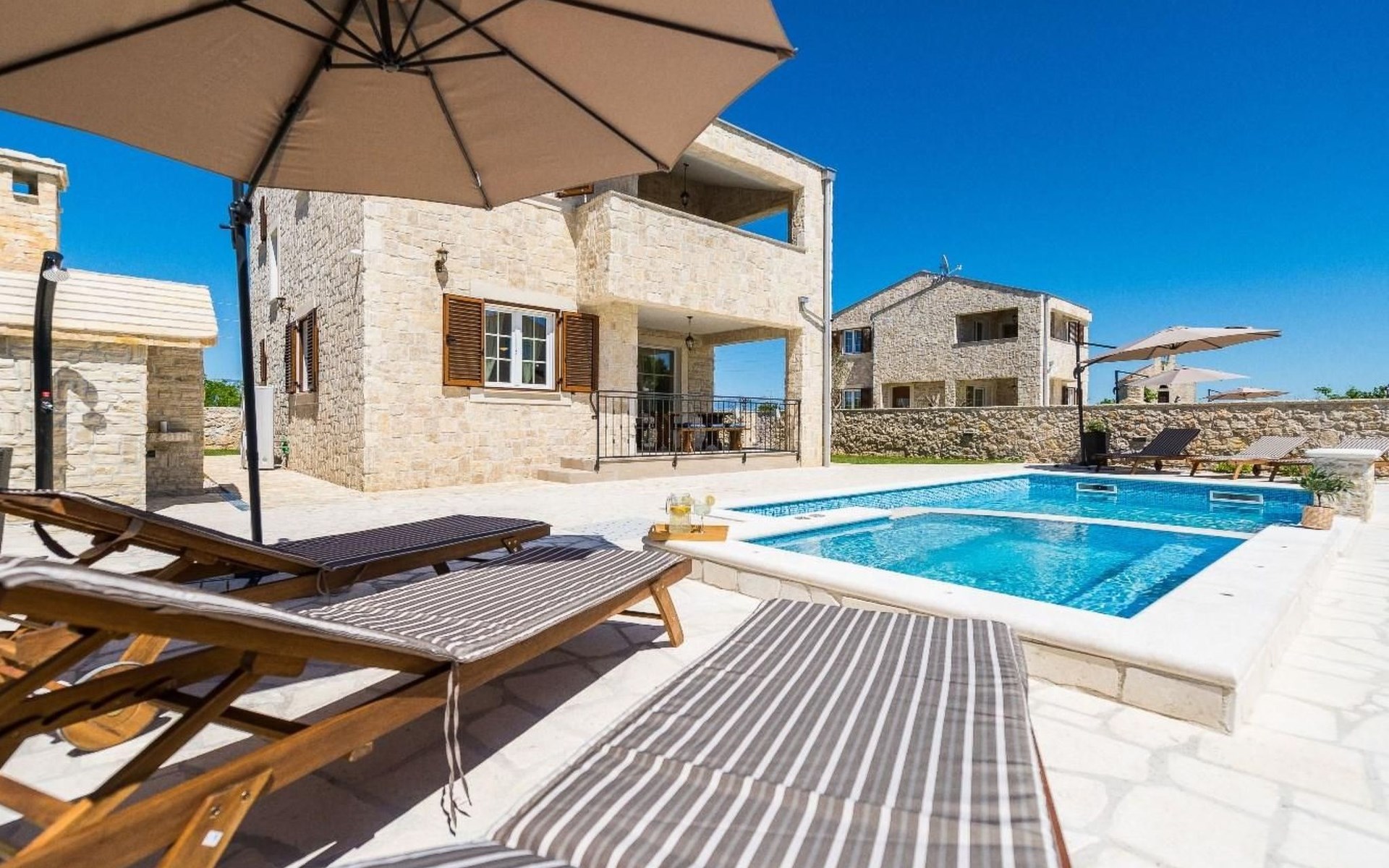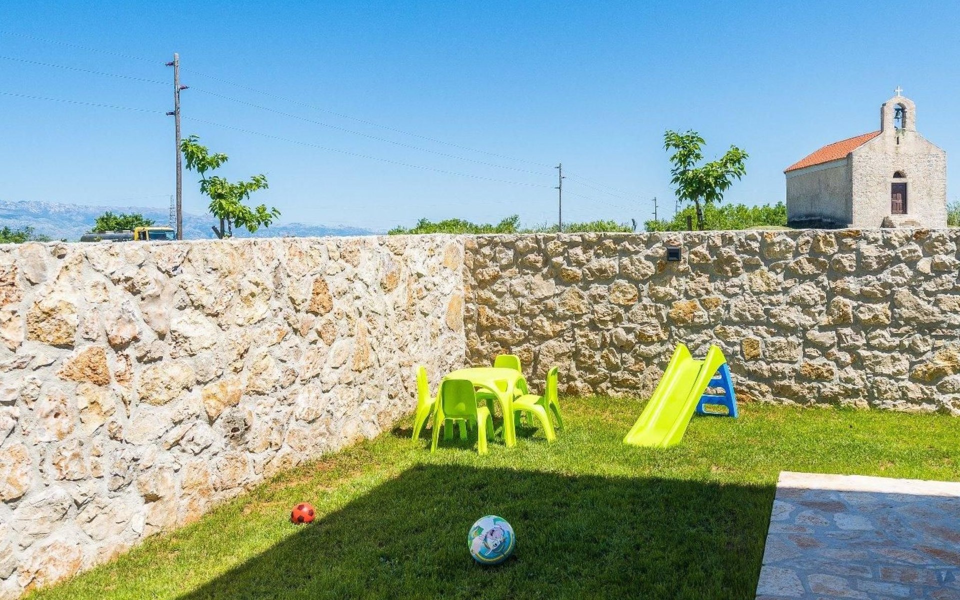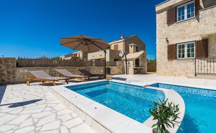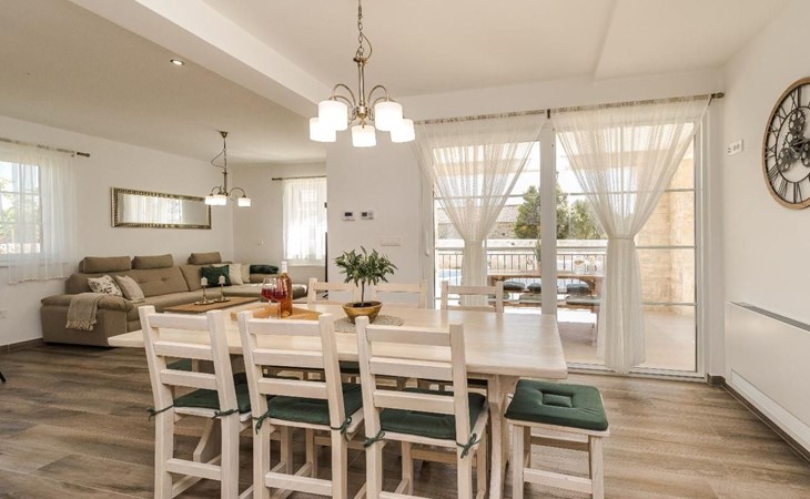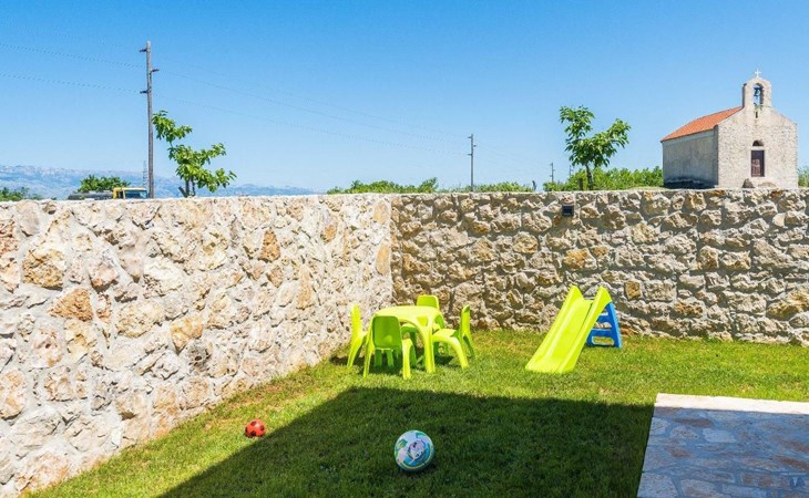 The surrounding area provides a 35 m2 sized swimming pool. Guests can enjoy the sun on the deck by the pool while the children play on the playground. If guests want to have fun, a darts is at their disposal. Pets are available on request. Beautiful villa Karin is the perfect choice for those who want to feel Dalmatia at its best and explore its rural nature.