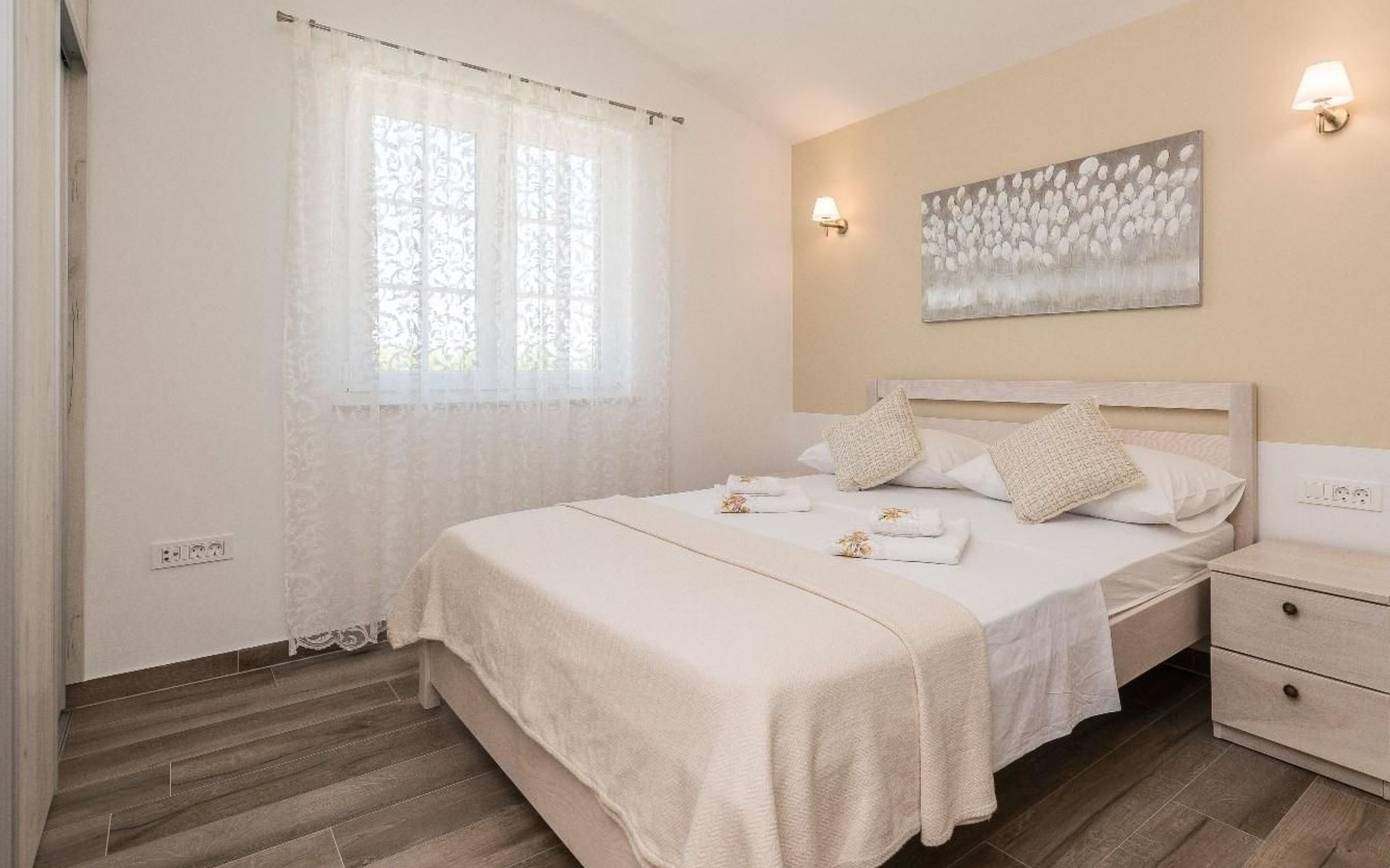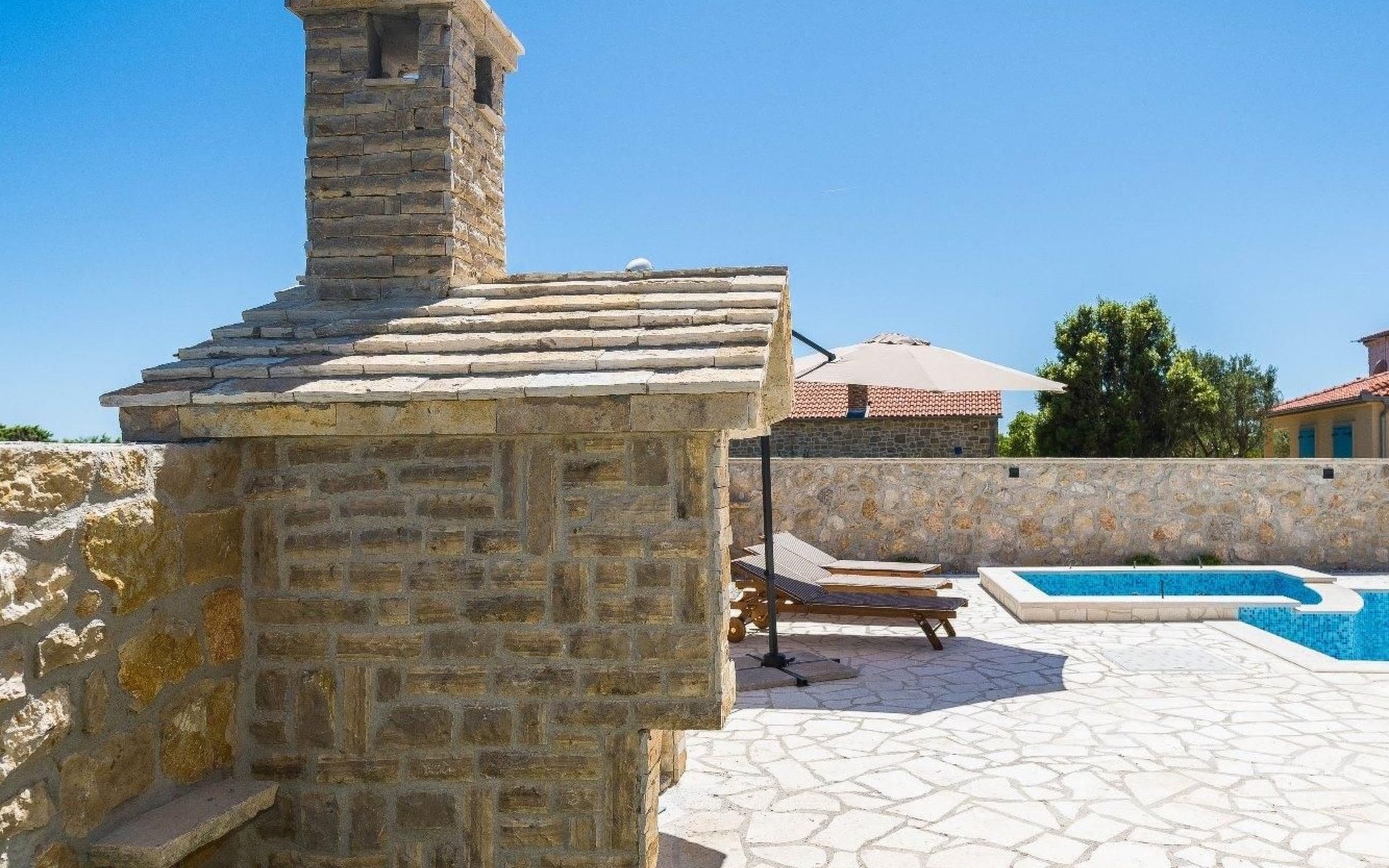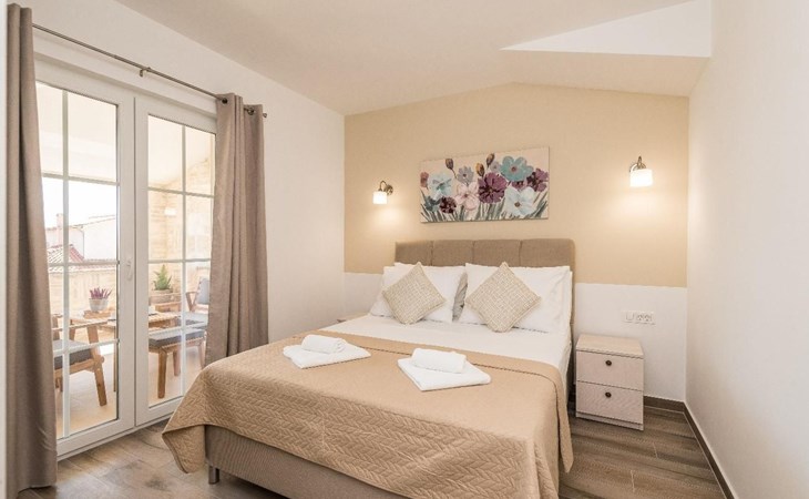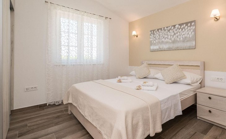 It is built in a traditional style; every part is designed with passion, love and attention to details. In this yard of 460 square meters, this newly restored stone villa consists of 3 lovely bedrooms and it can accommodate up to 7 guests. A baby cot is also available. It consists of a beautifully designed living room with a sofa bed for one guest and two bathrooms.