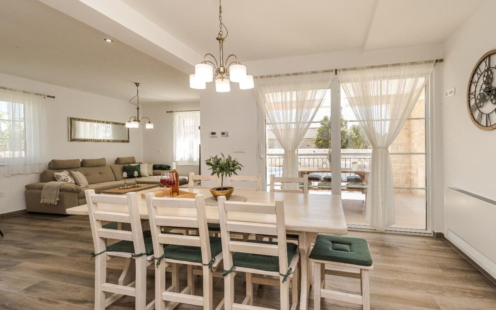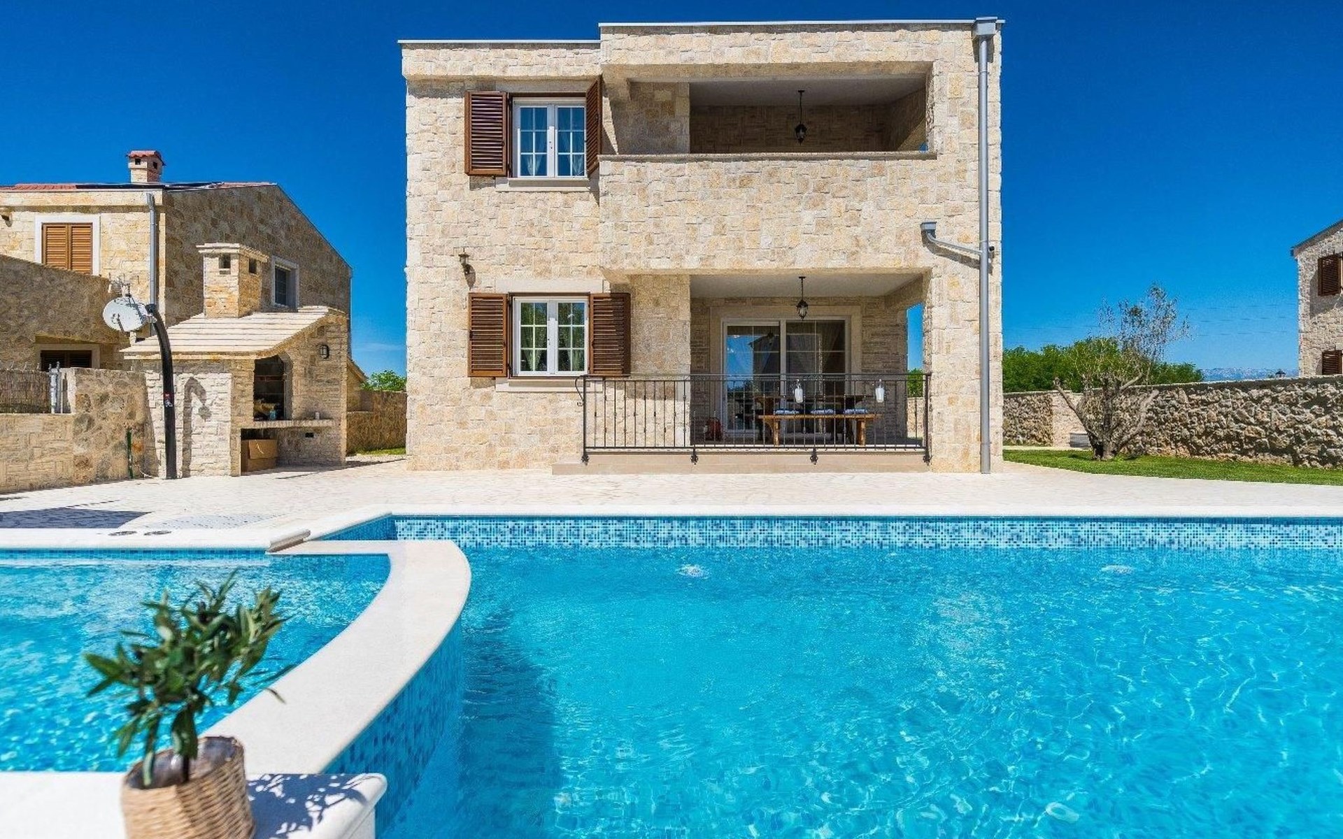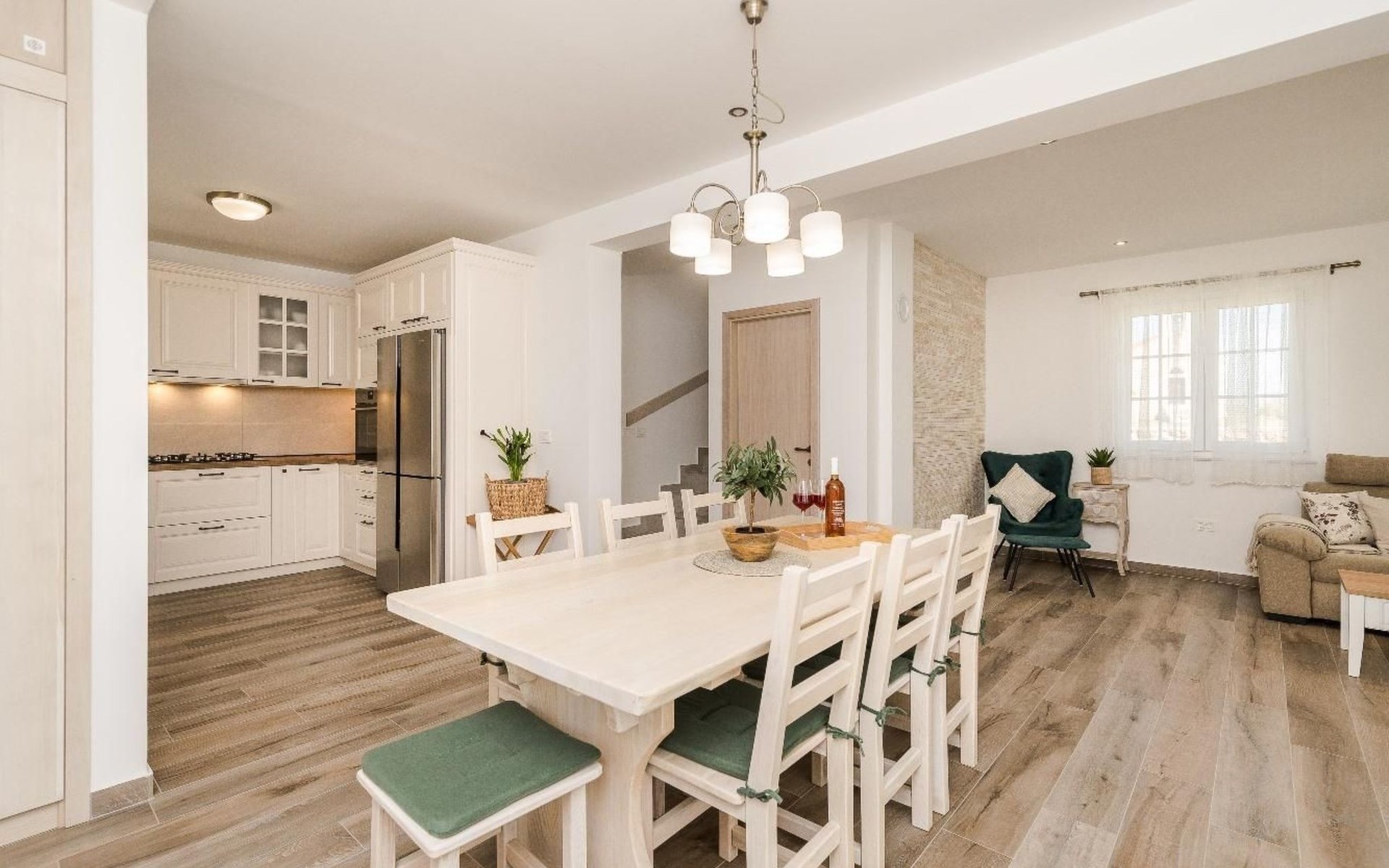 It is built in a traditional style; every part is designed with passion, love and attention to details. In this yard of 460 square meters, this newly restored stone villa consists of 3 lovely bedrooms and it can accommodate up to 7 guests. A baby cot is also available. It consists of a beautifully designed living room with a sofa bed for one guest and two bathrooms.
