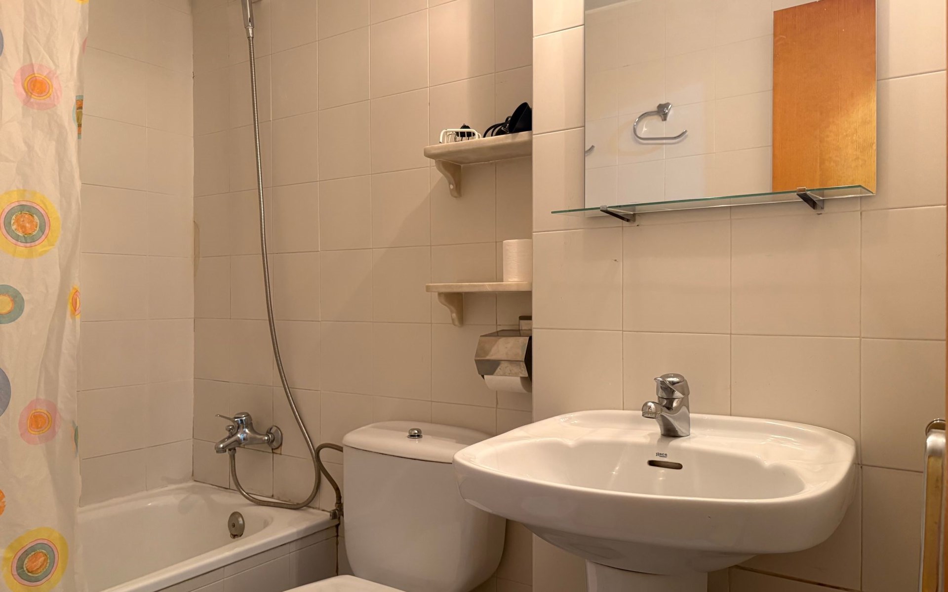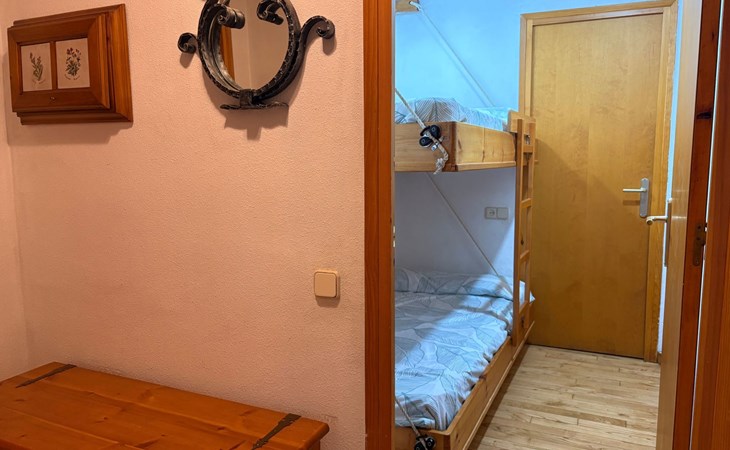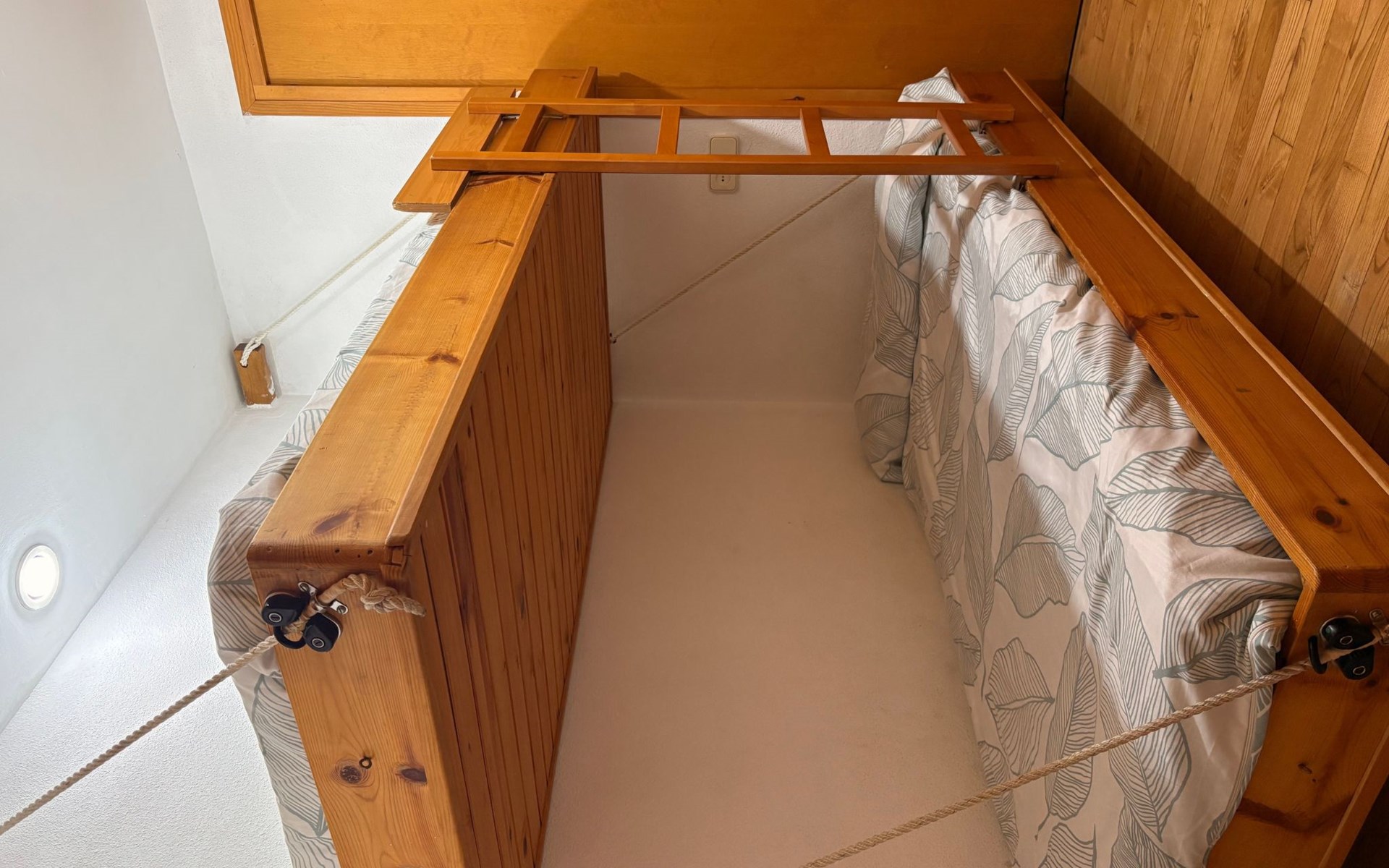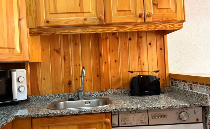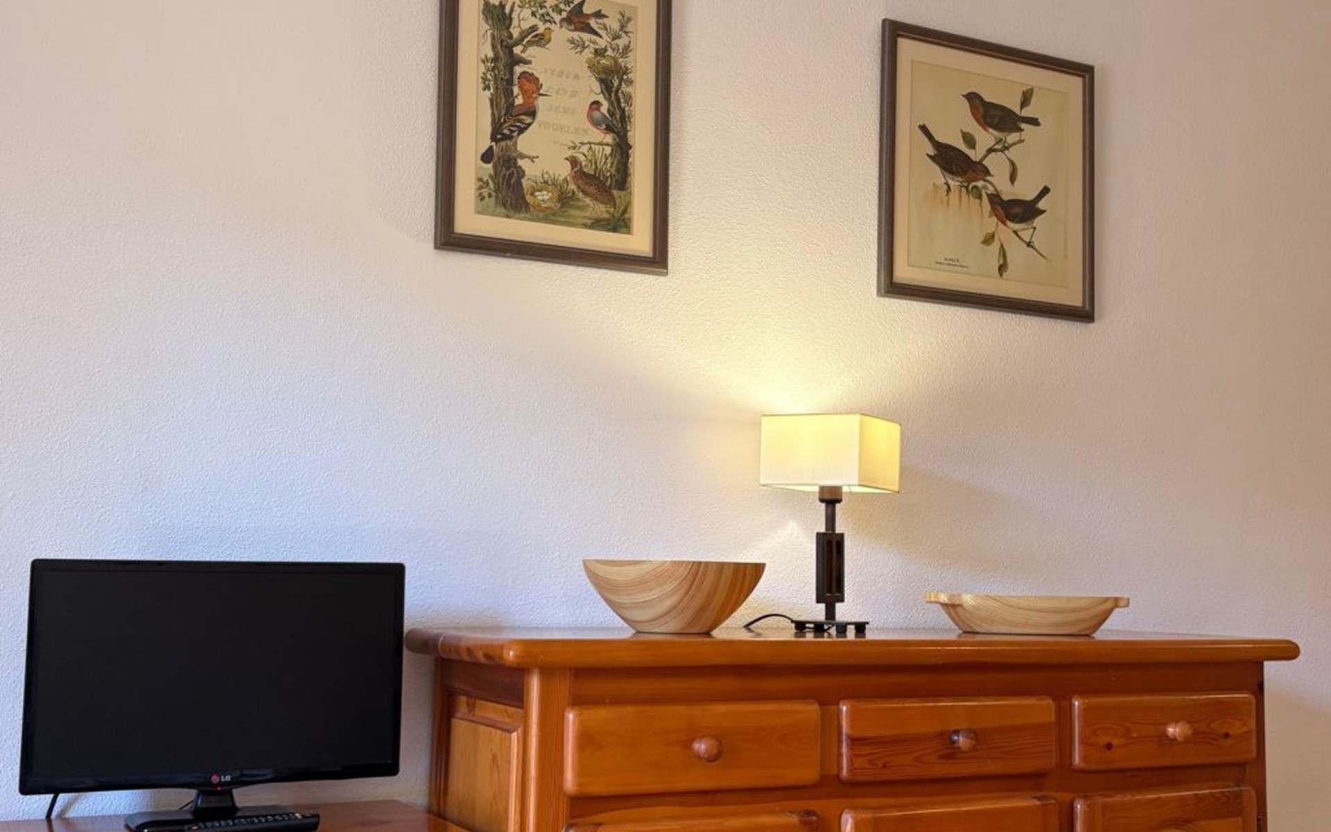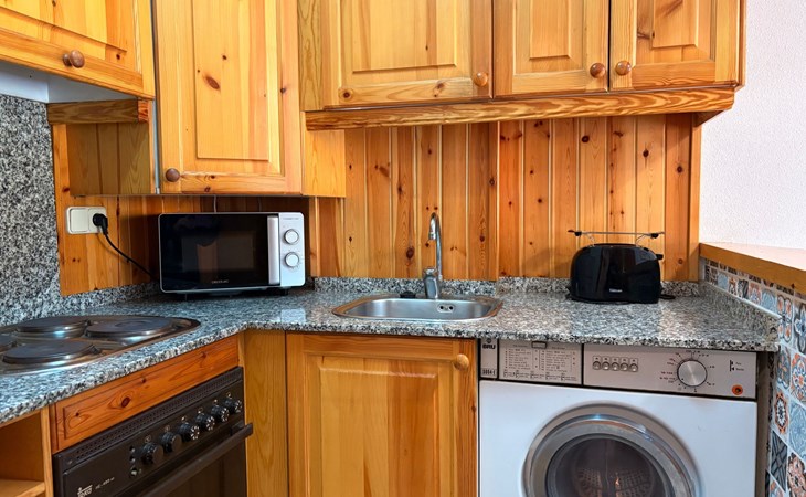 Im Inneren verbindet die Wohnung Funktionalität und Komfort, um einen angenehmen Aufenthalt zu gewährleisten. Sie besteht aus einem Schlafzimmer mit Doppelbett, das eine erholsame Nachtruhe verspricht. Darüber hinaus bietet ein ausklappbares Etagenbett im Flur zusätzlichen Platz zum Ausruhen. Die Küche, das Herzstück der Wohnung, ist mit einem Cerankochfeld und allen notwendigen Utensilien ausgestattet und wird durch ein Reinigungsset ergänzt. Die Waschmaschine zur alleinigen Nutzung ist ein weiterer Vorteil, der Ihren Aufenthalt erleichtert und es Ihnen ermöglicht, leicht und sorglos zu reisen.