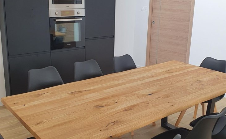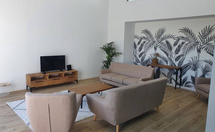 Das Haus ist ebenerdig und hat eine Fläche von 130 m². Es besteht aus folgenden Räumen: einem Wohnzimmer mit einem 102 cm Flachbildfernseher und zwei Dreisitzersofas sowie zwei Sesseln. Drei Schlafzimmer mit Doppelbett (160 cm) und ein viertes Schlafzimmer mit zwei Einzelbetten (90 cm); eine voll ausgestattete Küche mit Herd, Backofen, Mikrowelle, Kaffeemaschine, Essbereich für acht Personen sowie Kühlschrank und Geschirrspüler. Ein Badezimmer mit Dusche und Badewanne und ein weiteres mit Dusche und WC. Eine Waschküche mit Waschbecken, Waschmaschine und Trockner.