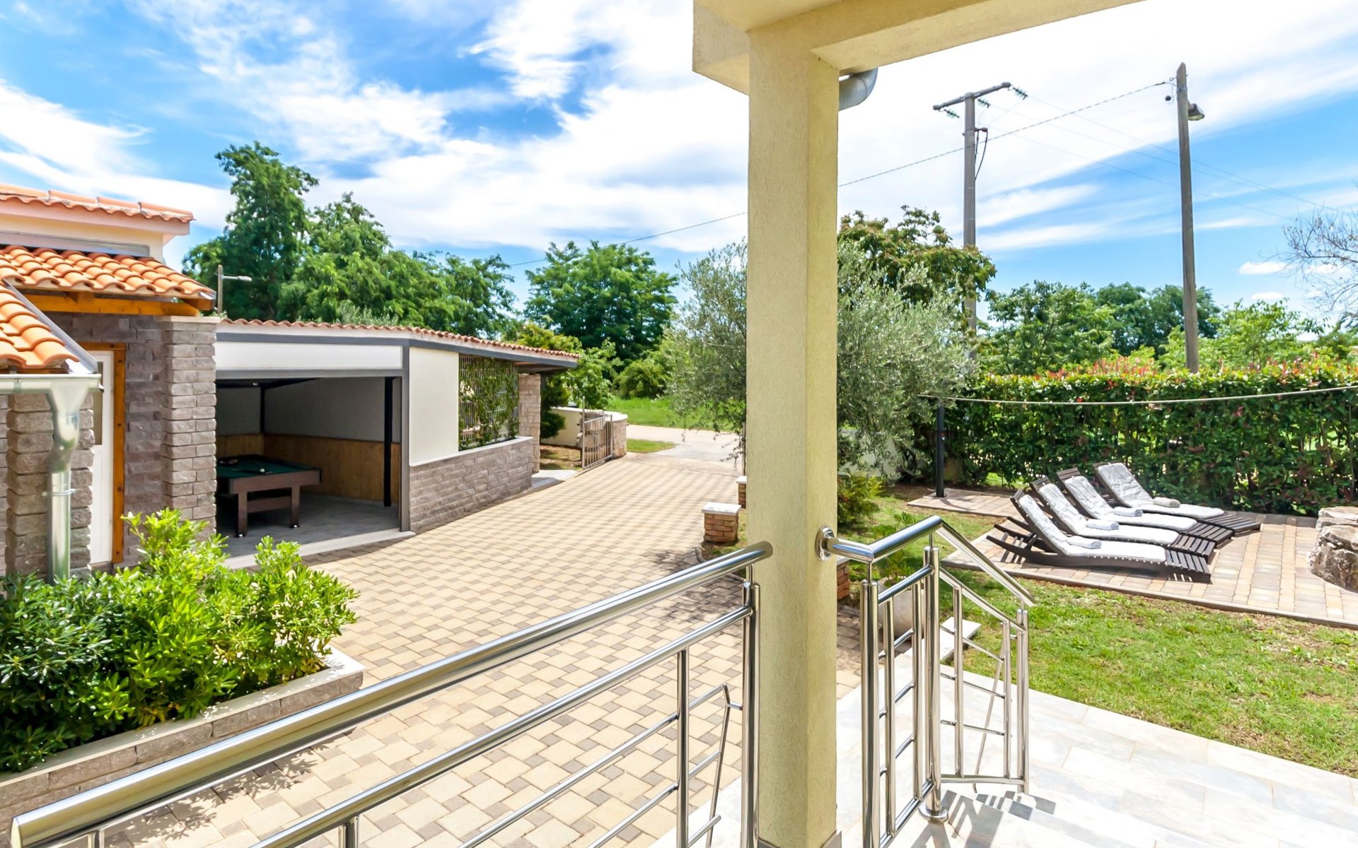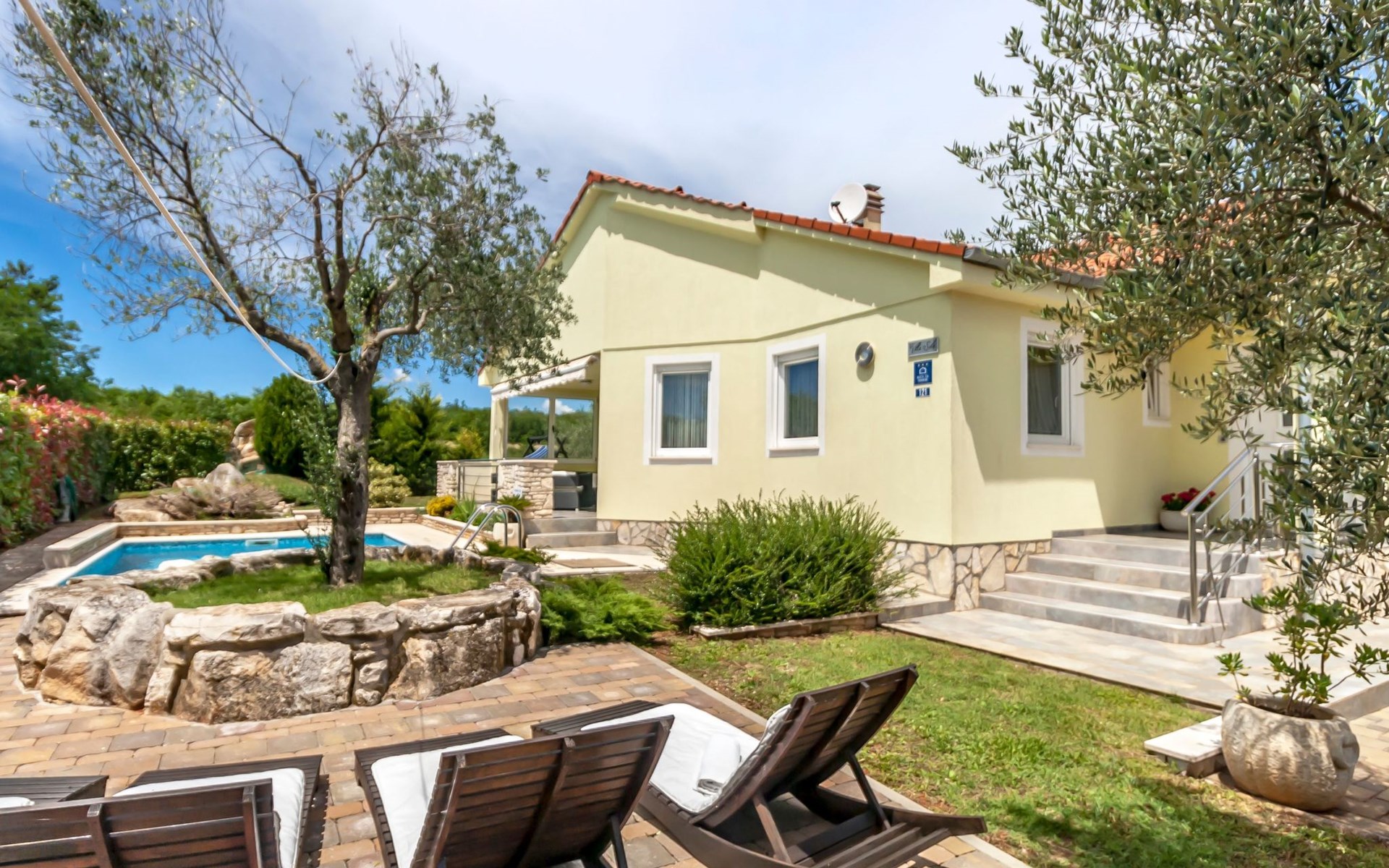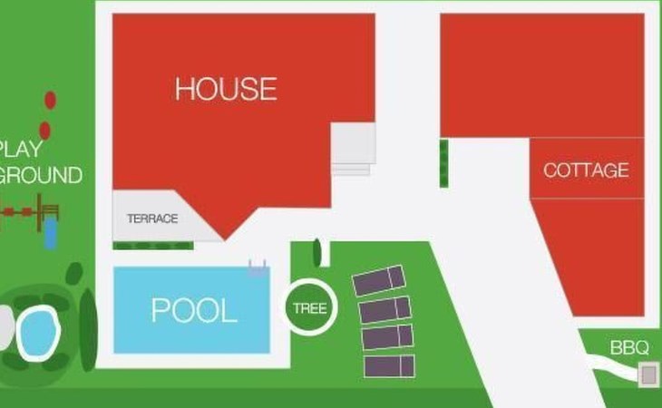 Das Anwesen besteht aus zwei Grundstücken: dem Grundstück, auf dem die Villa für die Feriengäste steht und einem zweiten Grundstück, auf dem der Besitzer des Hauses wohnt. Beide Grundstücke haben separate Zugänge, so dass die Gäste absolute Privatsphäre genießen, jedoch bei Bedarf den Besitzer ansprechen können.