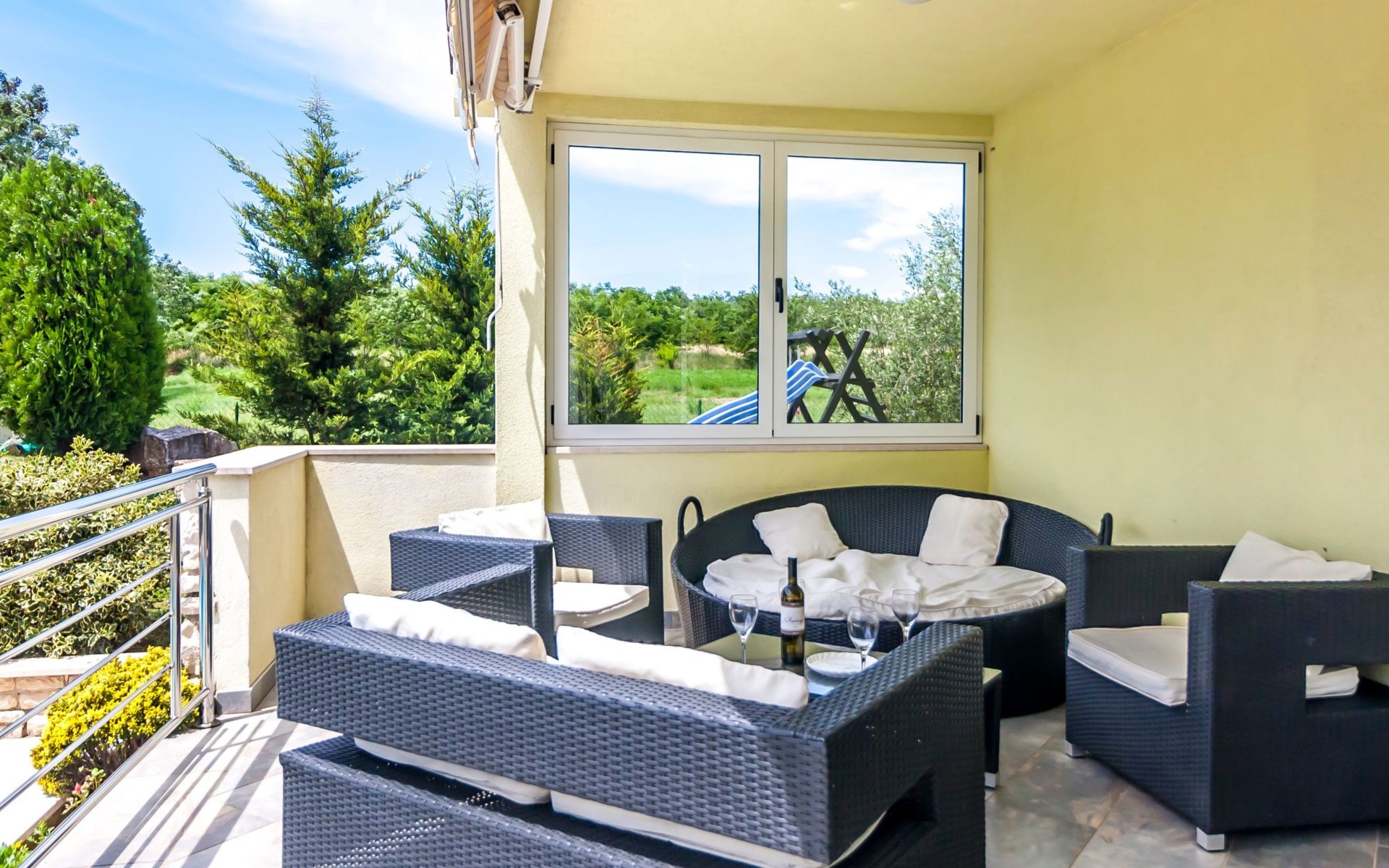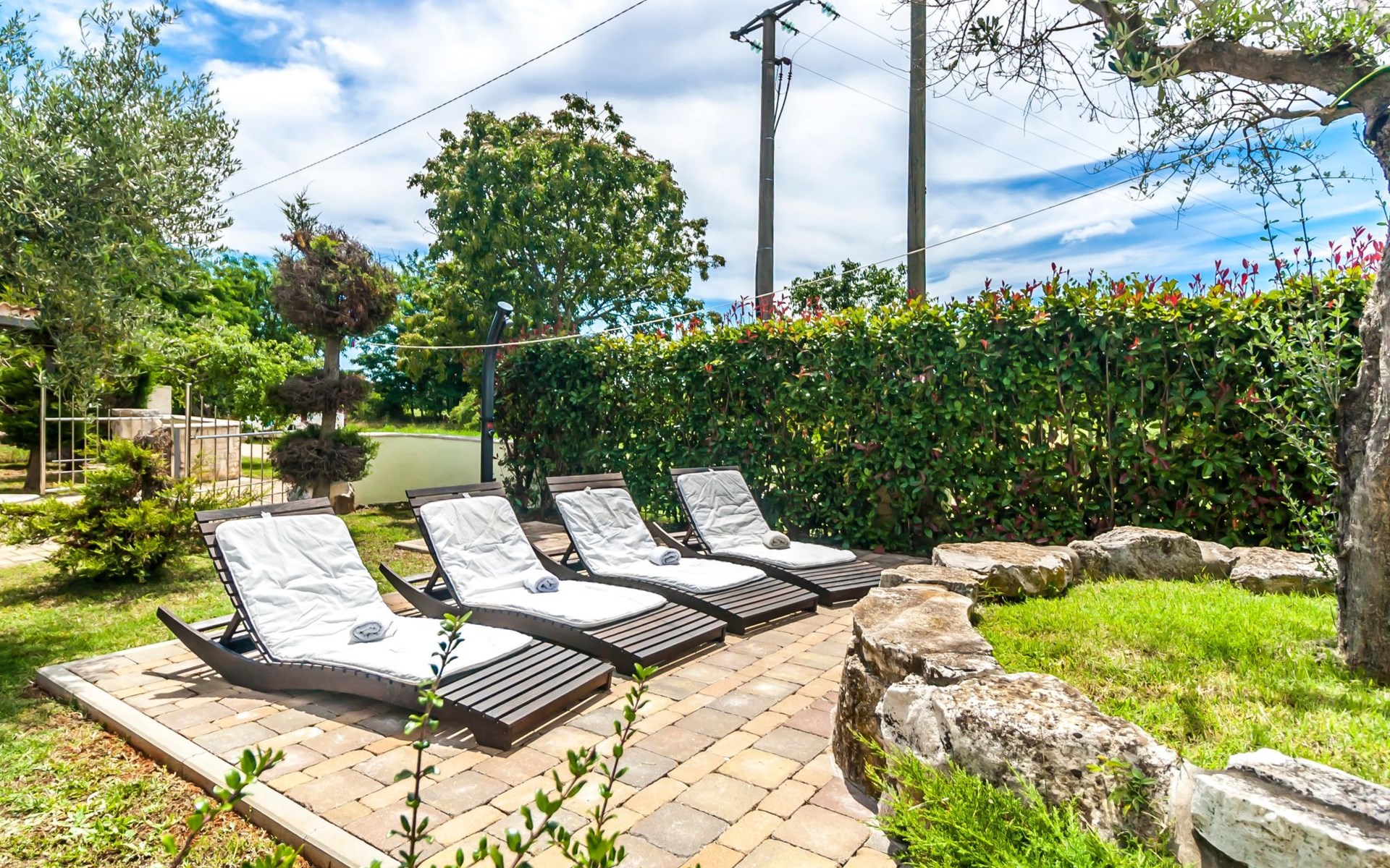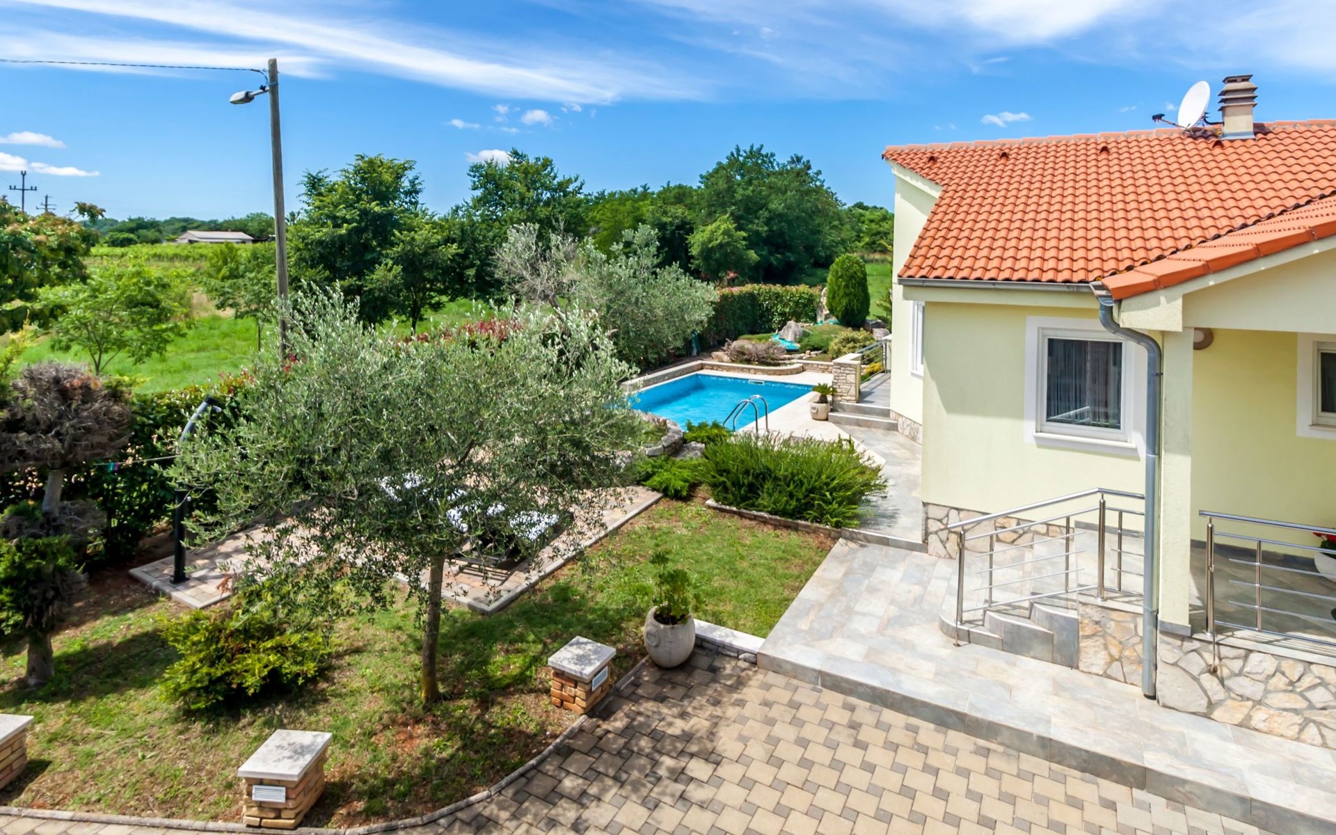 Das Anwesen besteht aus zwei Grundstücken: dem Grundstück, auf dem die Villa für die Feriengäste steht und einem zweiten Grundstück, auf dem der Besitzer des Hauses wohnt. Beide Grundstücke haben separate Zugänge, so dass die Gäste absolute Privatsphäre genießen, jedoch bei Bedarf den Besitzer ansprechen können.