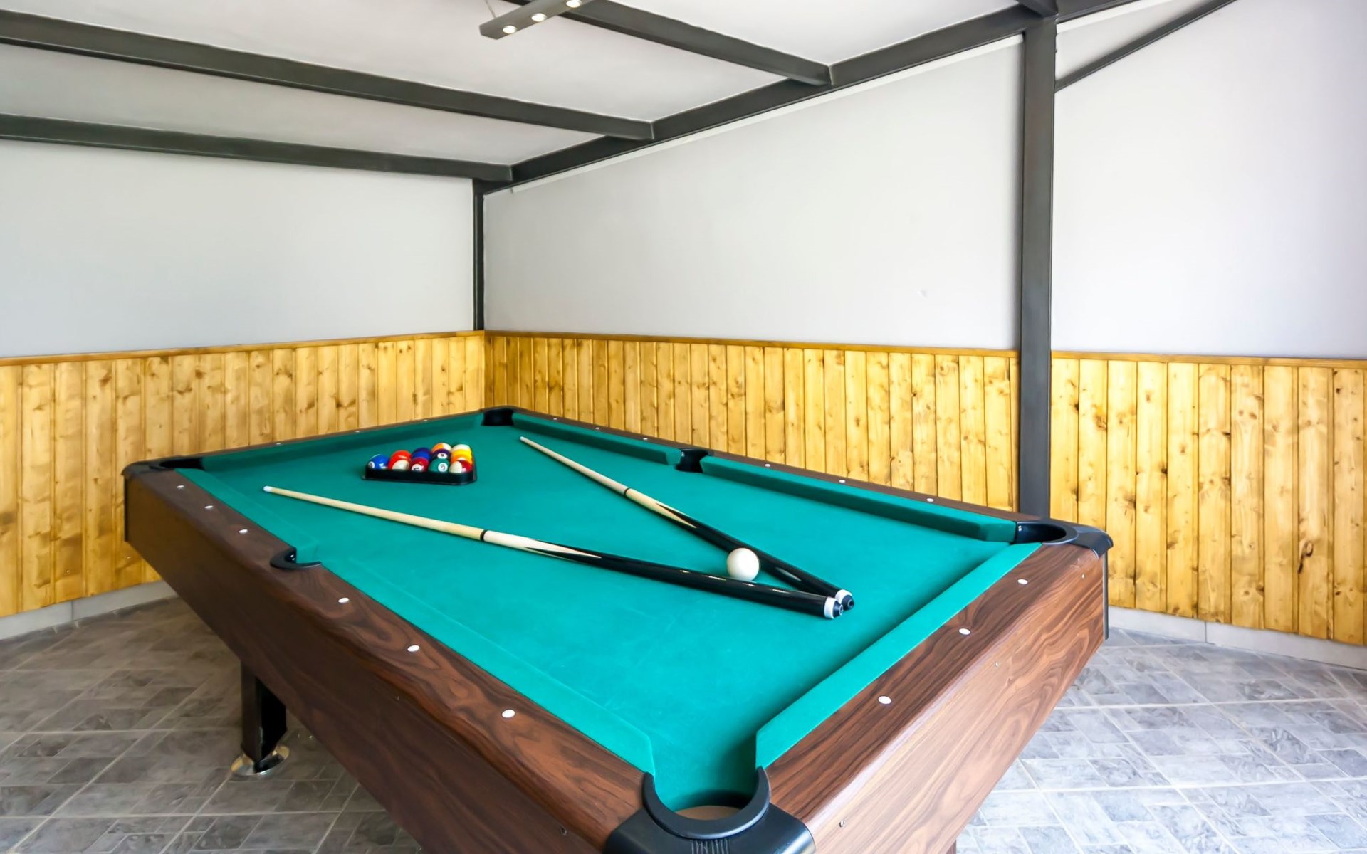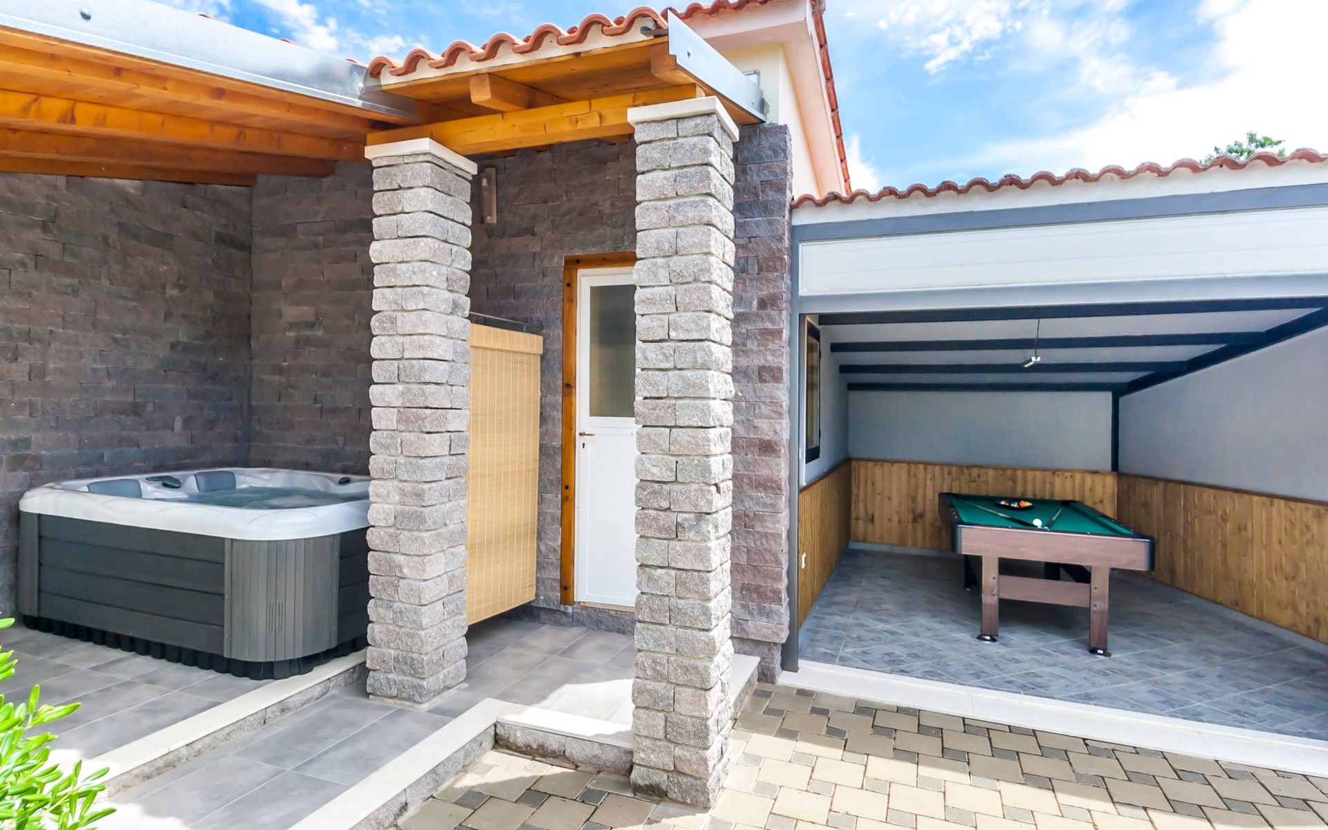 Ab 2020 gibt es einen Whirlpool im Garten von 1,6 x 2,2 m und einen neuen Raum für Spiele, einen Raum für Billard, Fußball und Darts.
