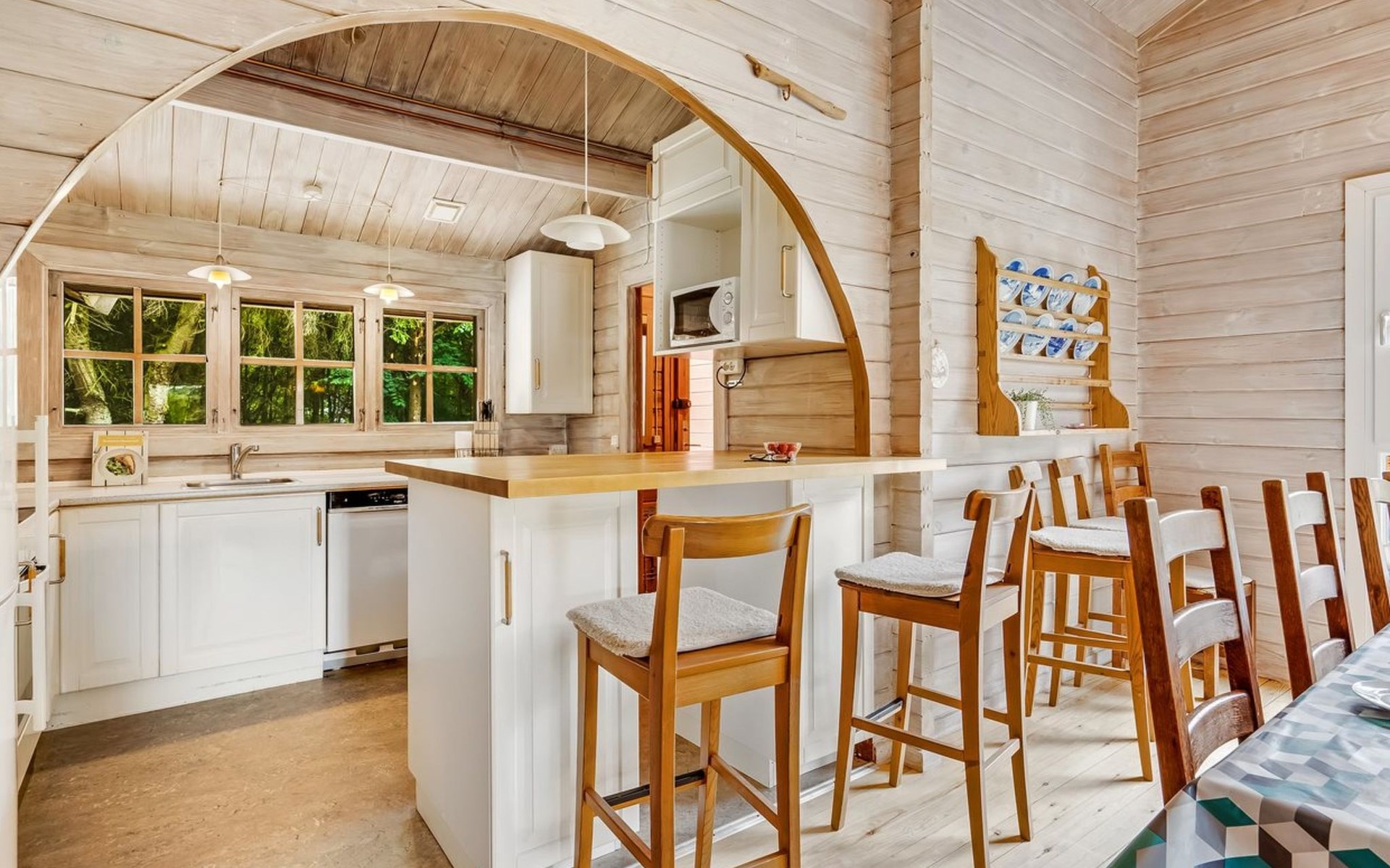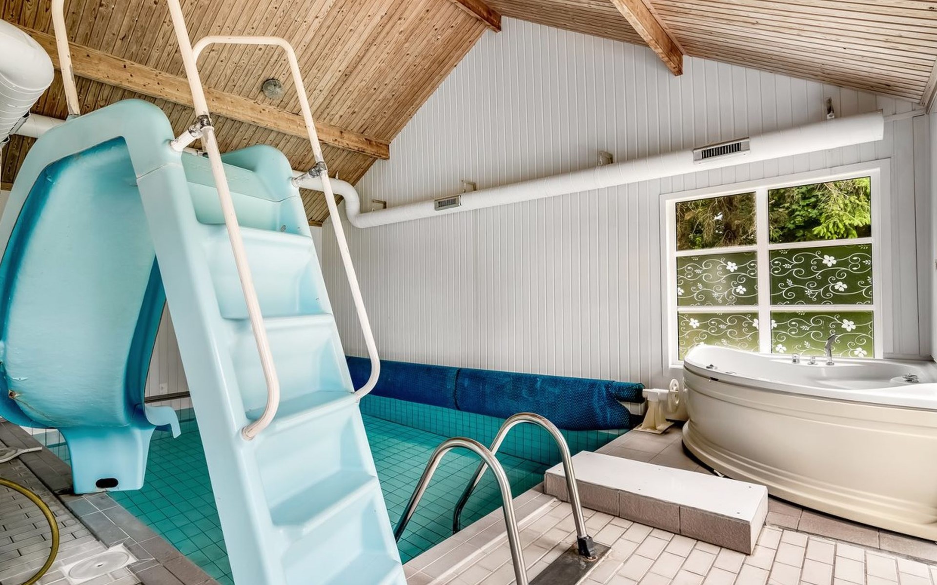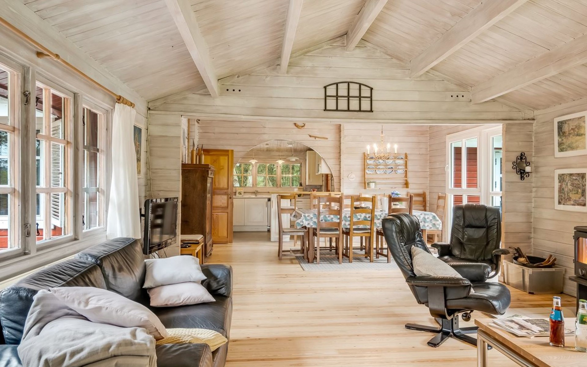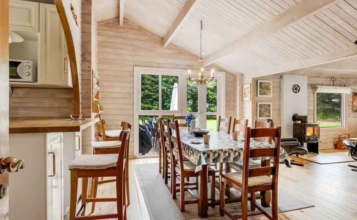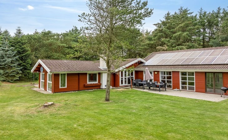 Einfamilienhaus, Baujahr 1974. 700 m vom Meer. Zur Alleinbenutzung: naturbelassenes Grundstück 5'000 m2, Hallenbad (3 x 5 m, 1'7.5 m2, 140 - 140 cm tief). Terrasse (60 m2), Grill, Kinderspielplatz (Schaukel). Im Hause: Sauna, Waschmaschine, Wäschetrockner. Parkplatz beim Haus. E-Ladestation. Lebensmittelgeschäft 700 m. Golfplatz 15 km. Der Besitzer akzeptiert keine Jugendgruppen.