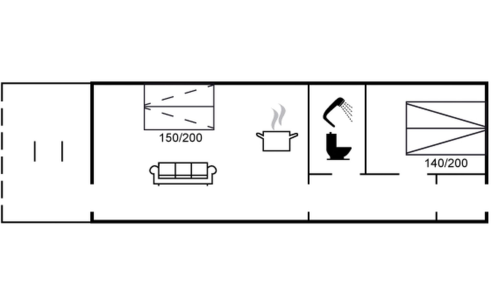 Ferienanlage, Baujahr 1974. 50 m vom Meer. Zur Mitbenutzung: Hallenbad. Lebensmittelgeschäft 1.6 km. Der Besitzer akzeptiert keine Jugendgruppen.