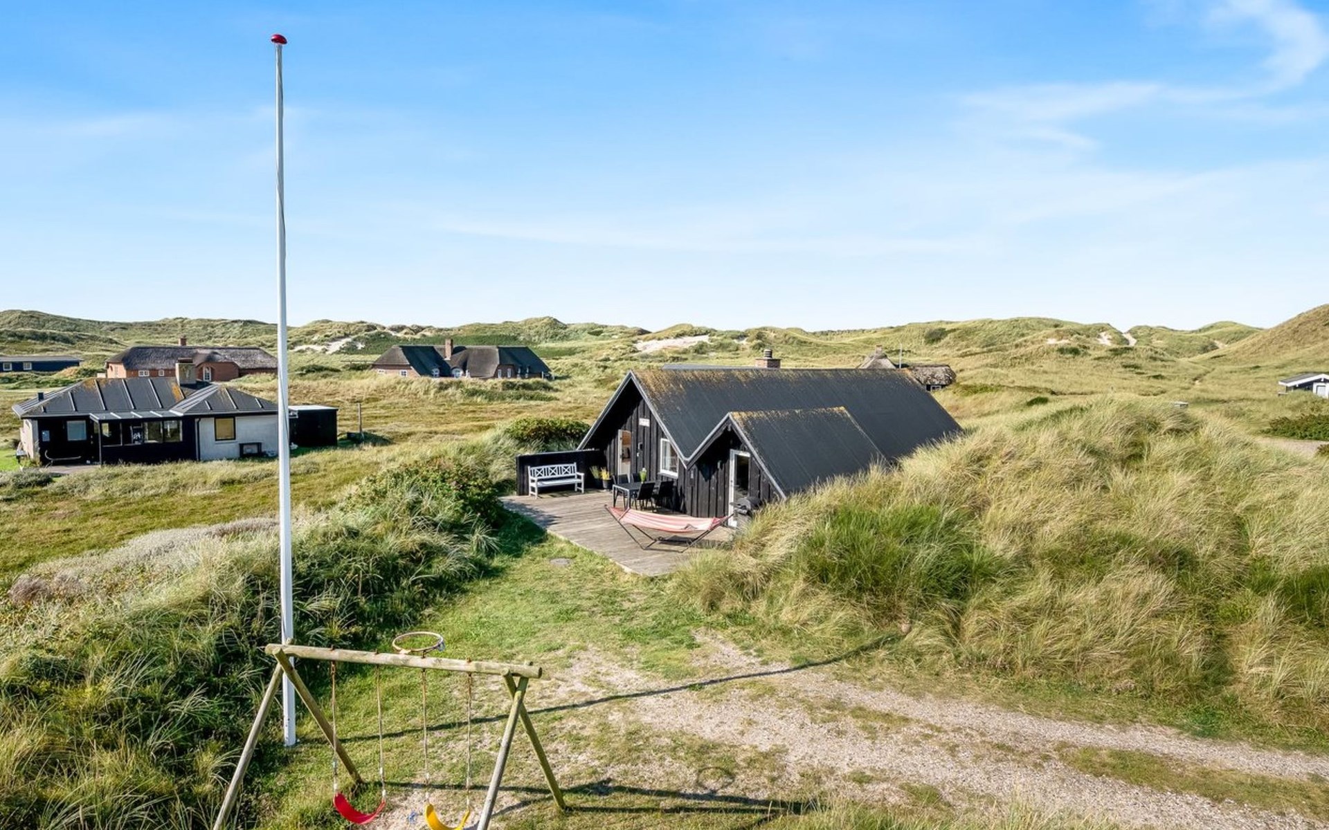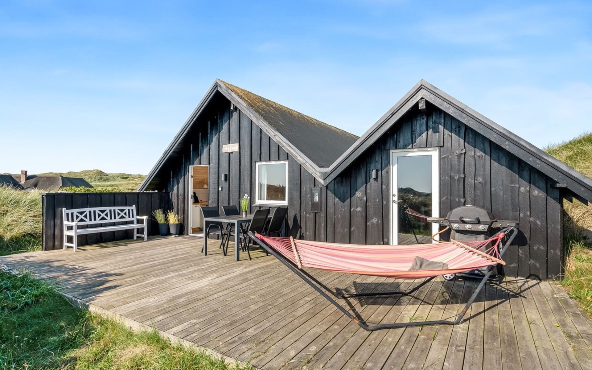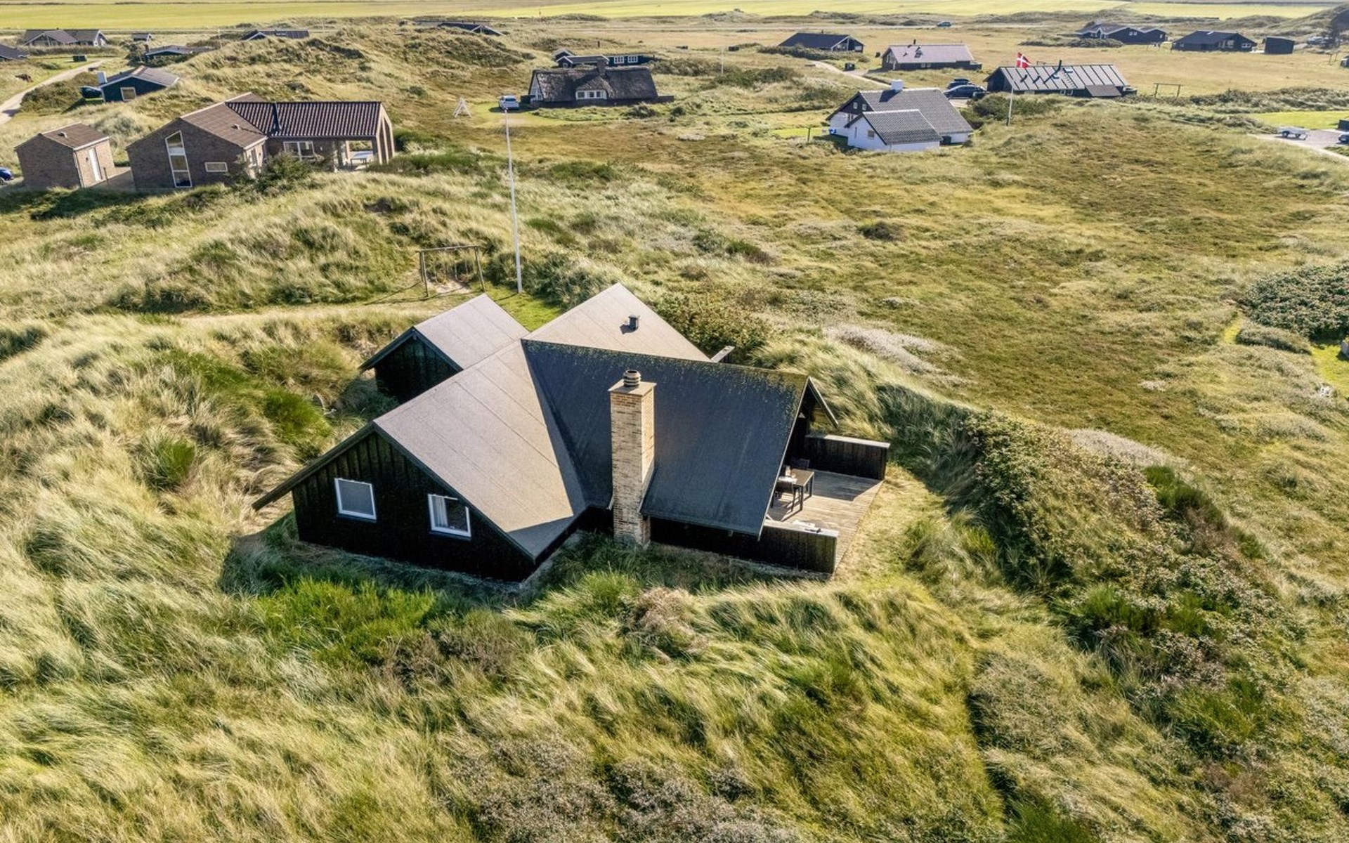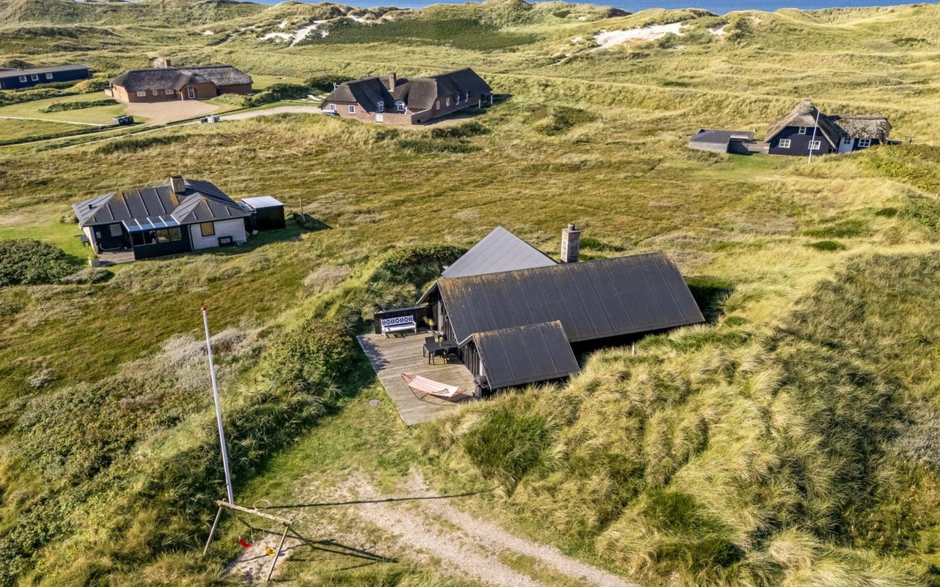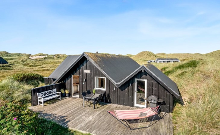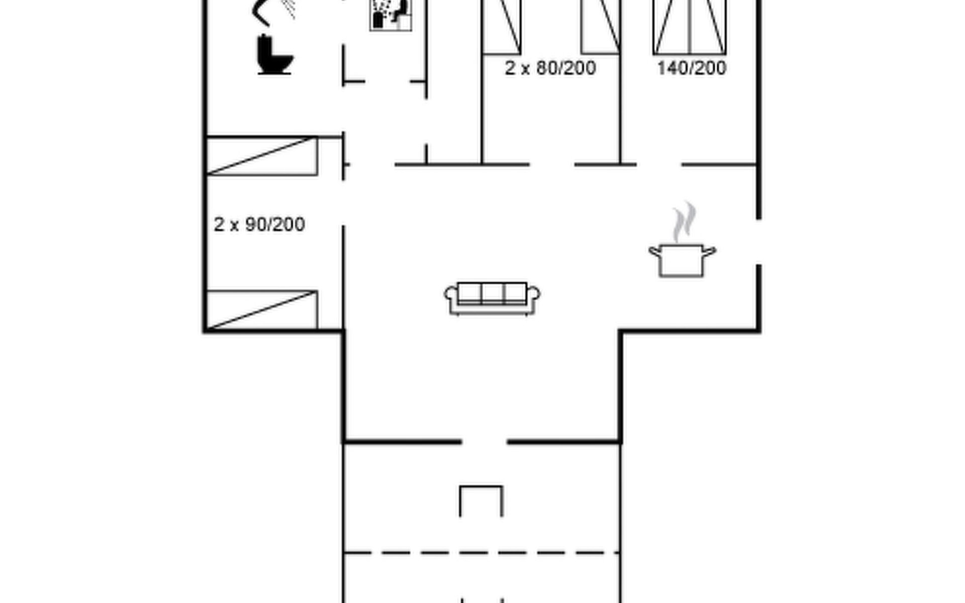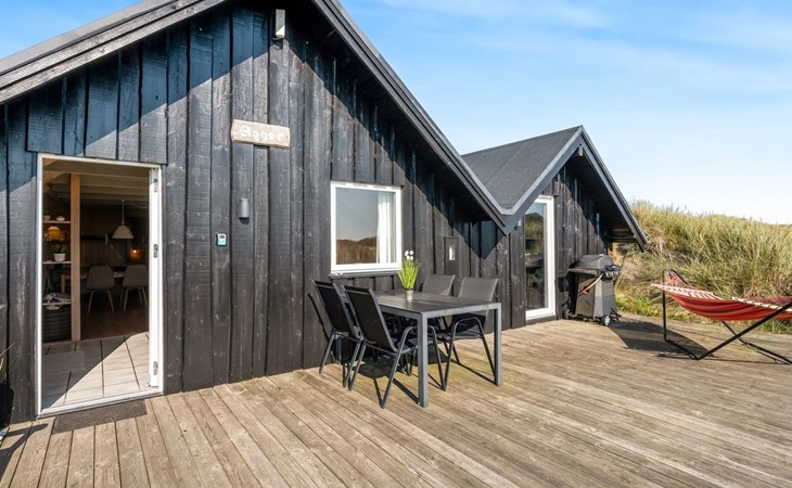Einfamilienhaus, Baujahr 1988. 300 m vom Meer. Zur Alleinbenutzung: naturbelassenes Grundstück 2'000 m2. Terrasse (15 m2), Grill, Kinderspielplatz (Schaukel). Im Hause: Sauna, Waschmaschine. Parkplatz beim Haus. Lebensmittelgeschäft 5 km. Golfplatz 5 km. Der Besitzer akzeptiert keine Jugendgruppen.