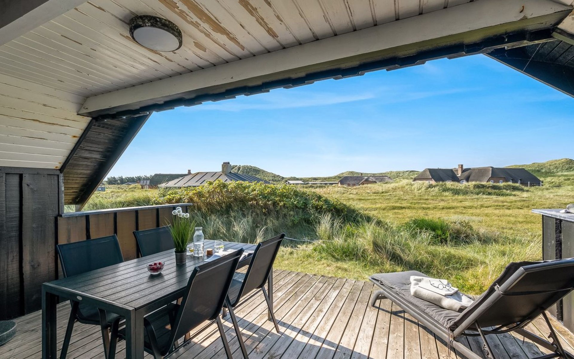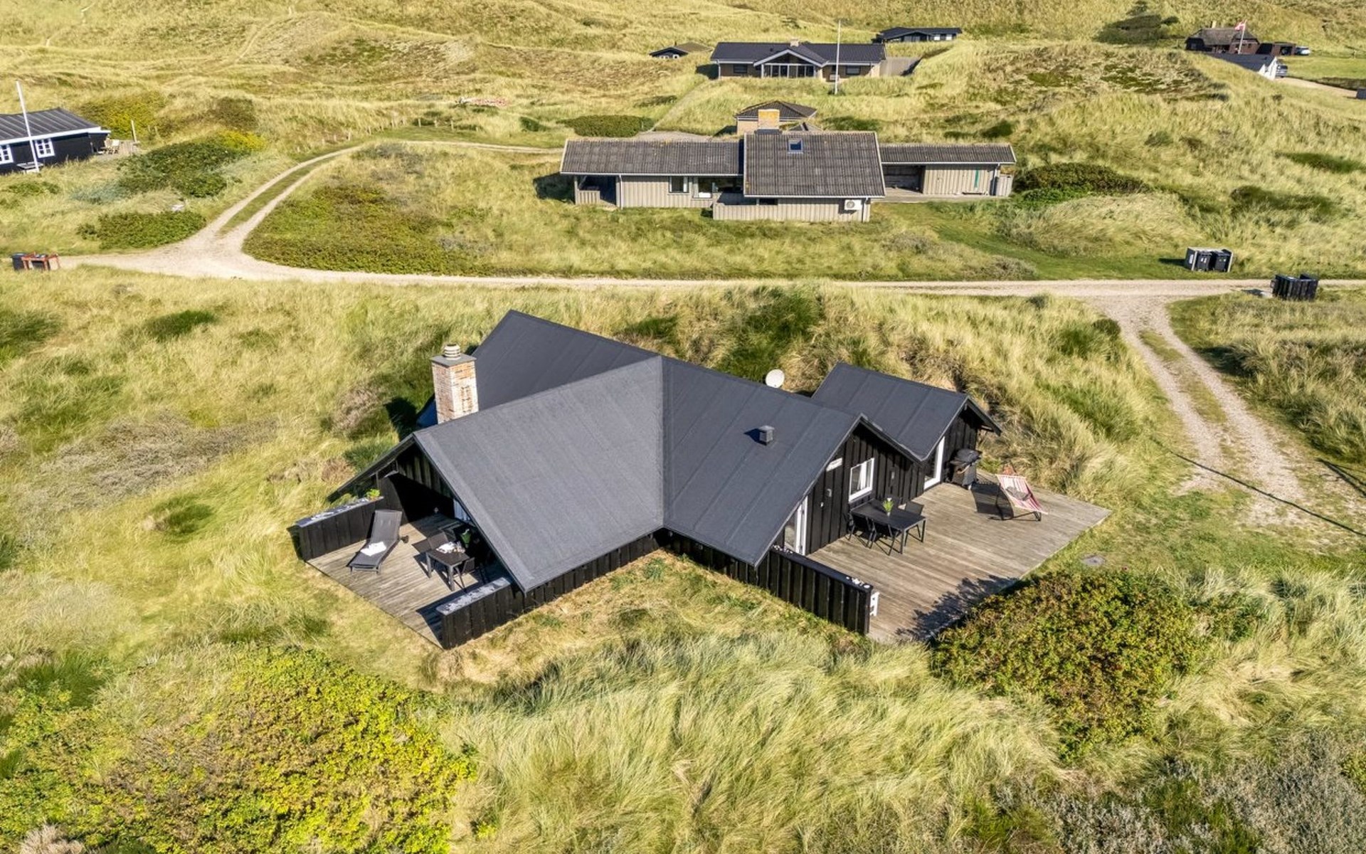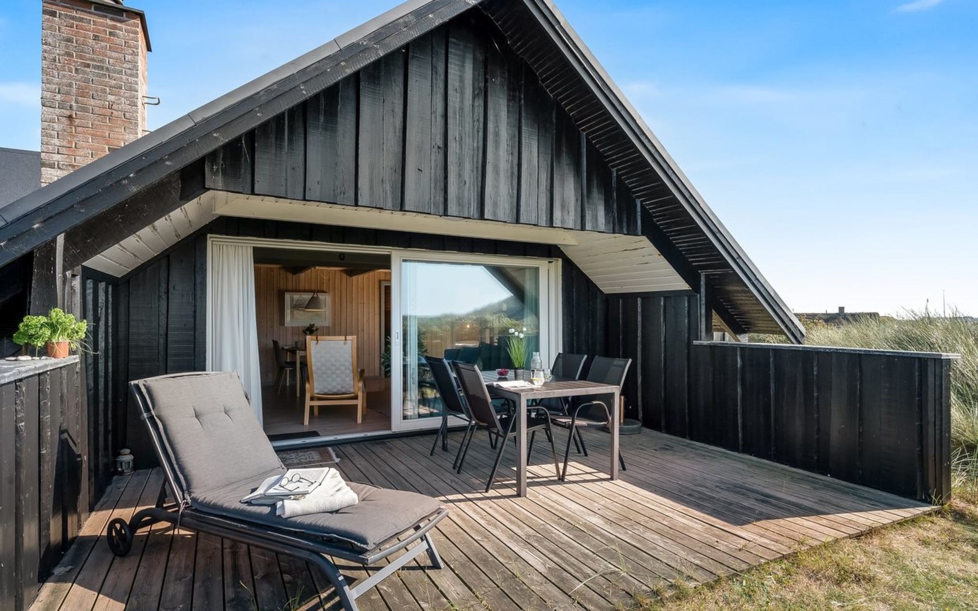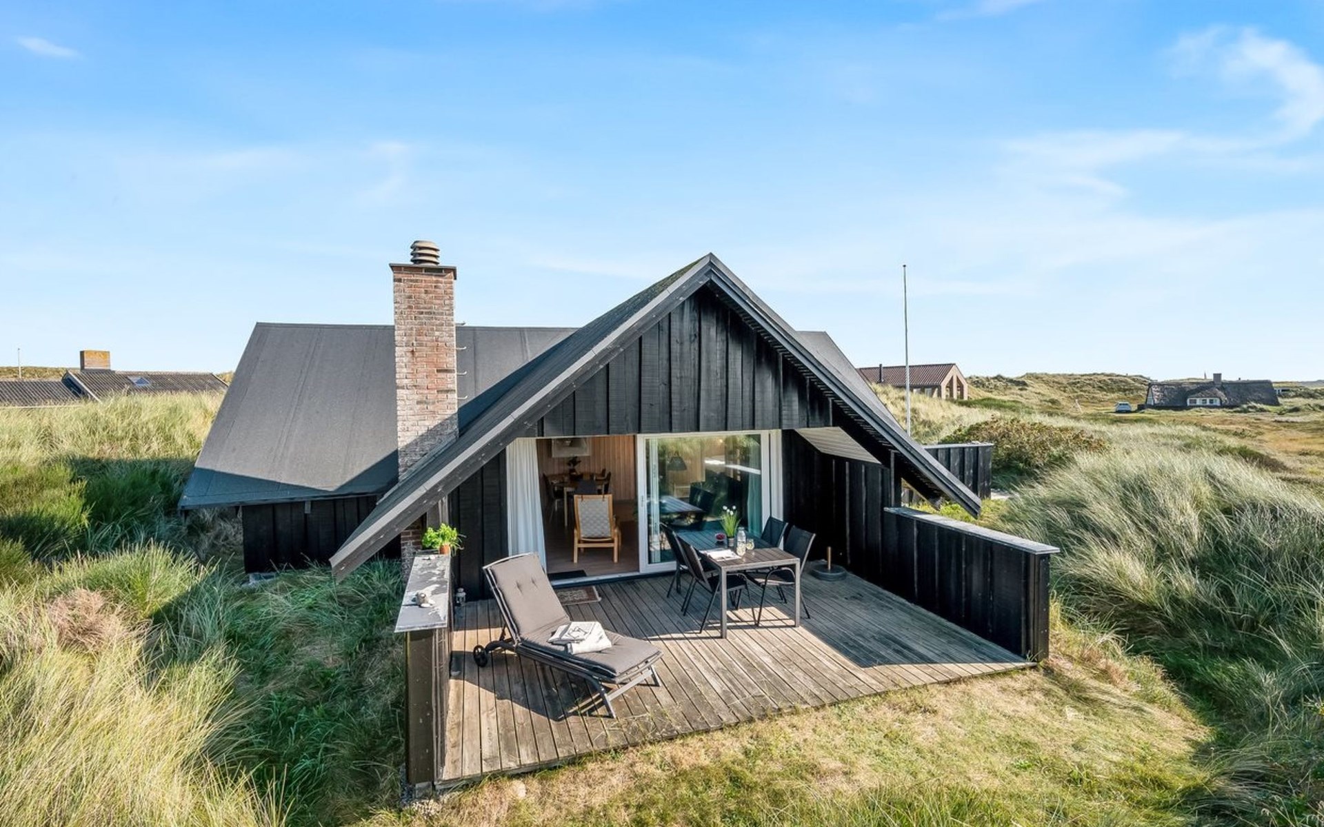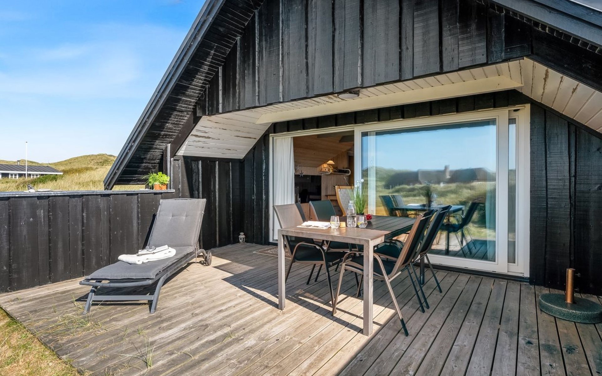 Einfamilienhaus, Baujahr 1988. 300 m vom Meer. Zur Alleinbenutzung: naturbelassenes Grundstück 2'000 m2. Terrasse (15 m2), Grill, Kinderspielplatz (Schaukel). Im Hause: Sauna, Waschmaschine. Parkplatz beim Haus. Lebensmittelgeschäft 5 km. Golfplatz 5 km. Der Besitzer akzeptiert keine Jugendgruppen.