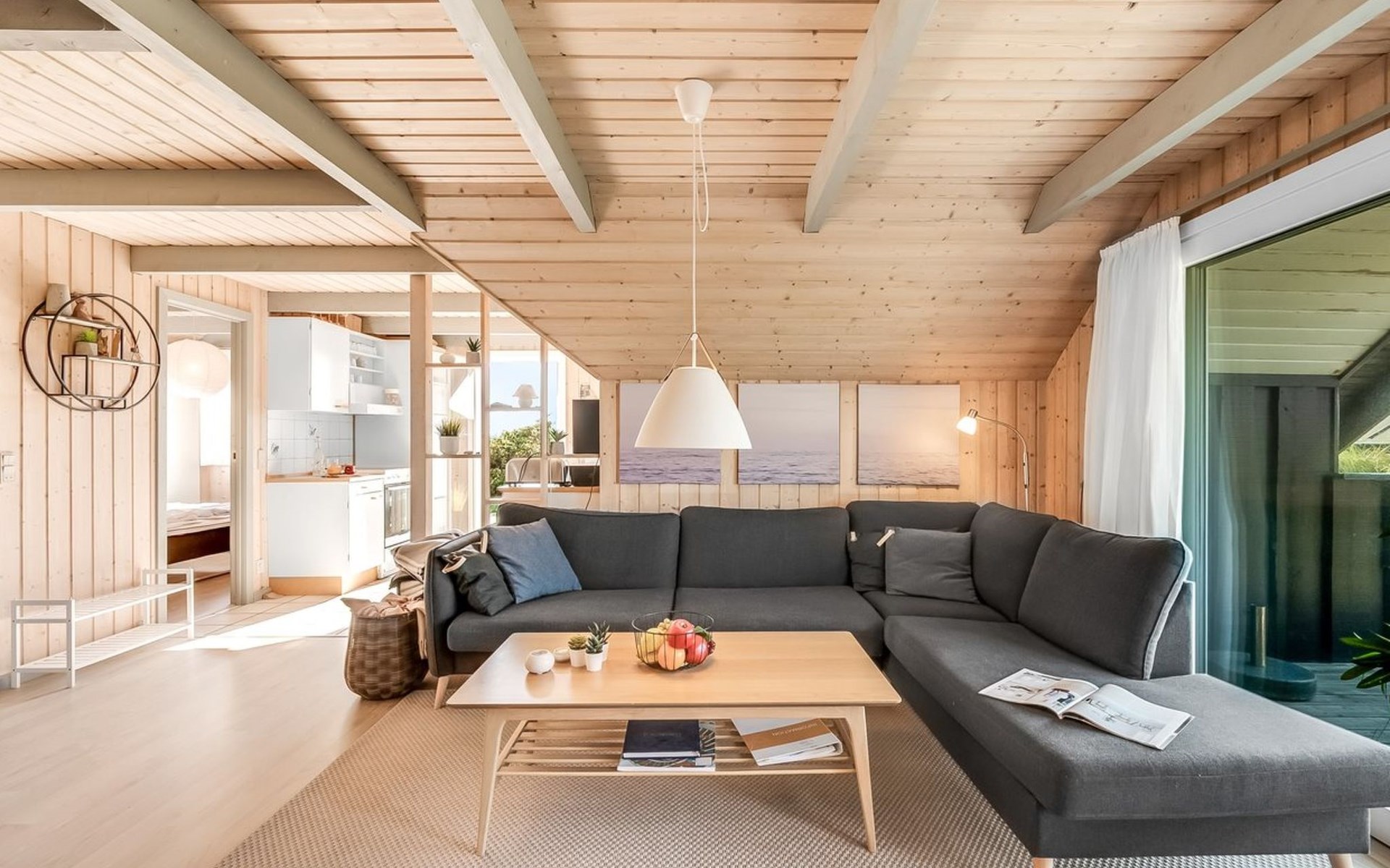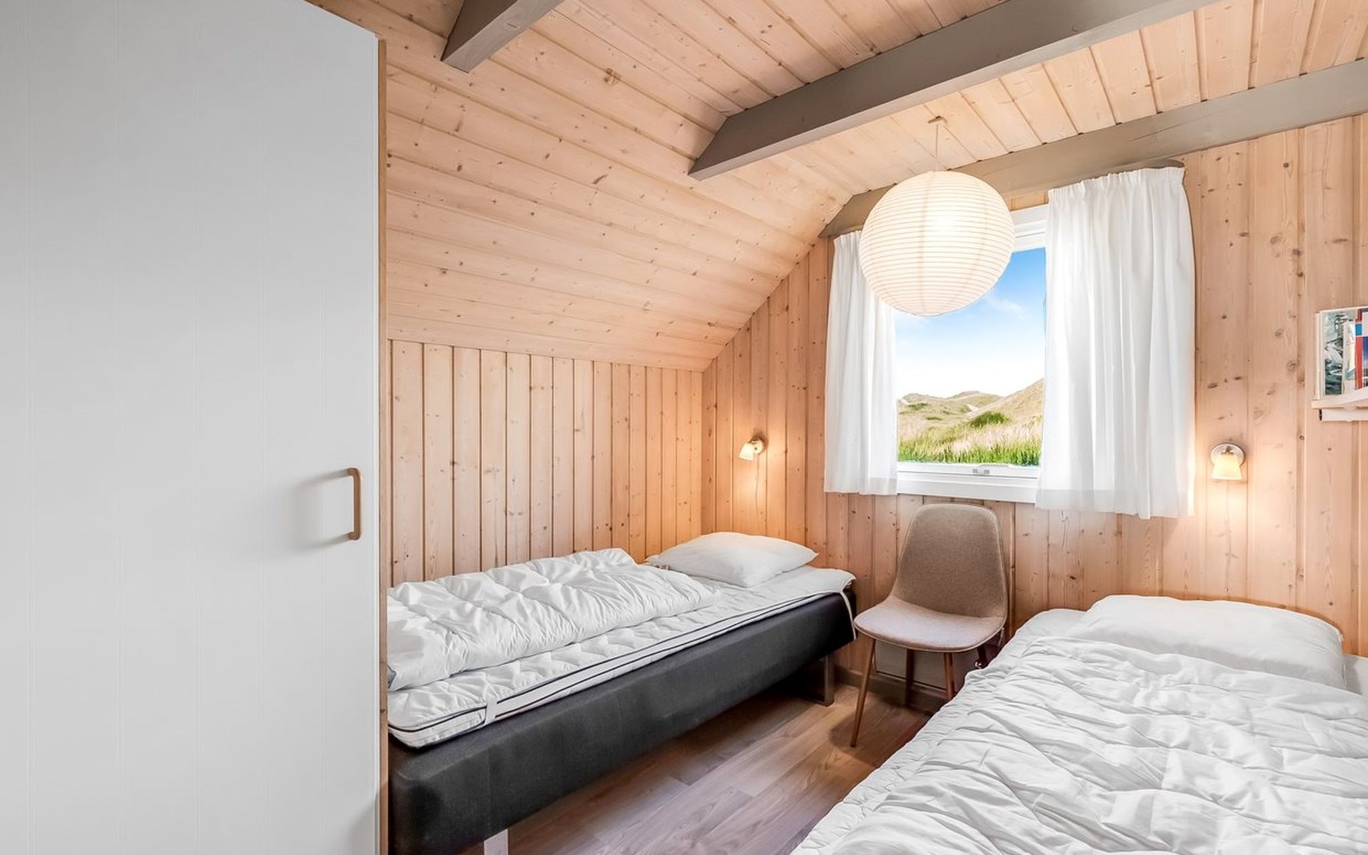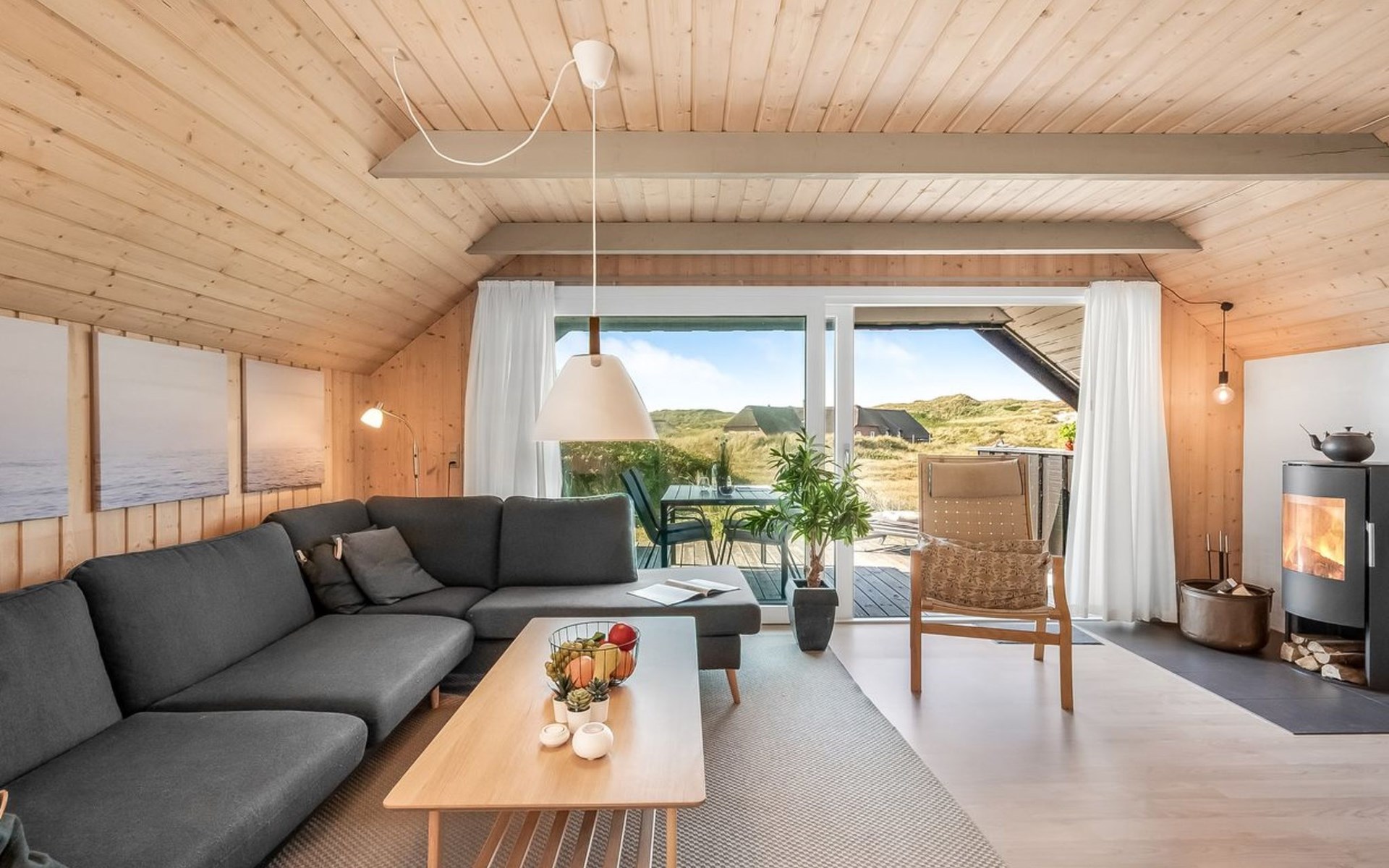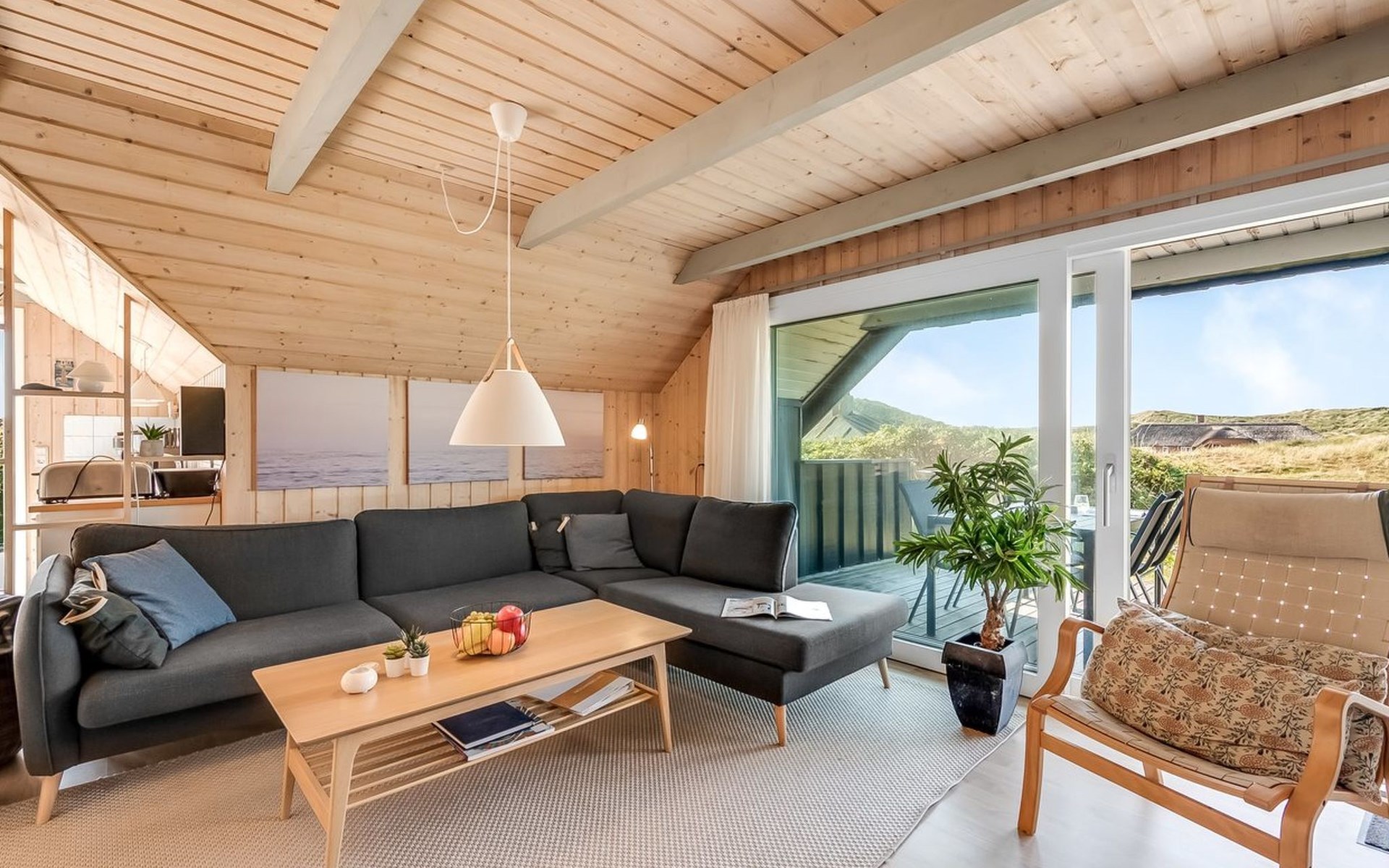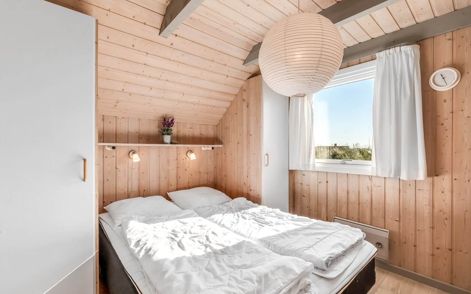 Einfamilienhaus, Baujahr 1988. 300 m vom Meer. Zur Alleinbenutzung: naturbelassenes Grundstück 2'000 m2. Terrasse (15 m2), Grill, Kinderspielplatz (Schaukel). Im Hause: Sauna, Waschmaschine. Parkplatz beim Haus. Lebensmittelgeschäft 5 km. Golfplatz 5 km. Der Besitzer akzeptiert keine Jugendgruppen.