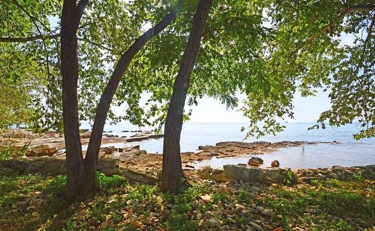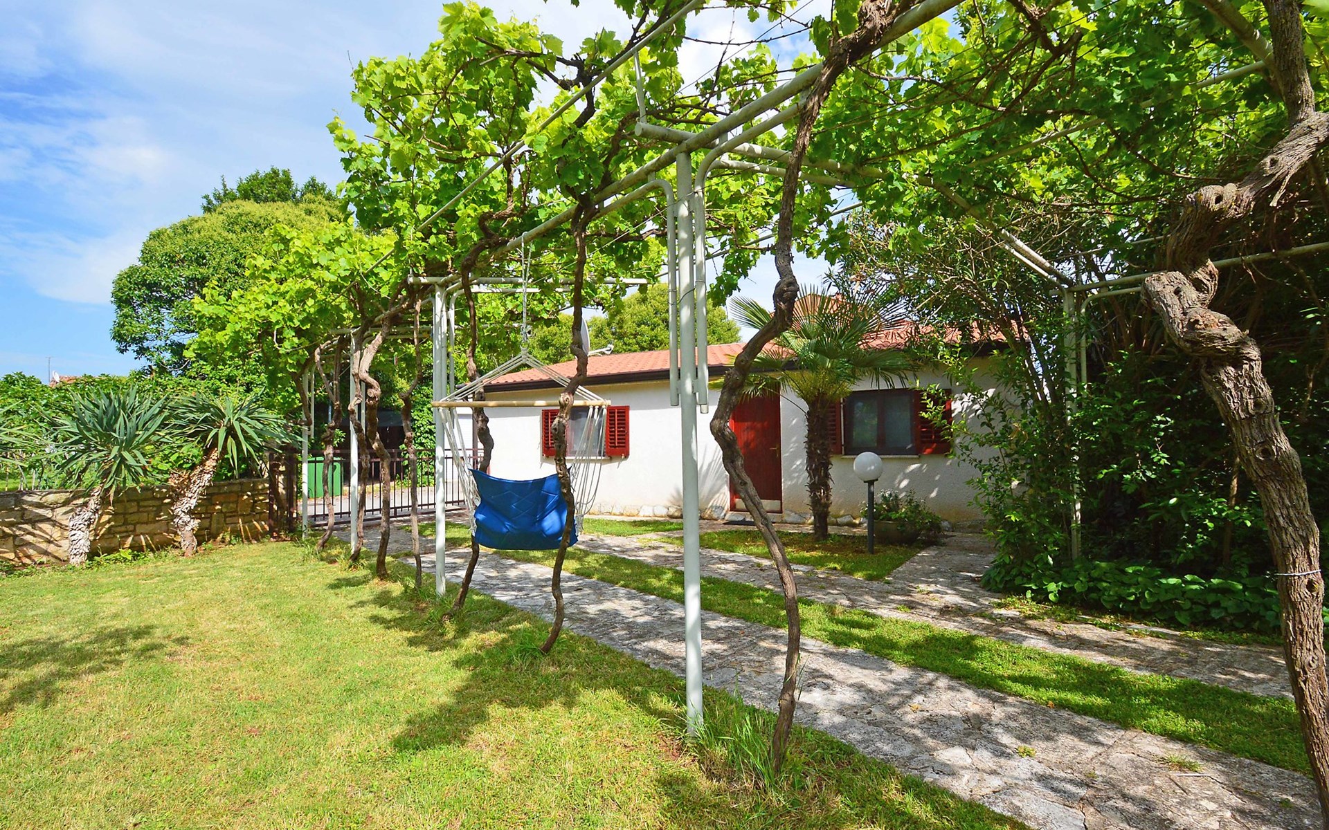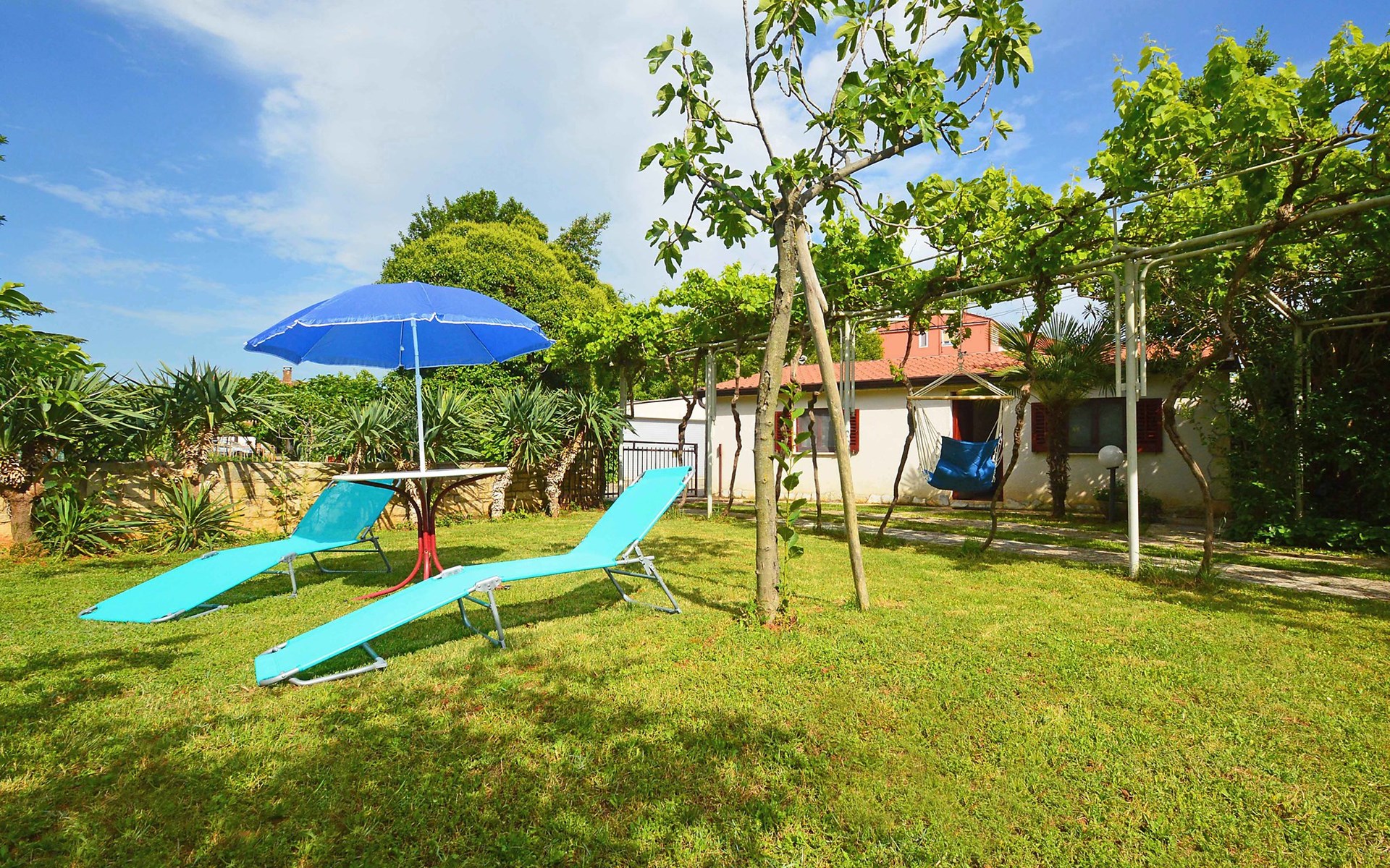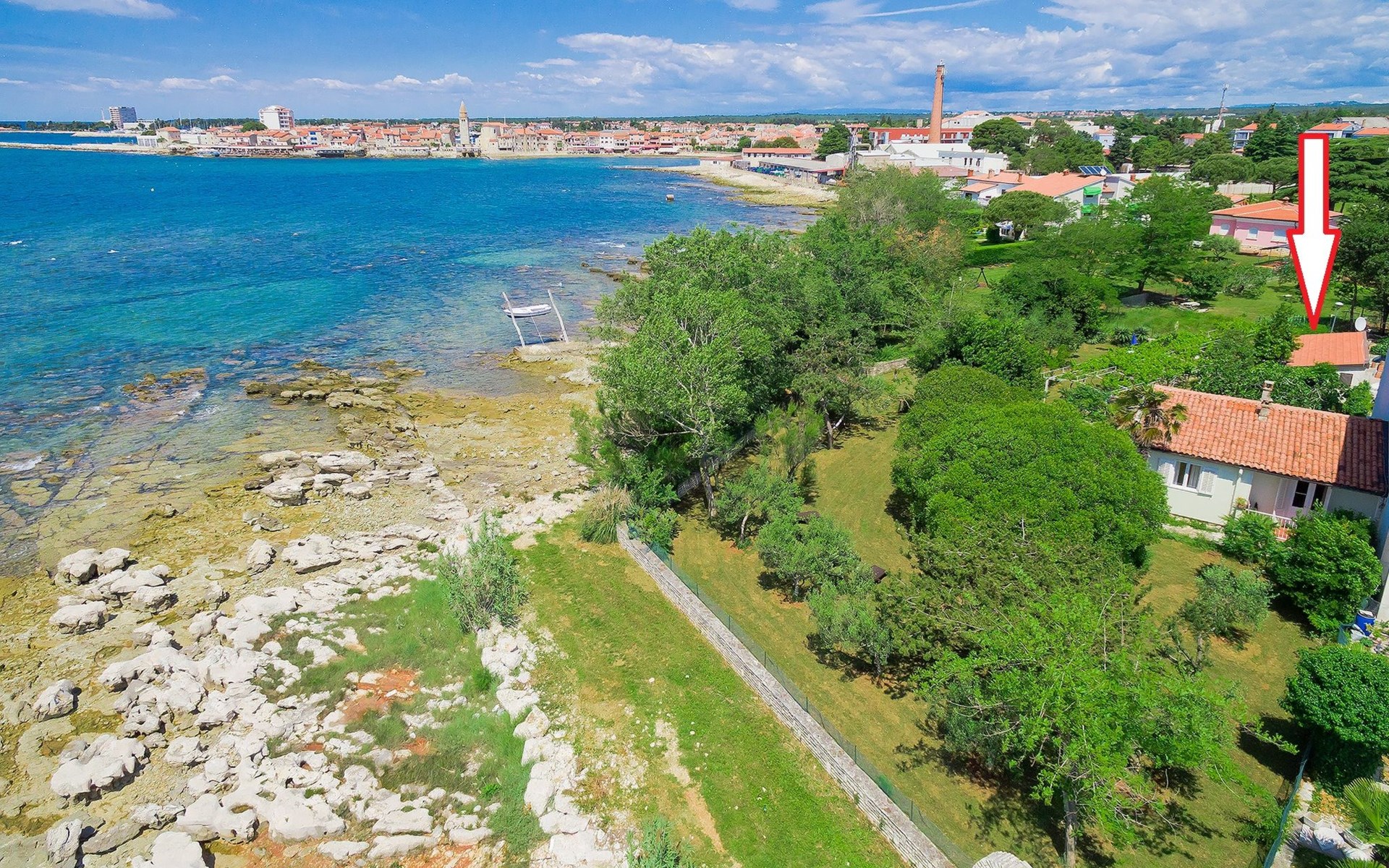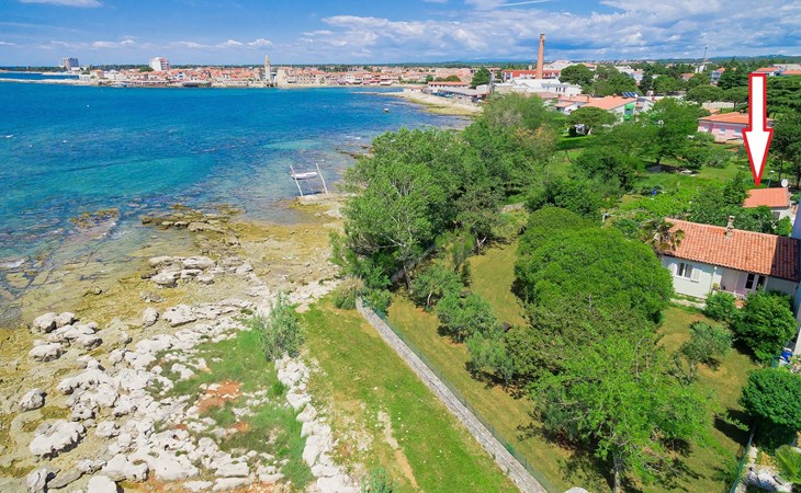 Kleines Einfamilienhaus "Aron". 400 m vom Zentrum von Umag, sonnige Lage, 50 m vom Meer, 200 m vom Strand, in einer Sackgasse. Zur Alleinbenutzung: Grundstück 200 m2, Garten Bäumen, Naturgarten. Pergola (10 m2). Im Hause: Internetzugang. Öffentliche Parkplätze. Einkaufsgeschäft, Restaurant 300 m, Bushaltestelle 1.3 km, Bahnstation 33 km, Sandstrand 300 m, Felsstrand, betonierter Strand 200 m. Golfplatz (18 Loch) 9 km, Tennis 1.5 km, Wanderwege ab Haus 200 m, Radweg 250 m, Kinderspielplatz 200 m. Der Zugang zum Nachbarhaus über das Gelände des Hauses.