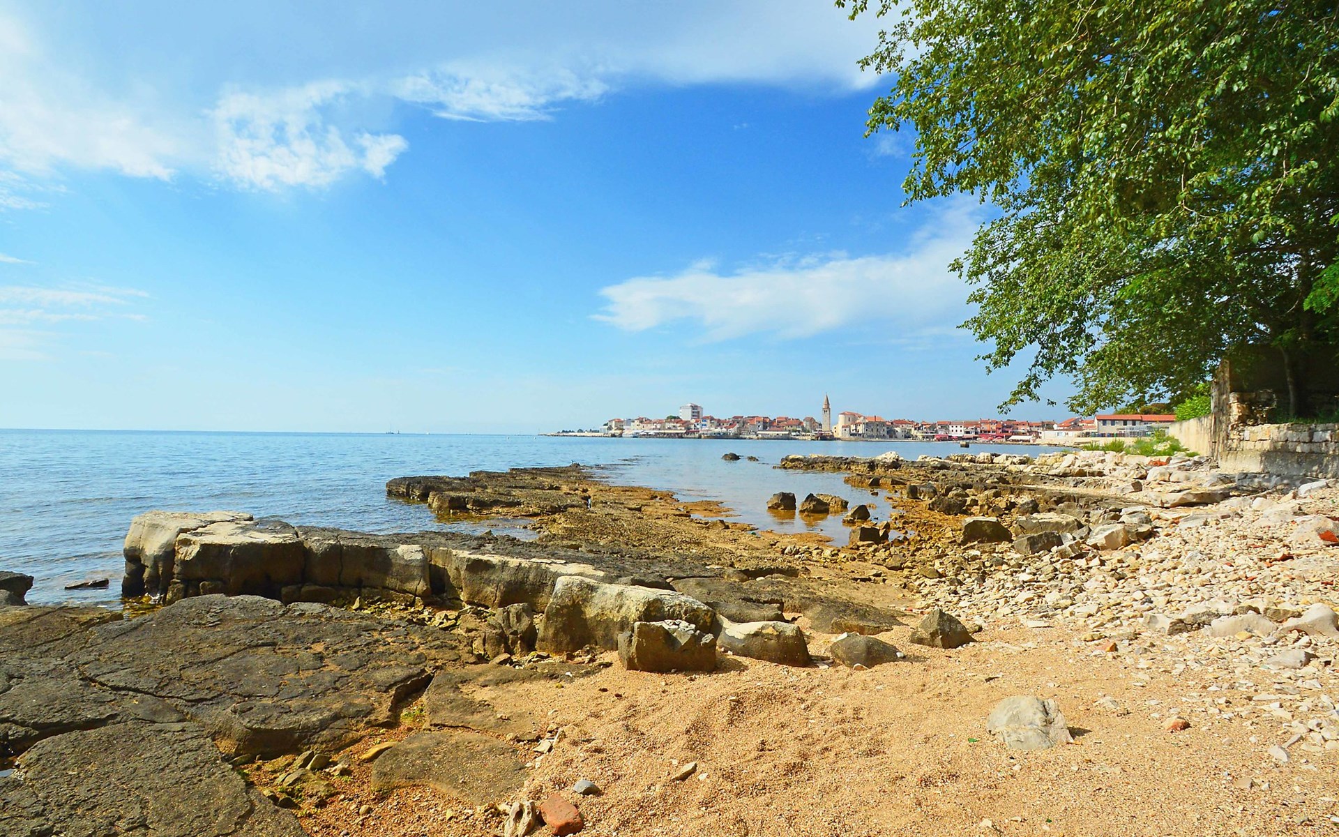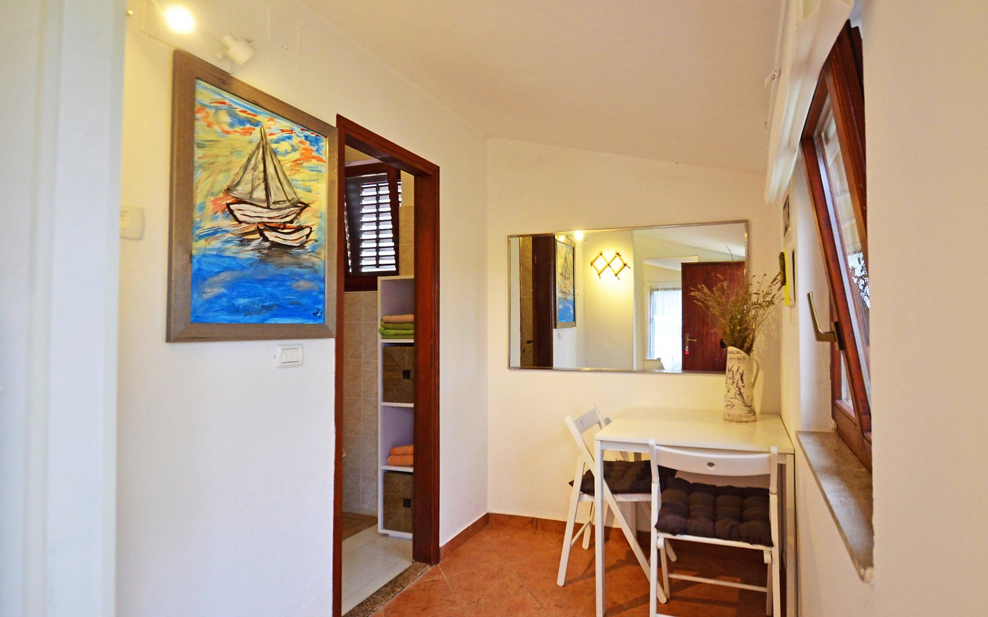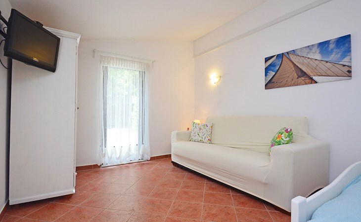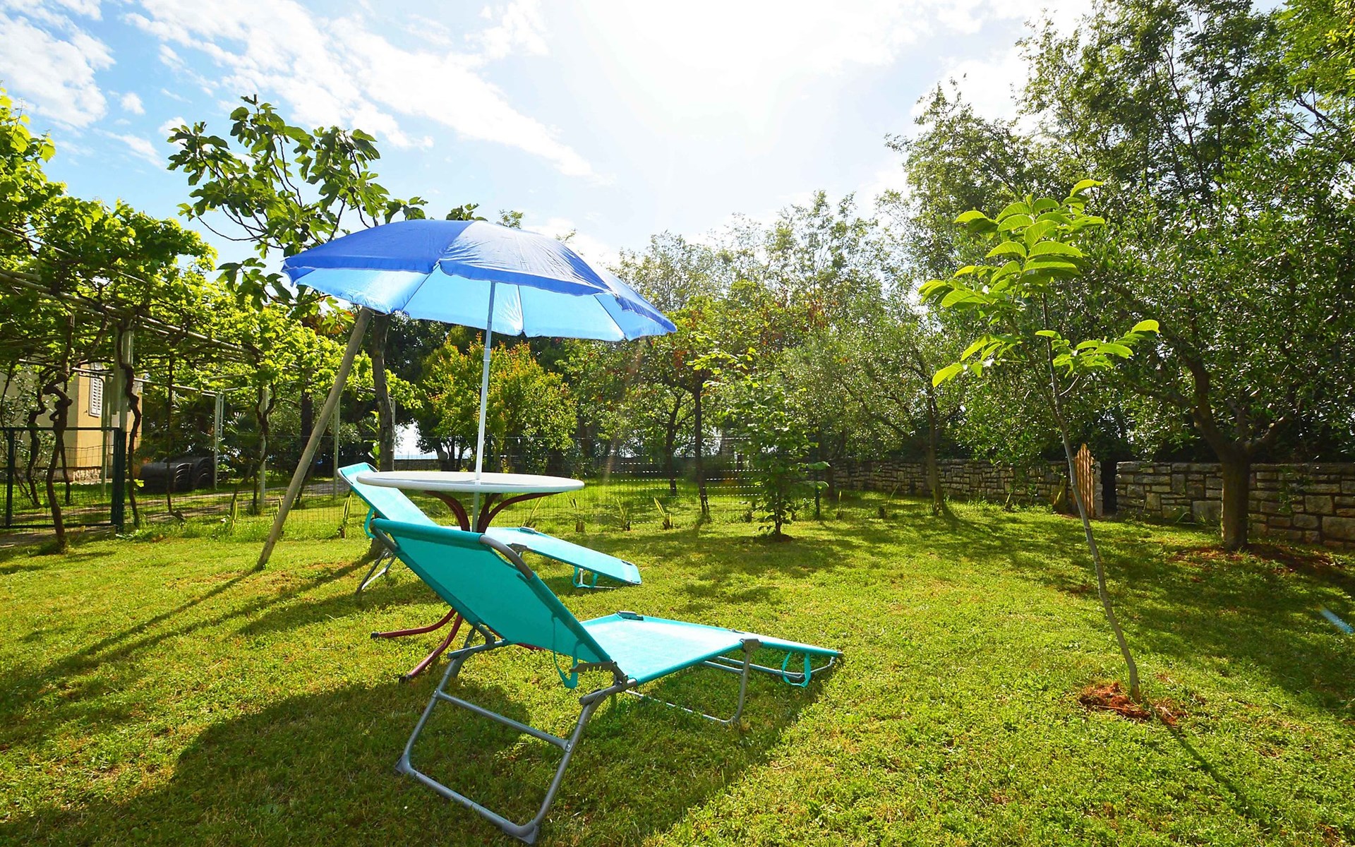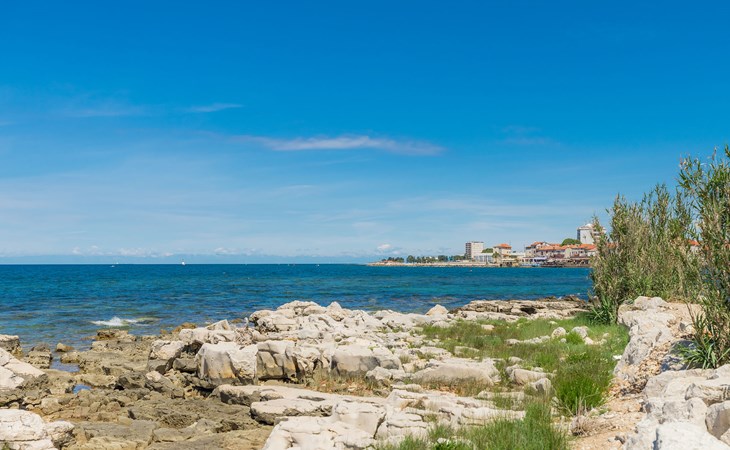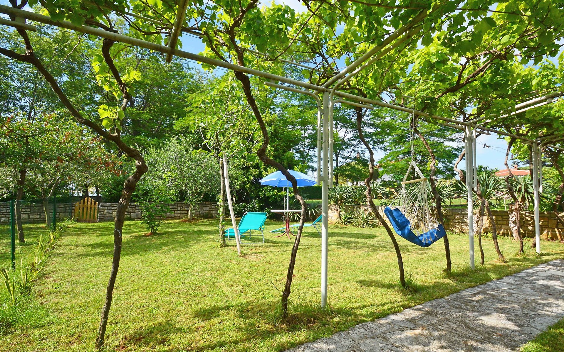 Kleines Einfamilienhaus "Aron". 400 m vom Zentrum von Umag, sonnige Lage, 50 m vom Meer, 200 m vom Strand, in einer Sackgasse. Zur Alleinbenutzung: Grundstück 200 m2, Garten Bäumen, Naturgarten. Pergola (10 m2). Im Hause: Internetzugang. Öffentliche Parkplätze. Einkaufsgeschäft, Restaurant 300 m, Bushaltestelle 1.3 km, Bahnstation 33 km, Sandstrand 300 m, Felsstrand, betonierter Strand 200 m. Golfplatz (18 Loch) 9 km, Tennis 1.5 km, Wanderwege ab Haus 200 m, Radweg 250 m, Kinderspielplatz 200 m. Der Zugang zum Nachbarhaus über das Gelände des Hauses.