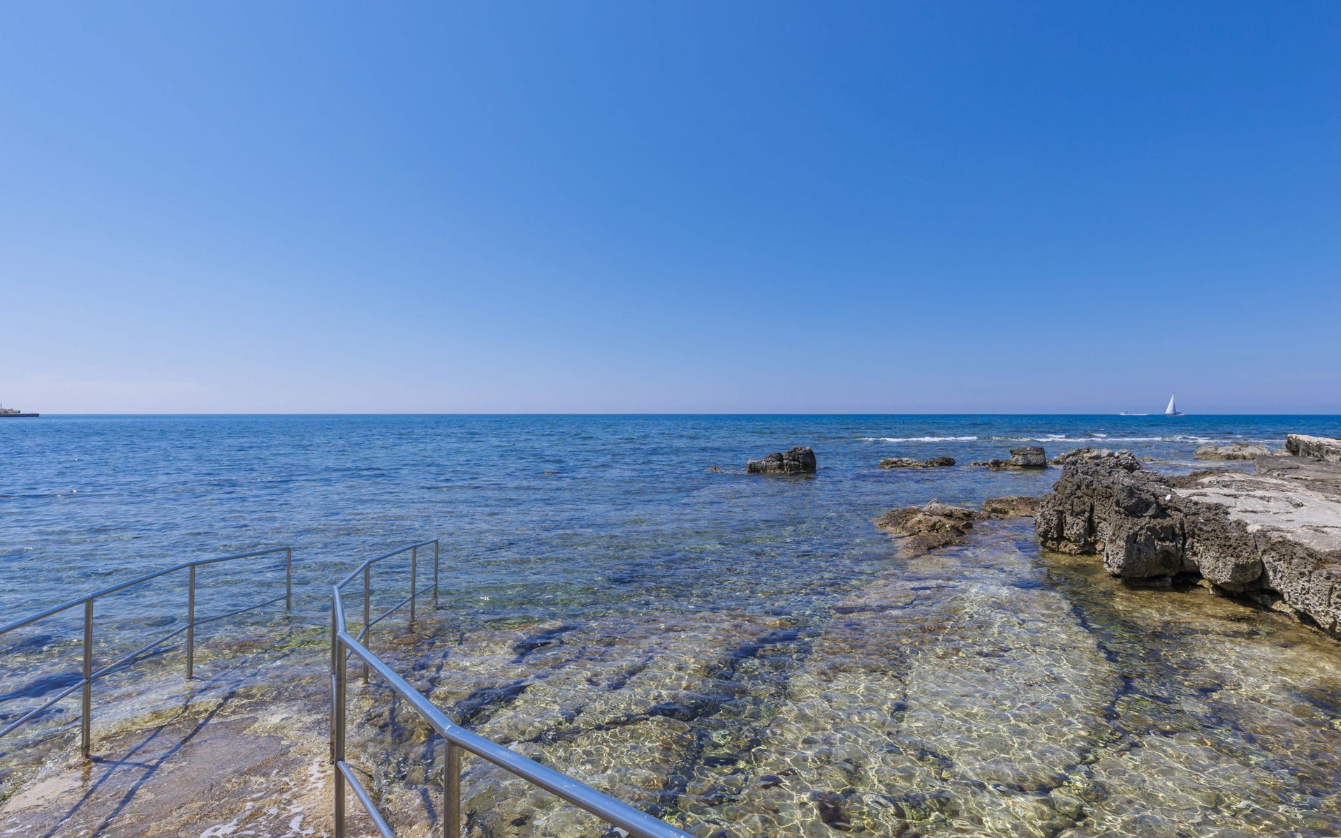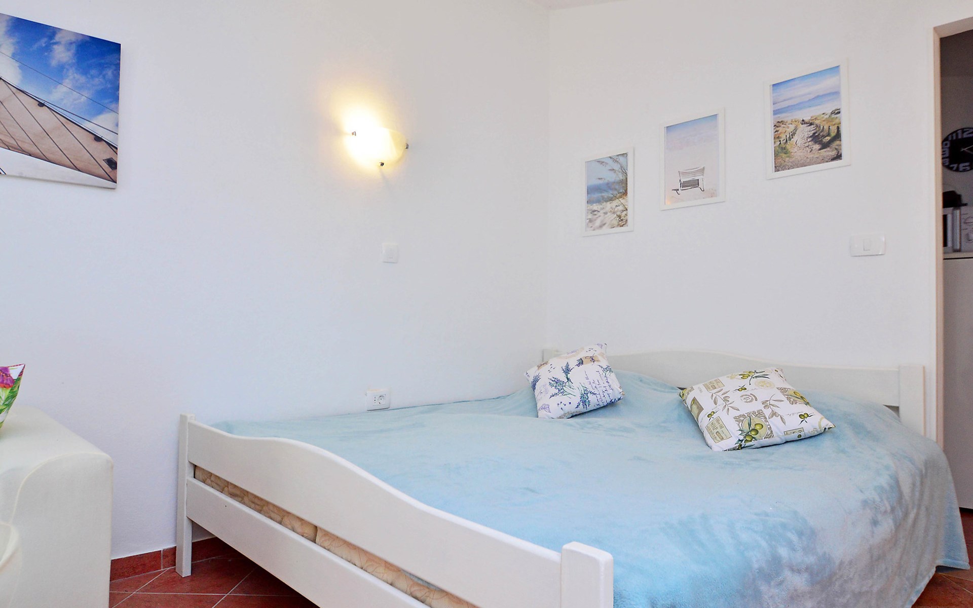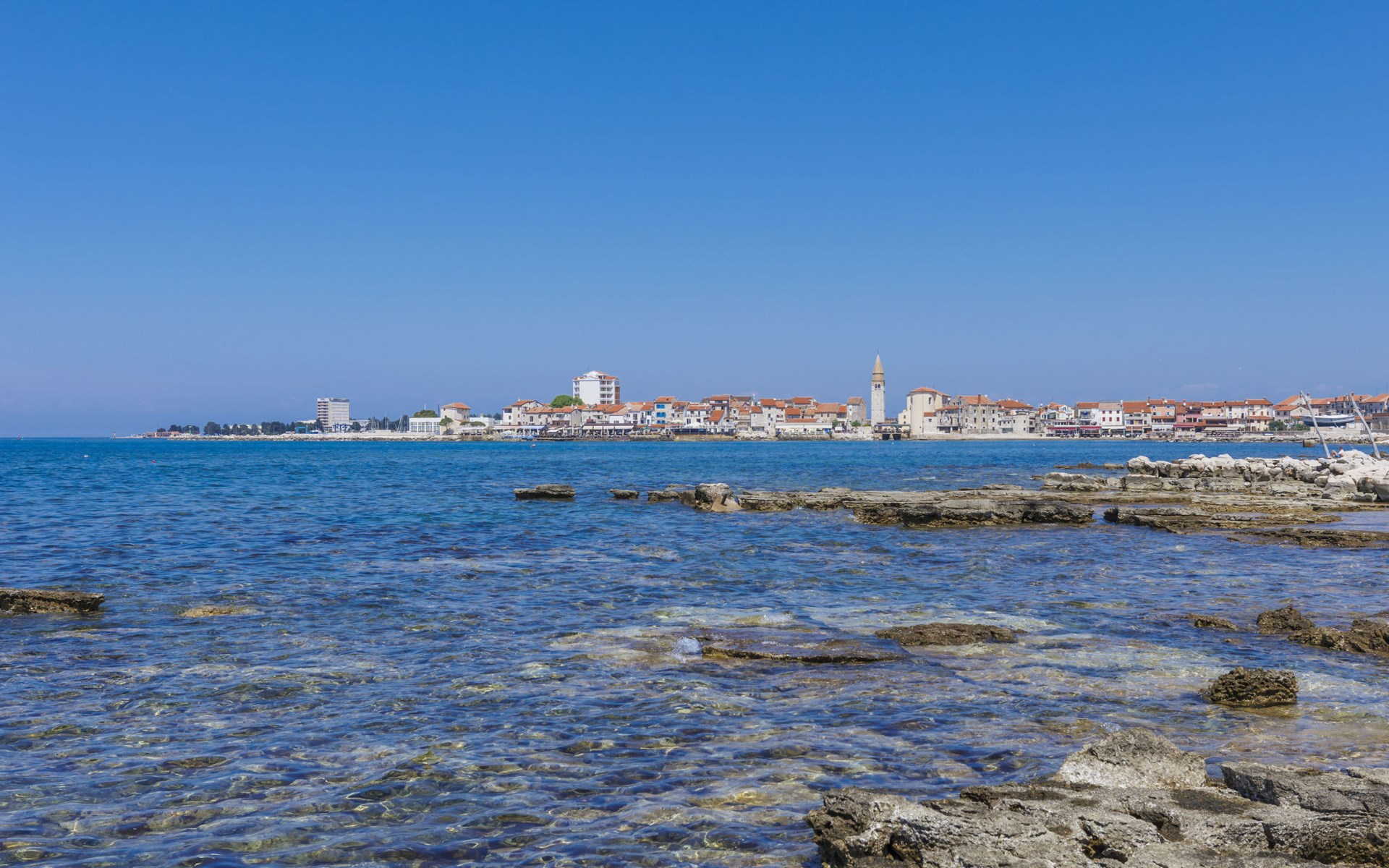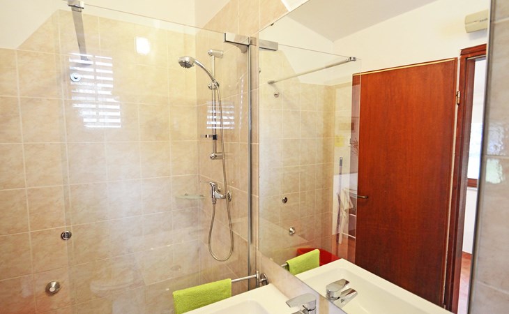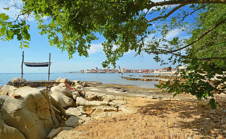 Kleines Einfamilienhaus "Aron". 400 m vom Zentrum von Umag, sonnige Lage, 50 m vom Meer, 200 m vom Strand, in einer Sackgasse. Zur Alleinbenutzung: Grundstück 200 m2, Garten Bäumen, Naturgarten. Pergola (10 m2). Im Hause: Internetzugang. Öffentliche Parkplätze. Einkaufsgeschäft, Restaurant 300 m, Bushaltestelle 1.3 km, Bahnstation 33 km, Sandstrand 300 m, Felsstrand, betonierter Strand 200 m. Golfplatz (18 Loch) 9 km, Tennis 1.5 km, Wanderwege ab Haus 200 m, Radweg 250 m, Kinderspielplatz 200 m. Der Zugang zum Nachbarhaus über das Gelände des Hauses.