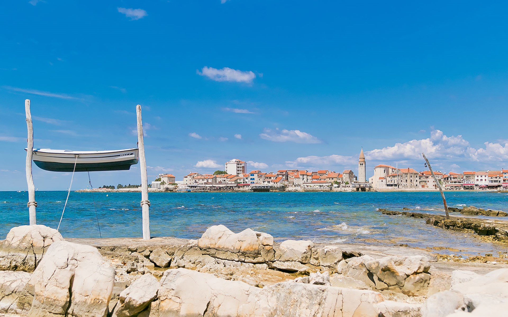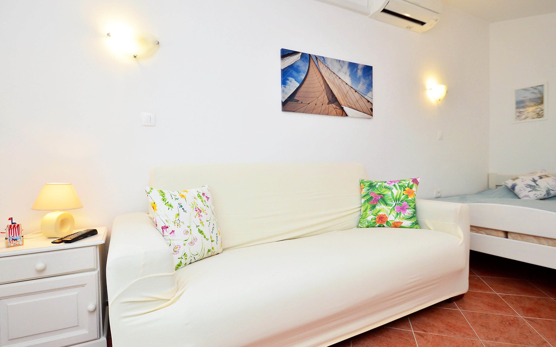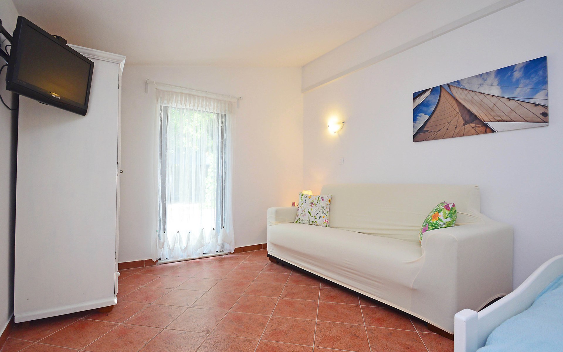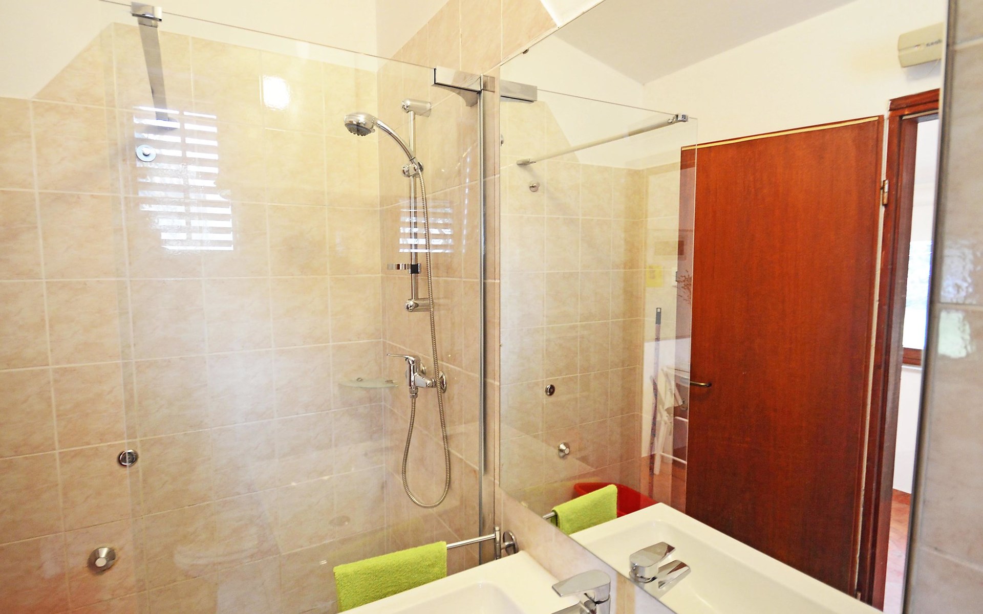 Kleines Einfamilienhaus "Aron". 400 m vom Zentrum von Umag, sonnige Lage, 50 m vom Meer, 200 m vom Strand, in einer Sackgasse. Zur Alleinbenutzung: Grundstück 200 m2, Garten Bäumen, Naturgarten. Pergola (10 m2). Im Hause: Internetzugang. Öffentliche Parkplätze. Einkaufsgeschäft, Restaurant 300 m, Bushaltestelle 1.3 km, Bahnstation 33 km, Sandstrand 300 m, Felsstrand, betonierter Strand 200 m. Golfplatz (18 Loch) 9 km, Tennis 1.5 km, Wanderwege ab Haus 200 m, Radweg 250 m, Kinderspielplatz 200 m. Der Zugang zum Nachbarhaus über das Gelände des Hauses.